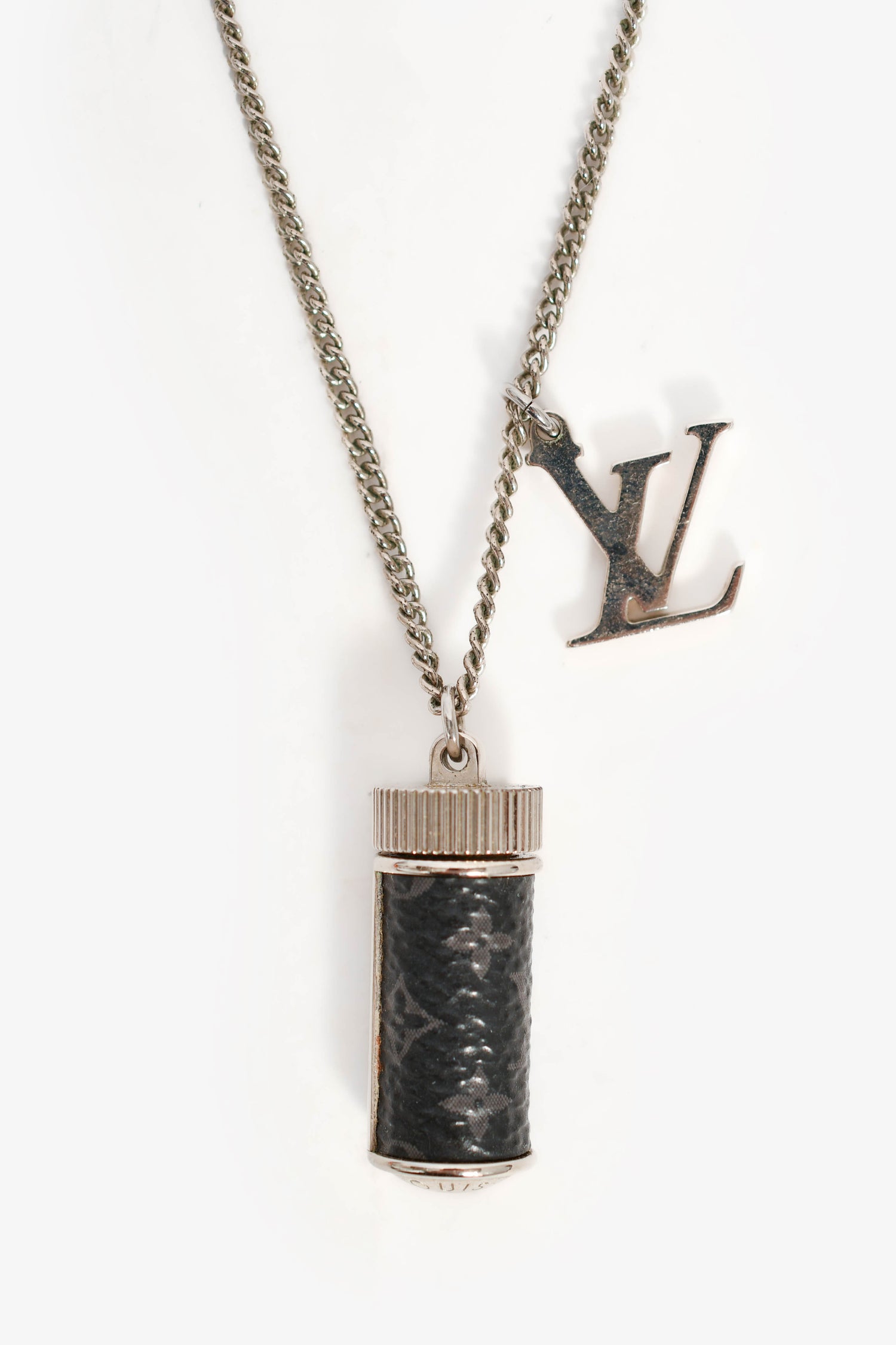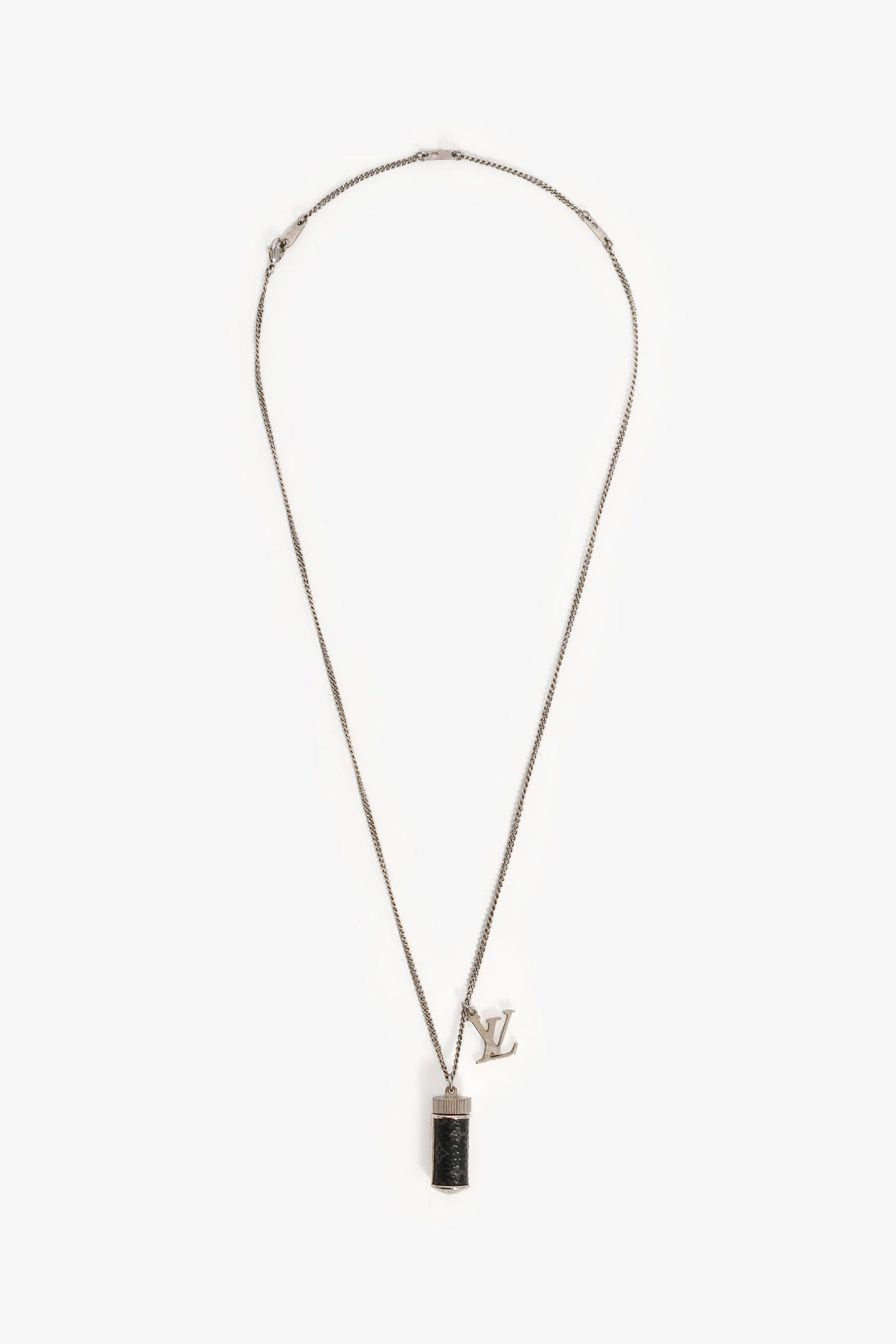 Refresh availabilityLouis Vuitton Silver Tone Monogram Eclipse Charms Necklace. Lobster clasp closure.