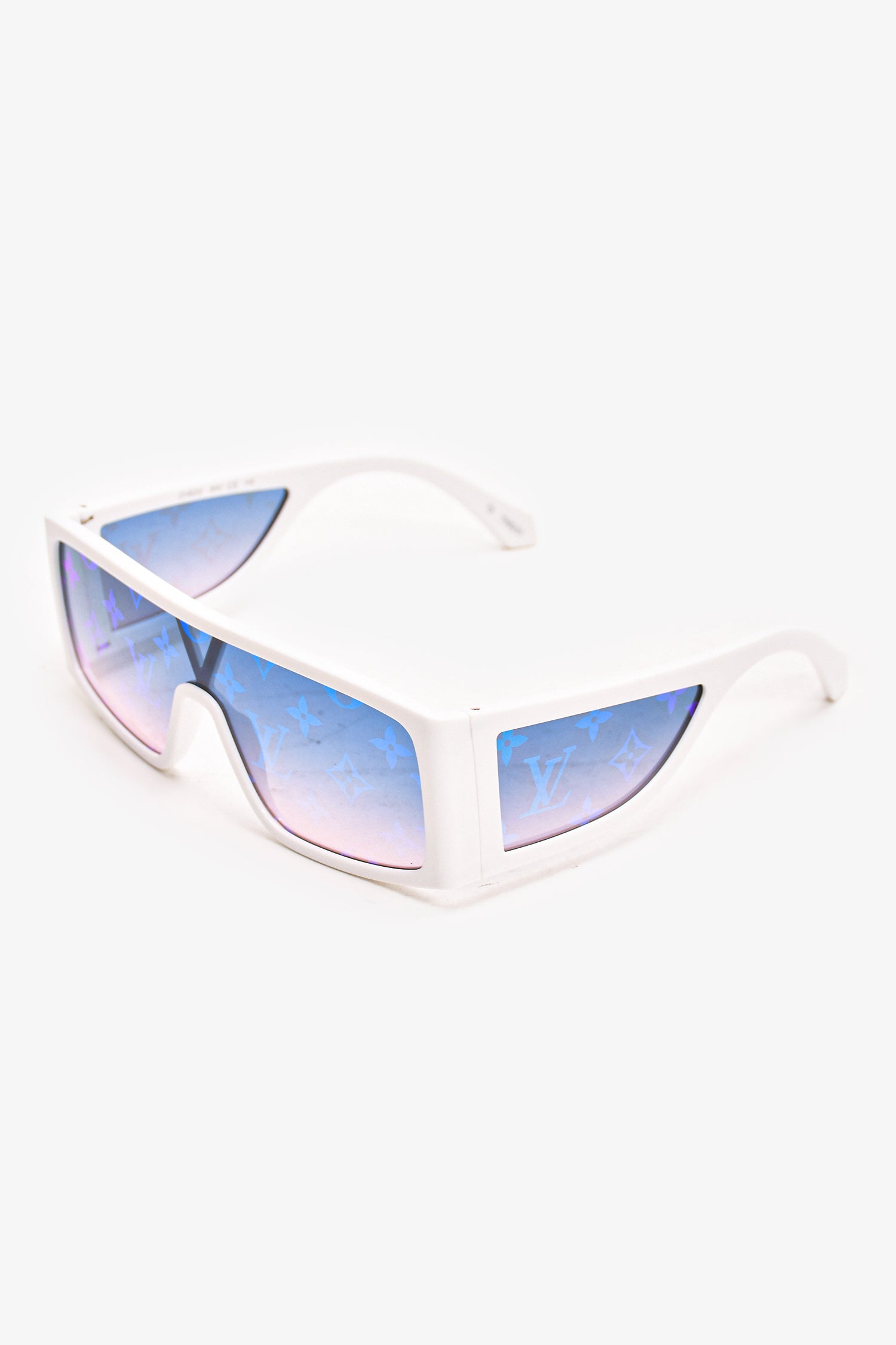 Louis Vuitton White Acrylic/Blue Monogram Lens Sideway Sunglasses