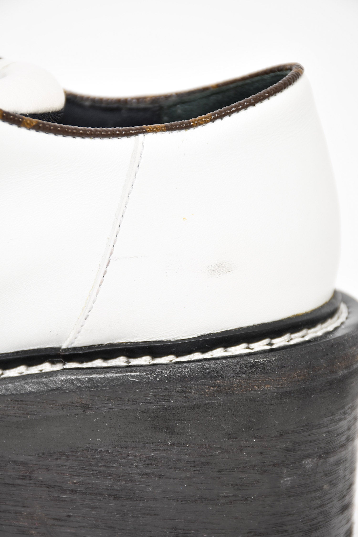 Louis Vuitton White Leather Monogram Trimmed "Derby" Platform Oxfords Size 37.5