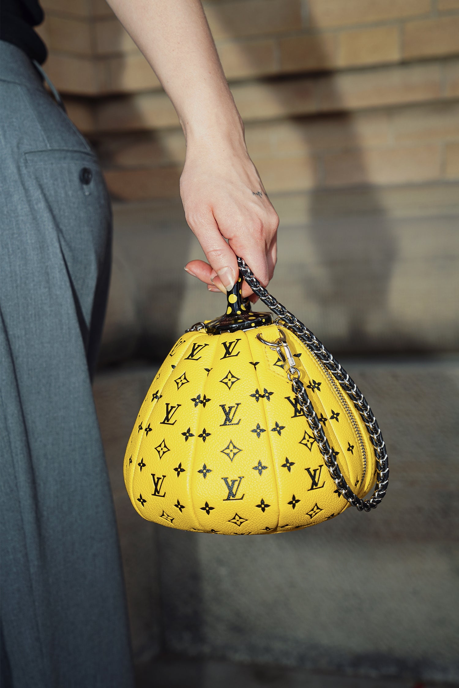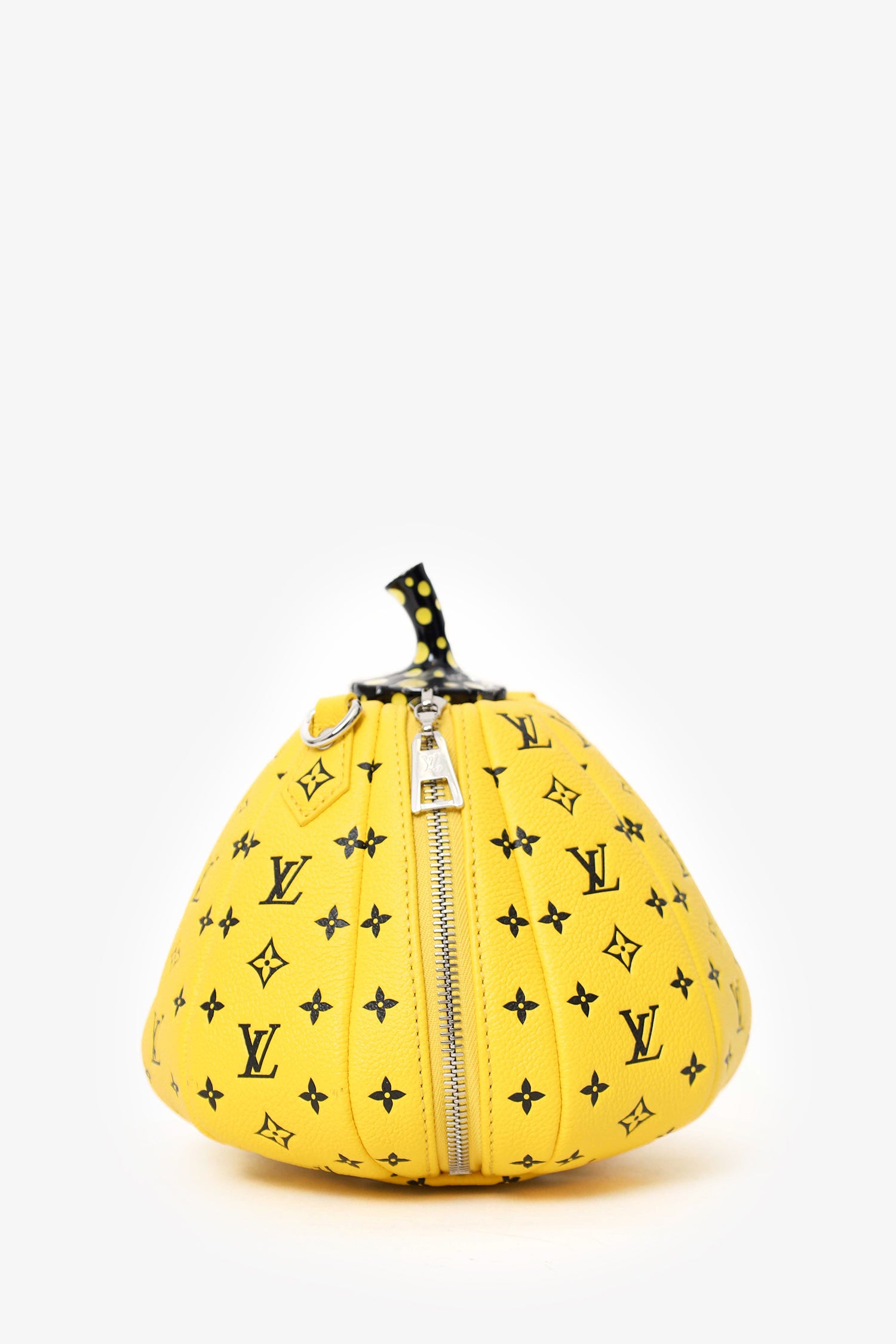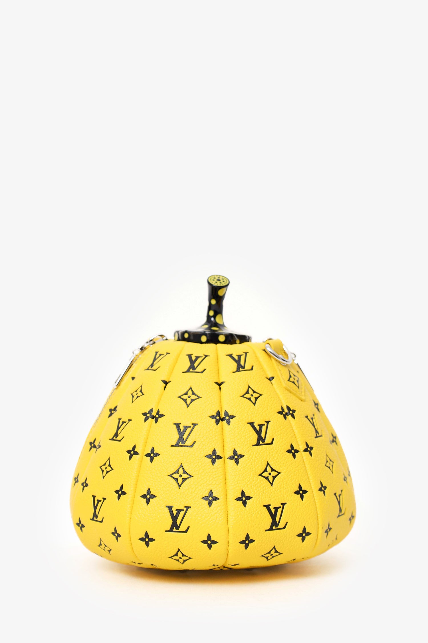 Refresh availabilityLouis Vuitton x Yayoi Kusama Monogram Pumpkin Shoulder Bag. Top magnetic flip-lock and side zip closure. Removable chainlink strap. Open suede-lined interior. Silver-tone hardware. Tonal stitching.