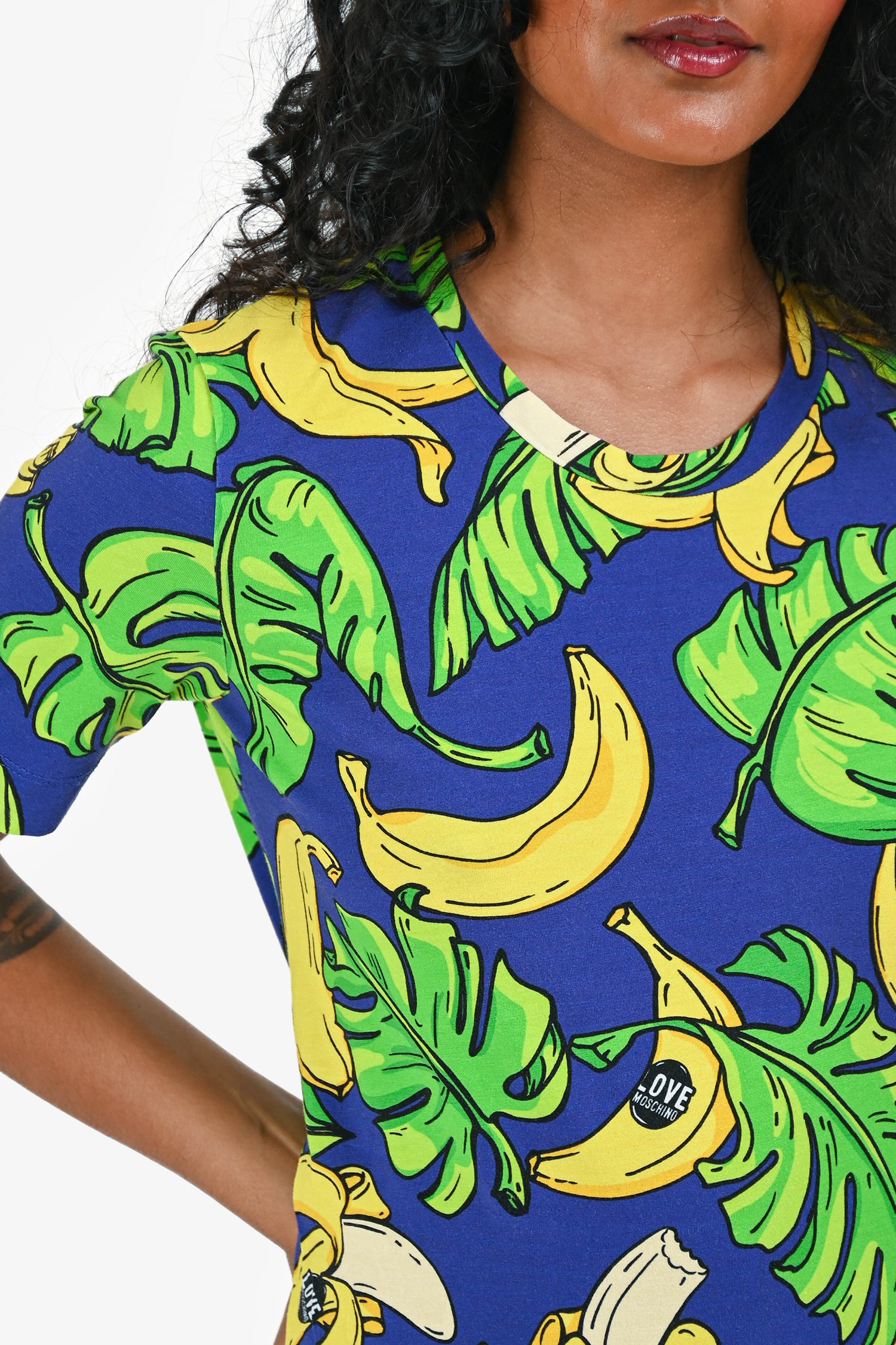 Love Moschino Blue/Yellow Banana Leaf T-Shirt Size 2