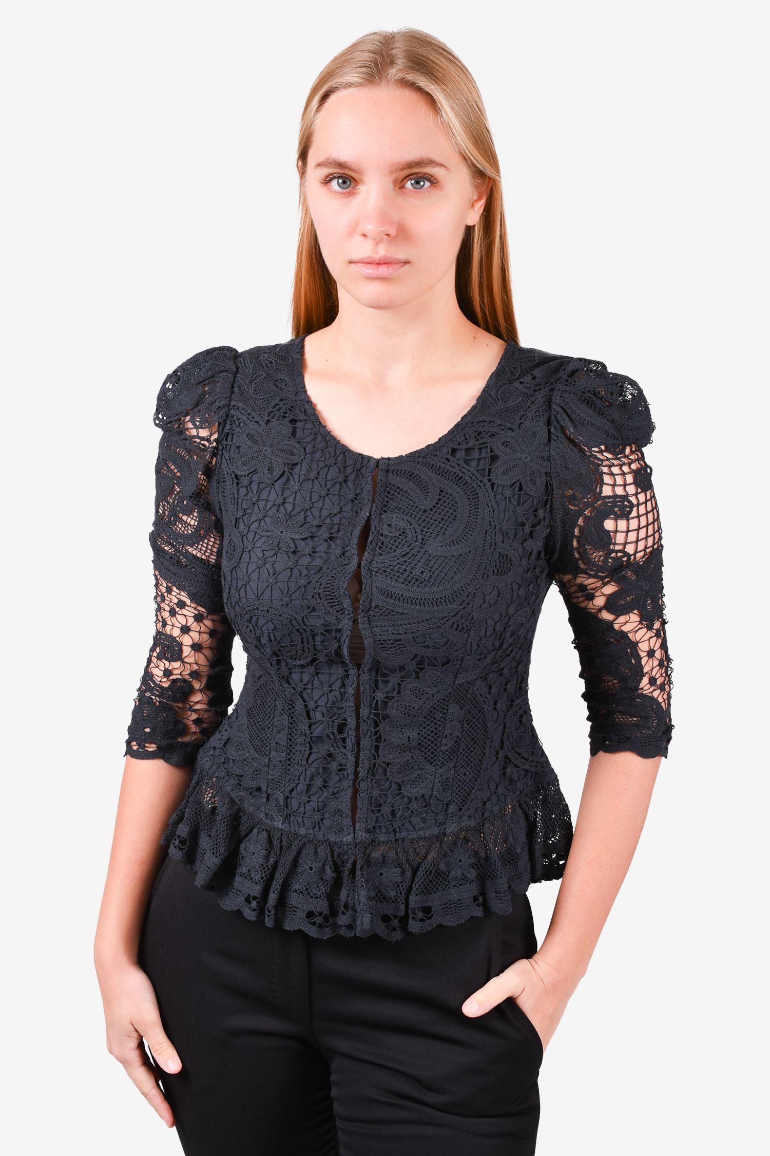 Refresh availabilityLove Shack Fancy Black Lace Top. Clasp-up closure in front. Lined. Tonal stitching.