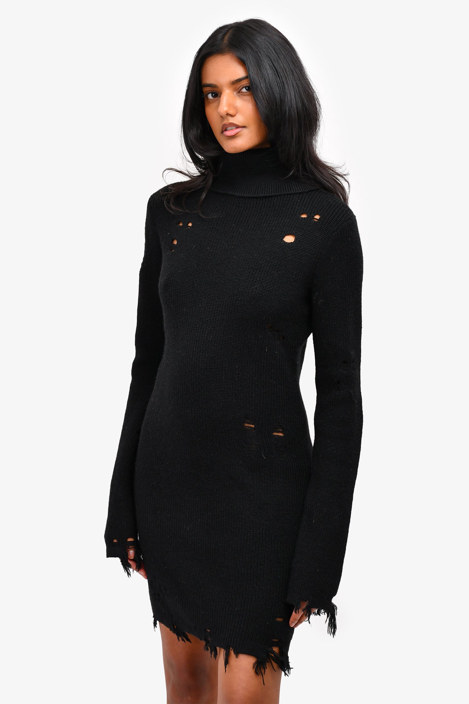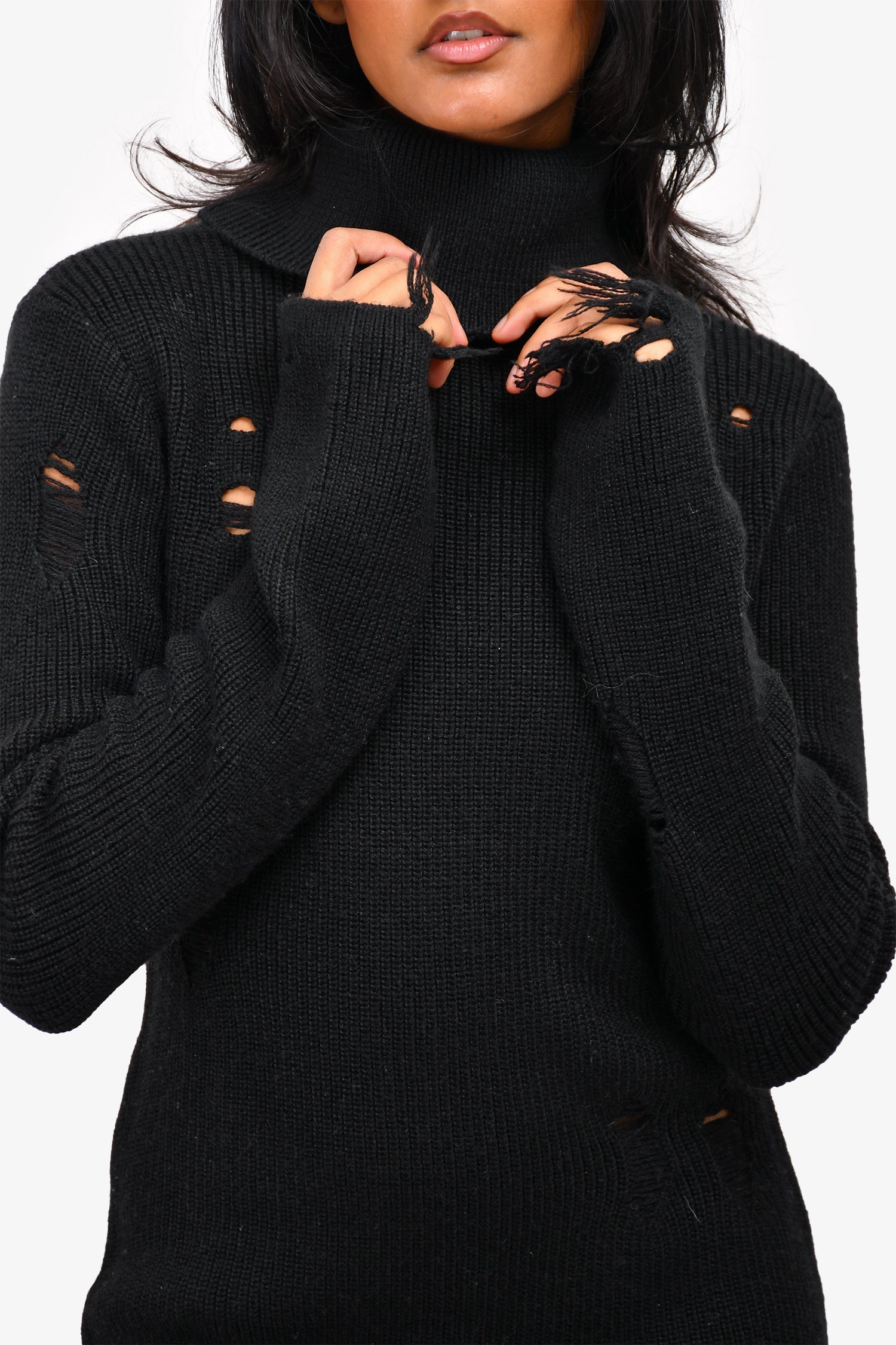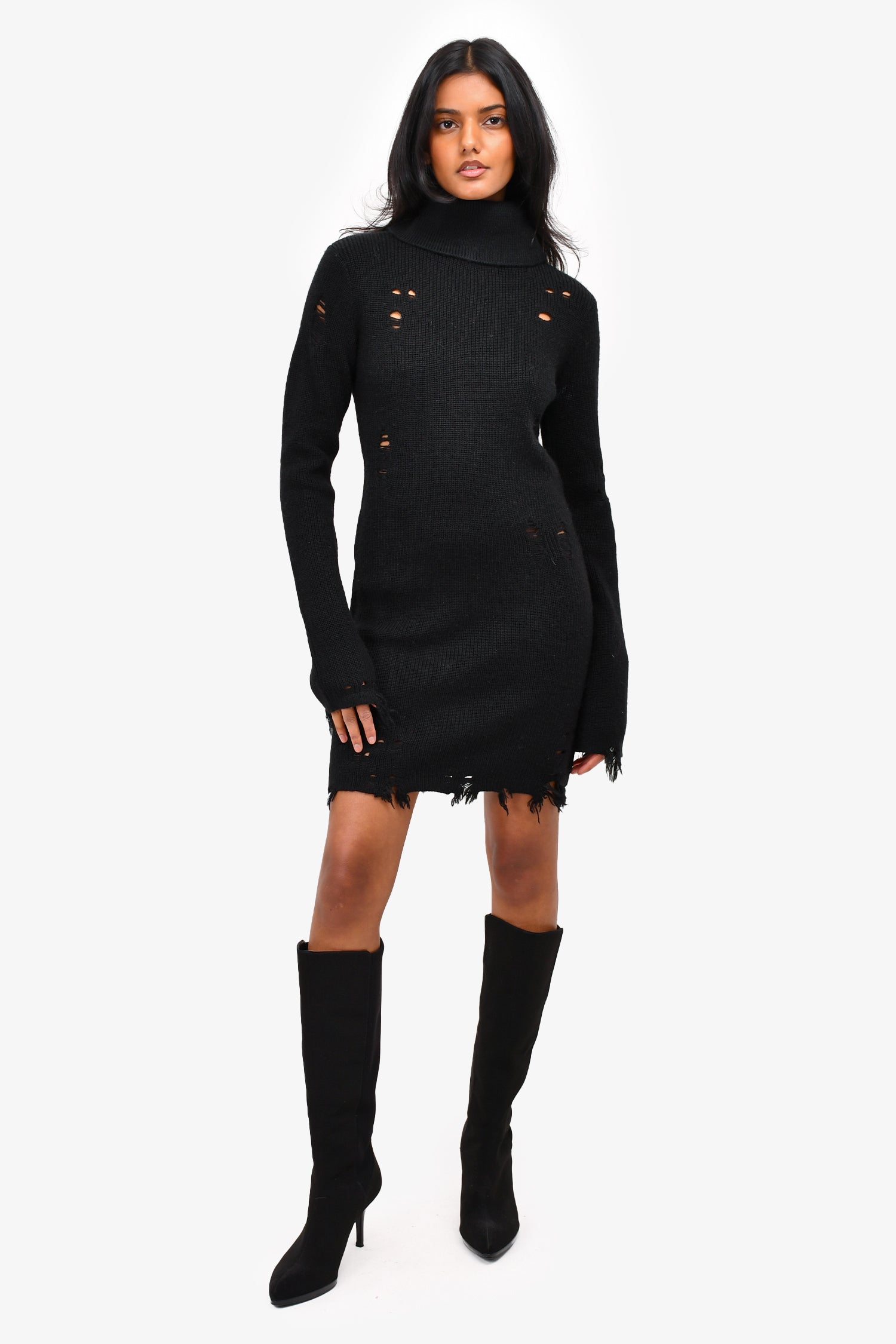 Refresh availabilityLovers + Friends Black Turtle Neck Distressed Knit Dress.