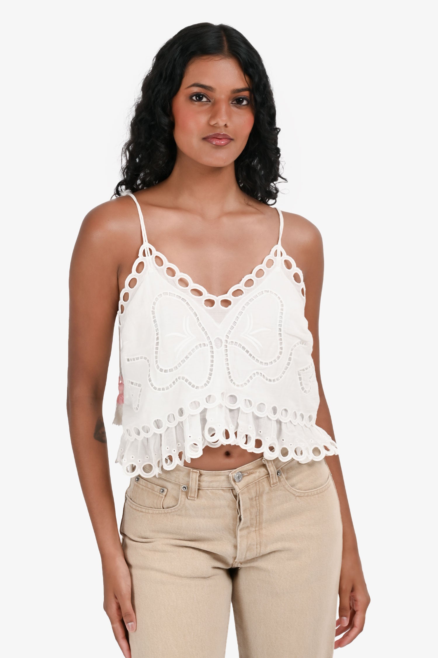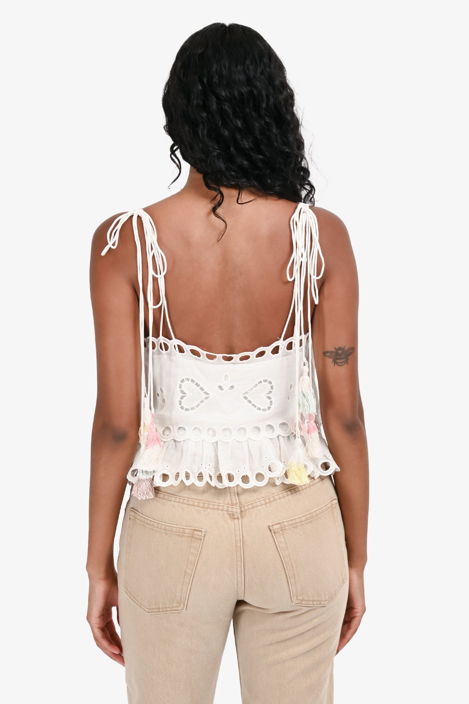 Refresh availabilityLoveShackFancy White Biltmore Cropped Top. Double tied spaghetti straps. Eyelet detail. Mesh lined interior. Tonal stitching.