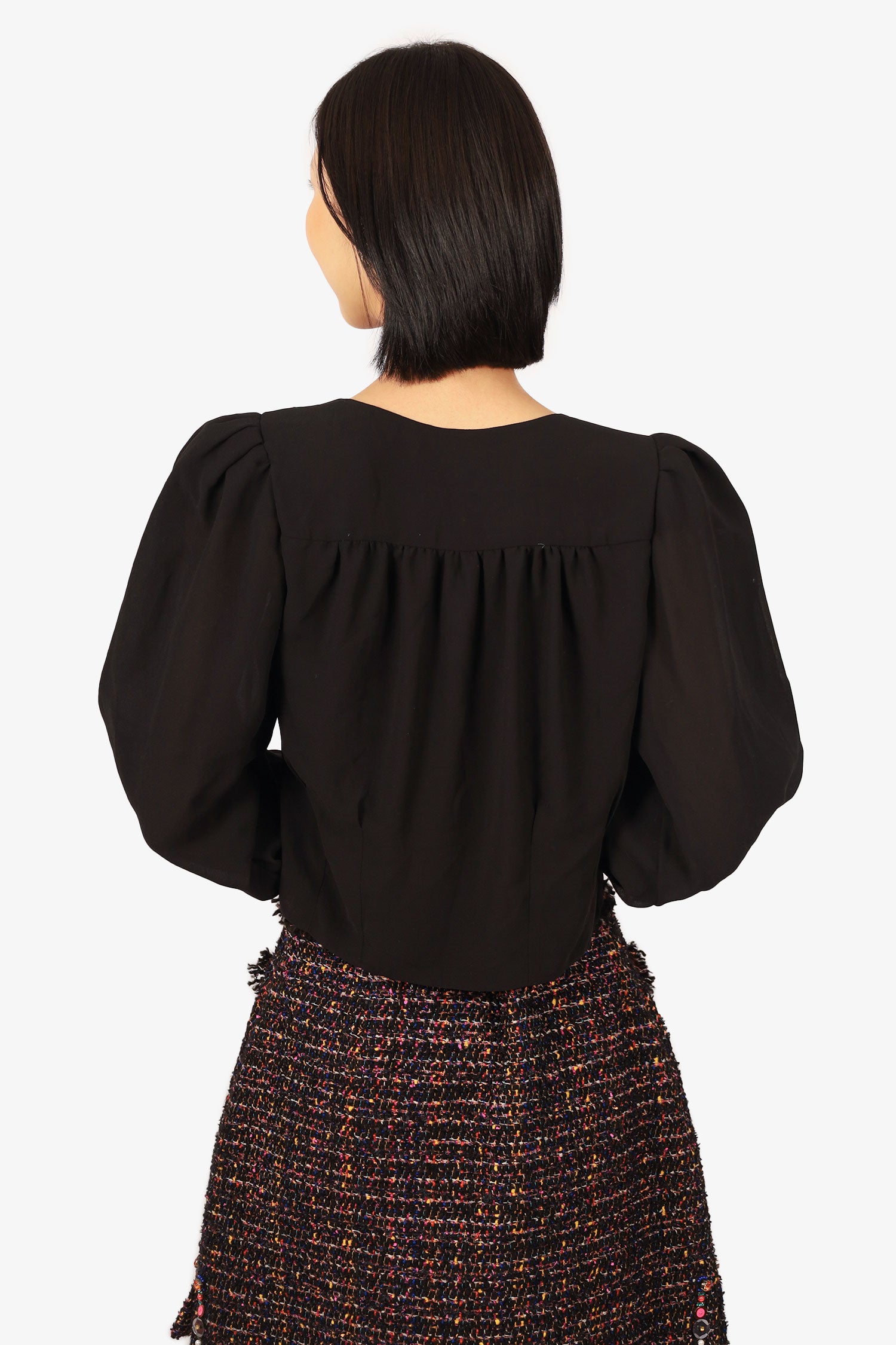 LPA Black Mesh Balloon Sleeve Blouse Size M