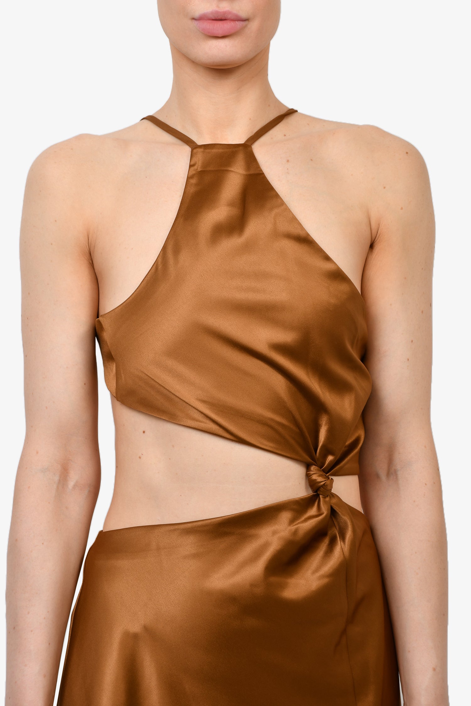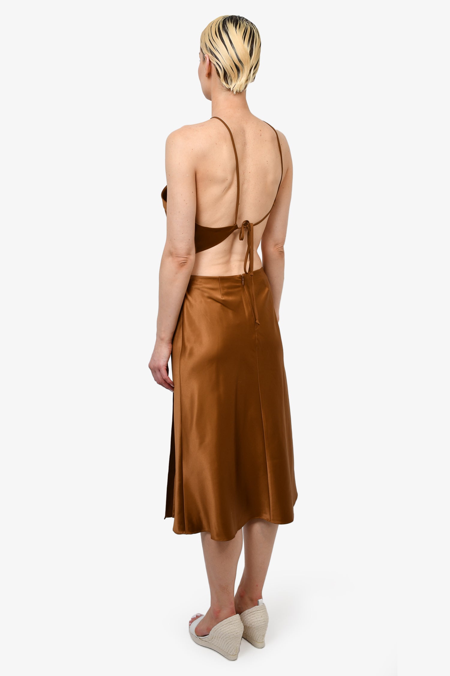 LPA Brown Satin Cutout 'Imani' Dress Size S