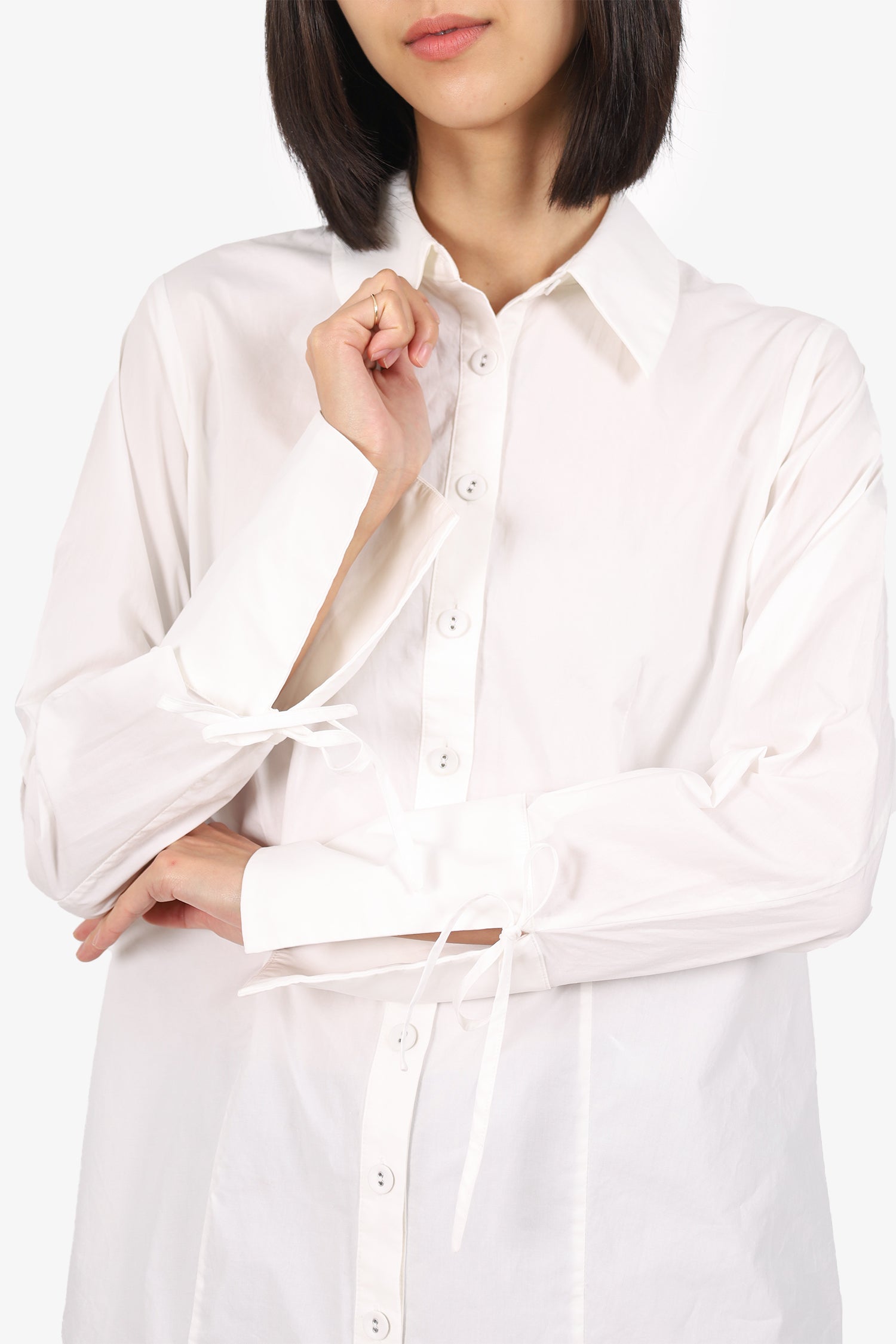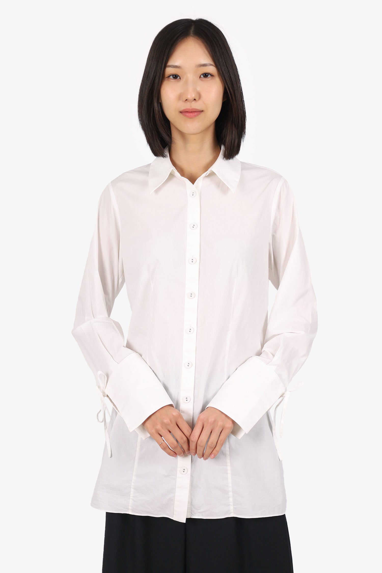 Refresh availabilityLPA White Button Down Blouse. Pull-on. Collared-neckline. Front button-up closure. Sleeve cuffs with tie-up closure. Tonal stitching.