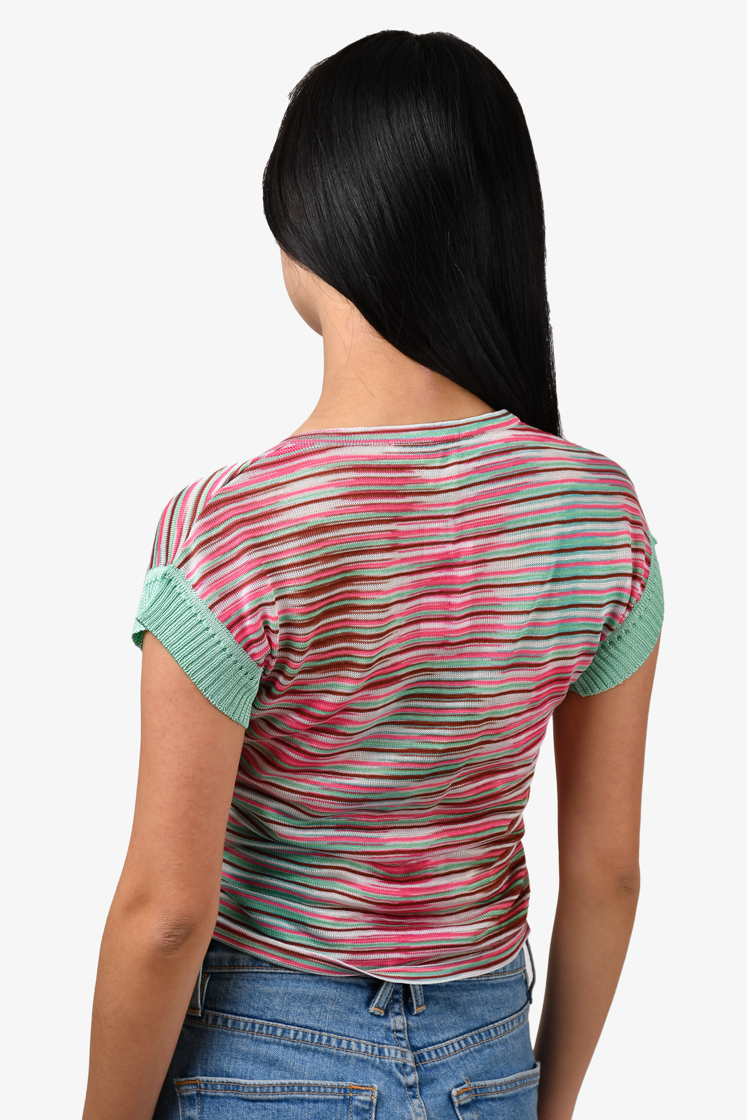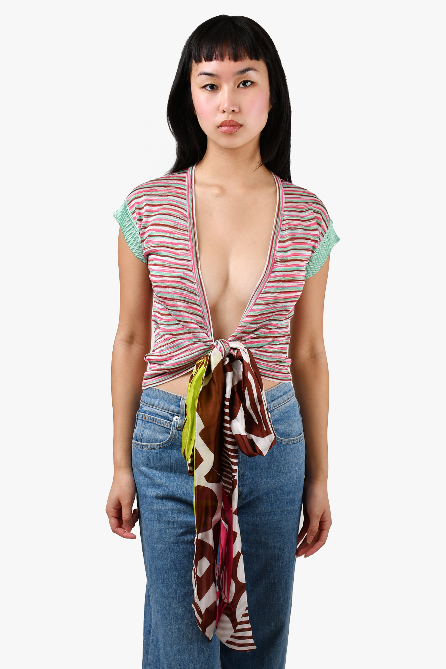 M Missoni Pink Multicoloured Striped Knit Tie Front Top Size 2