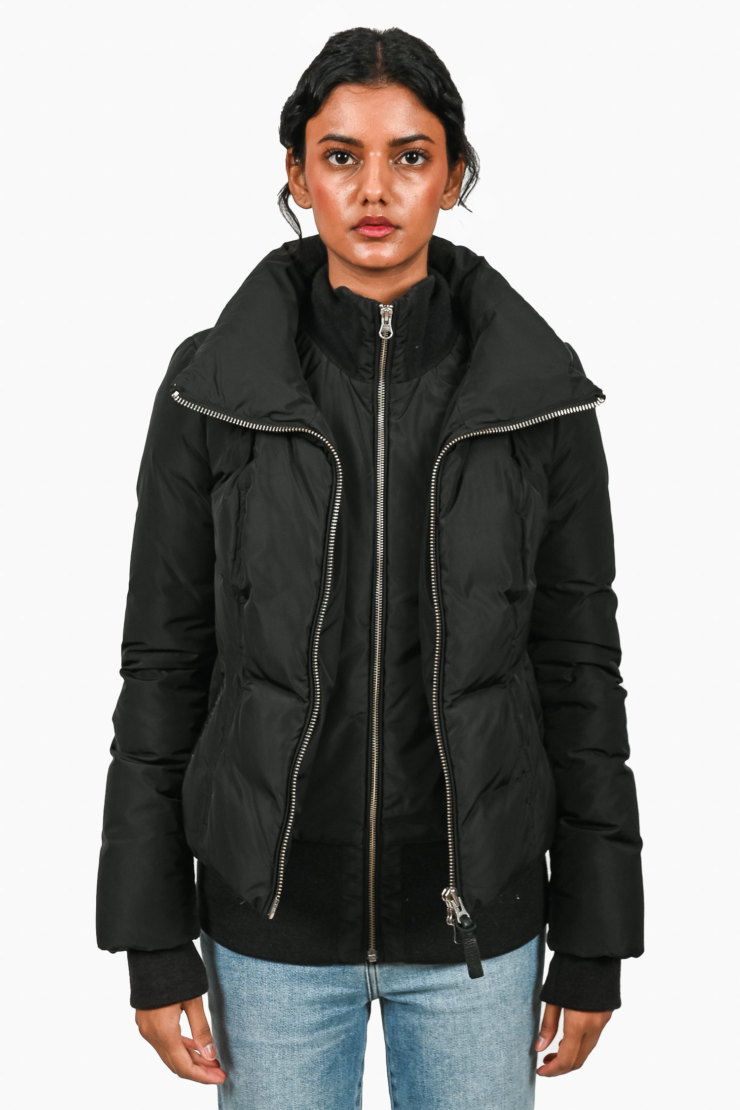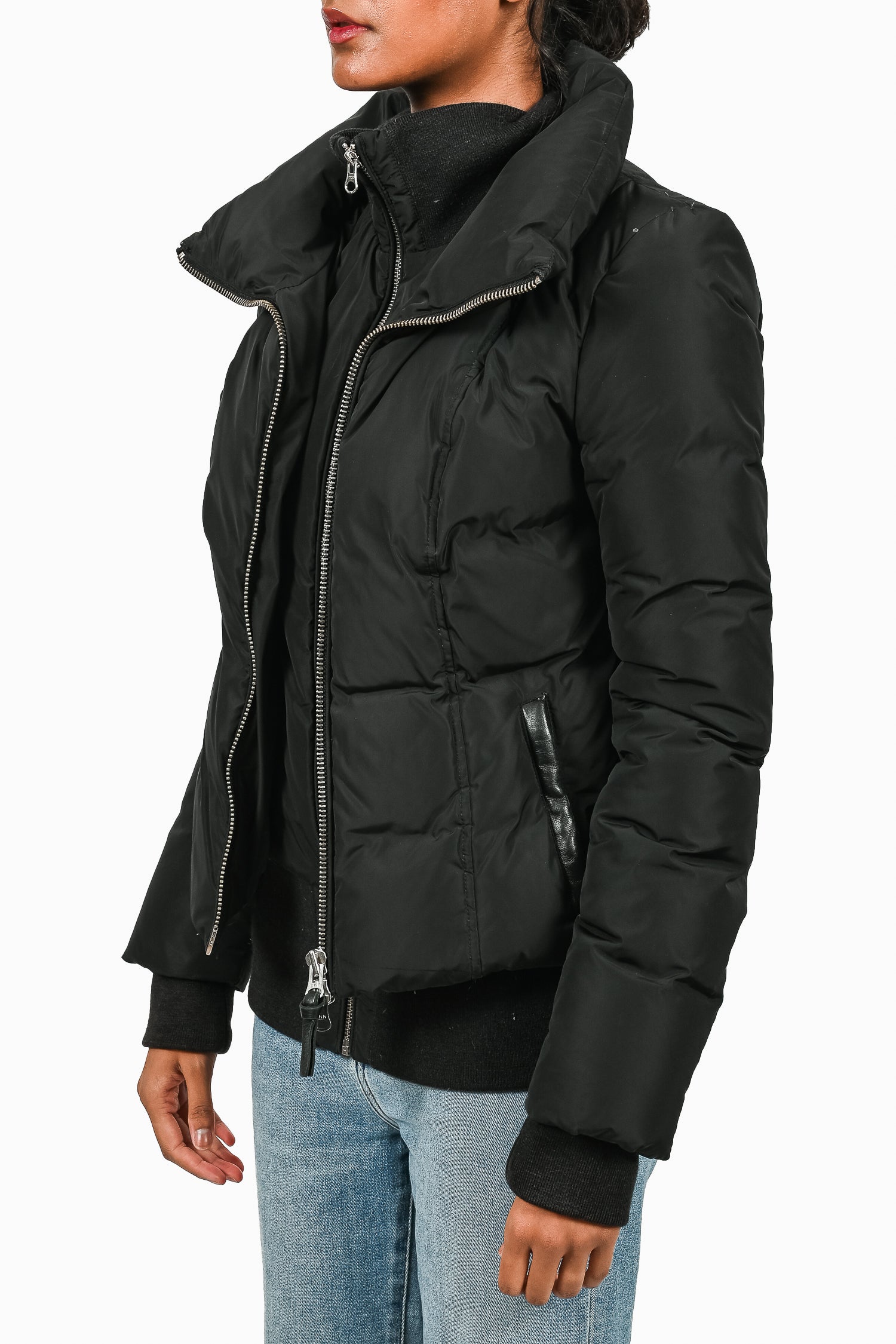 Mackage Black Double Zip Puffer with Hood. Front zip closures. Front zip pockets. Elasticized hem and cuffs. Tonal stitching.