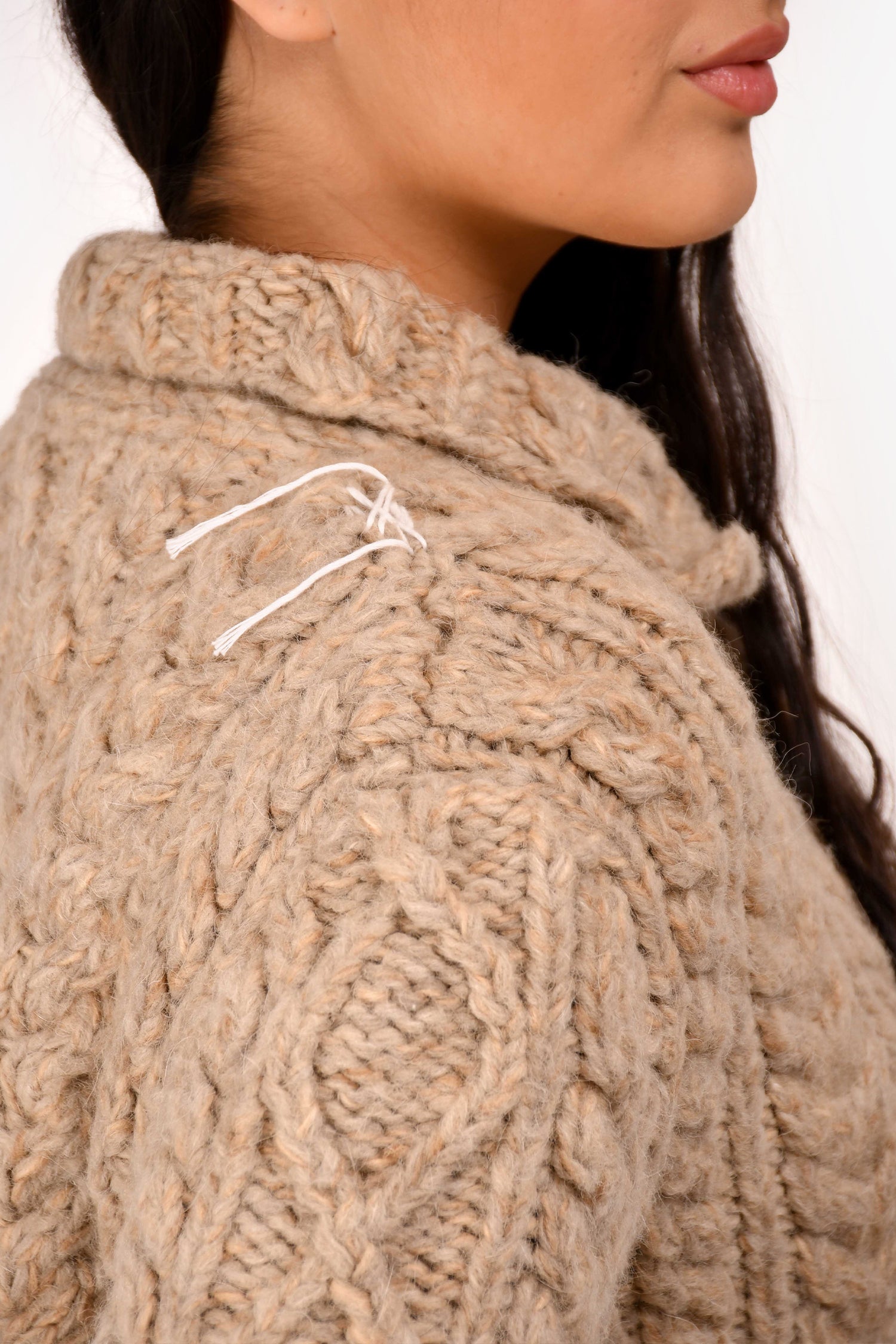 Refresh availabilityMaison Margiela 2021 Beige Alpaca/Wool Knit Turtle Neck Cardigan. Button down closure. Unlined interior. Tonal stitching.