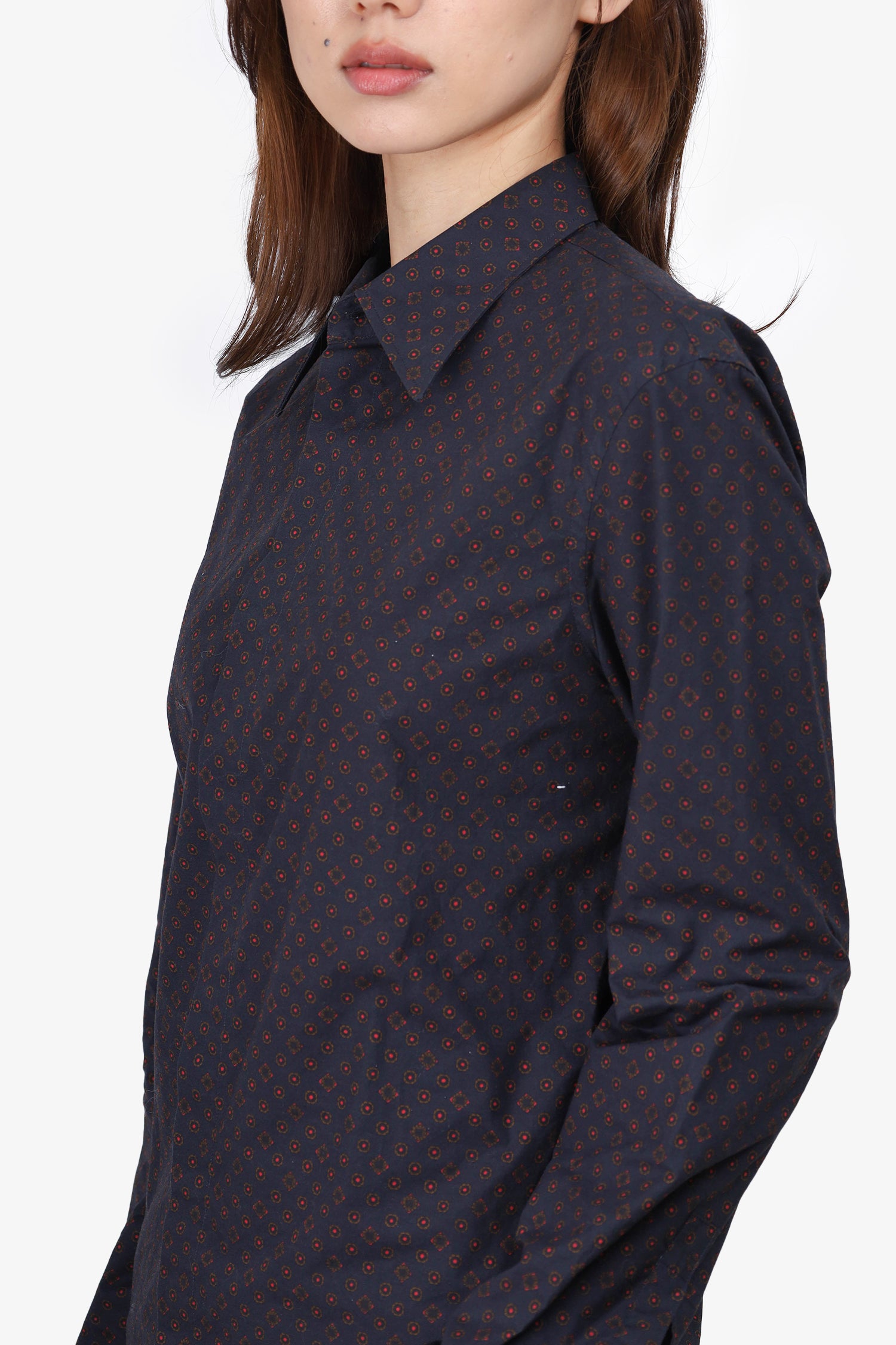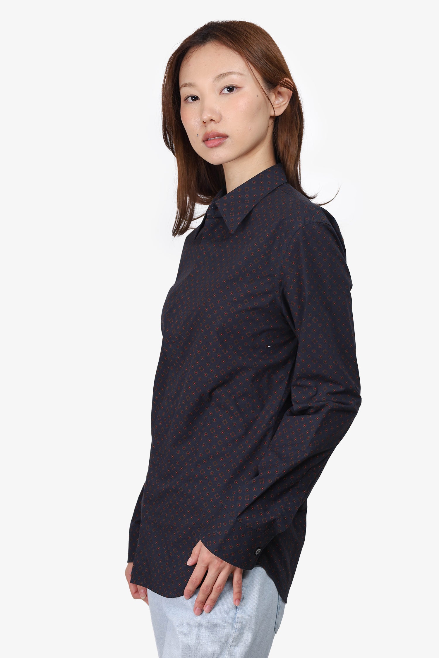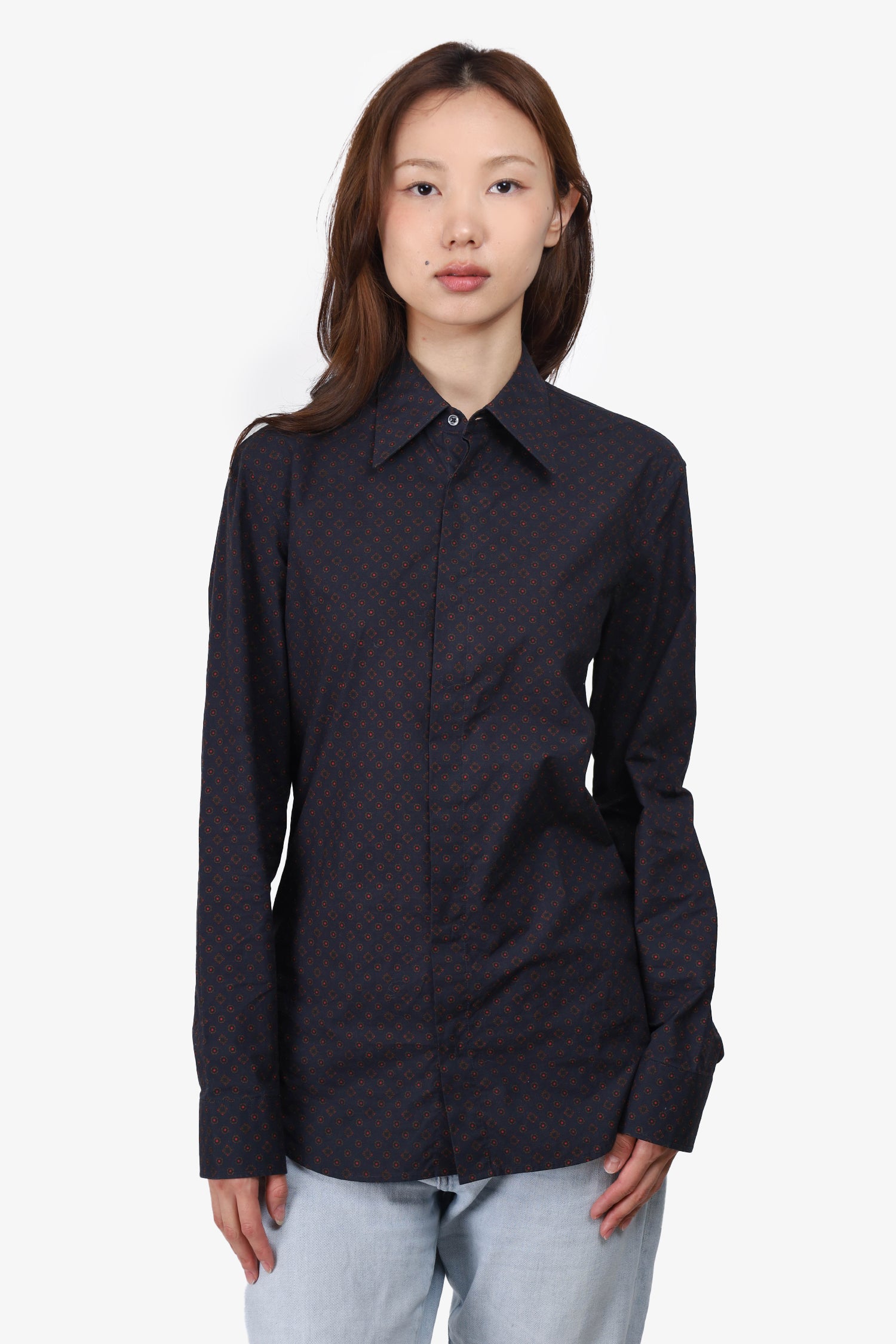 Refresh availabilityMaison Margiela Navy Printed Shirt. Collared neckline. Front button-up closure. Button-up sleeve cuffs. Unlined. Tonal stitching.