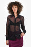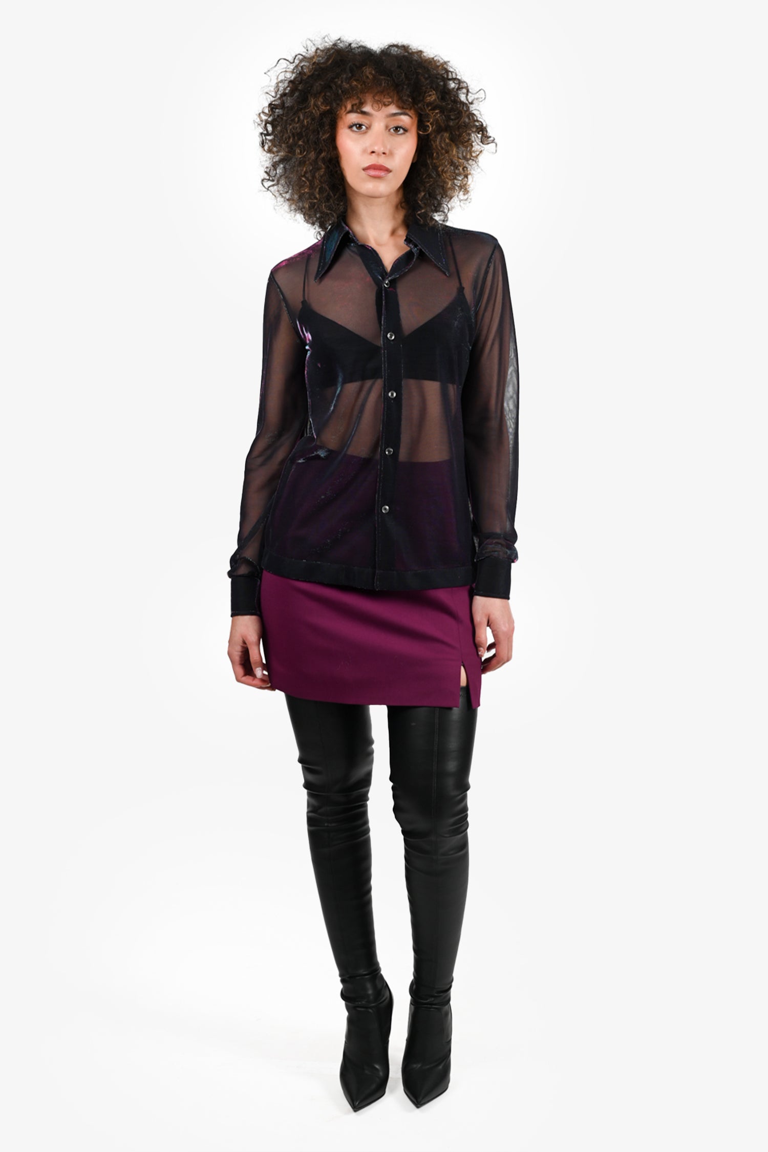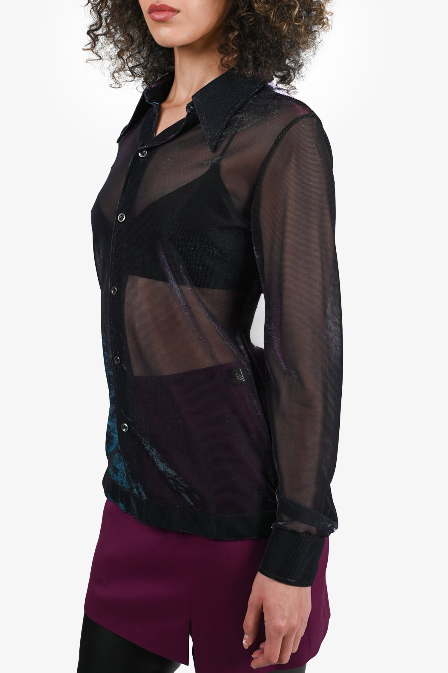 Maison Margiela Blue Iridescent Mesh Button-Down Top Size 42