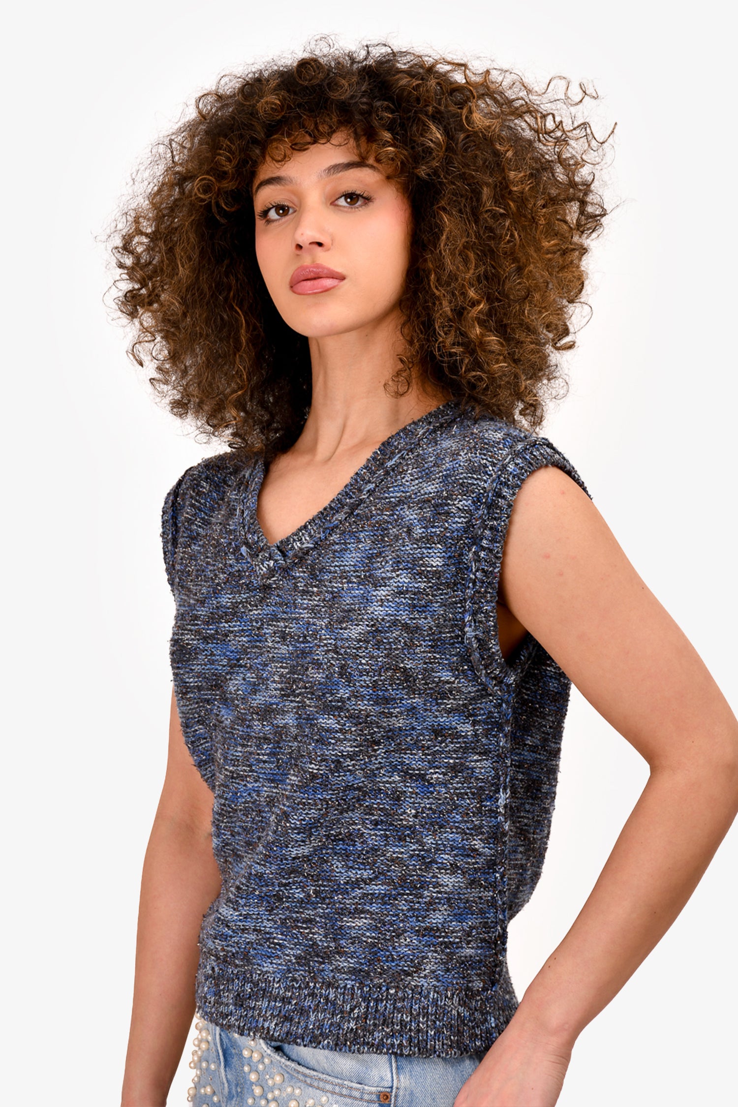 Refresh availabilityMaison Margiela Blue Knit Sleeveless Sweater. V-neck. Pull on. Unlined.
