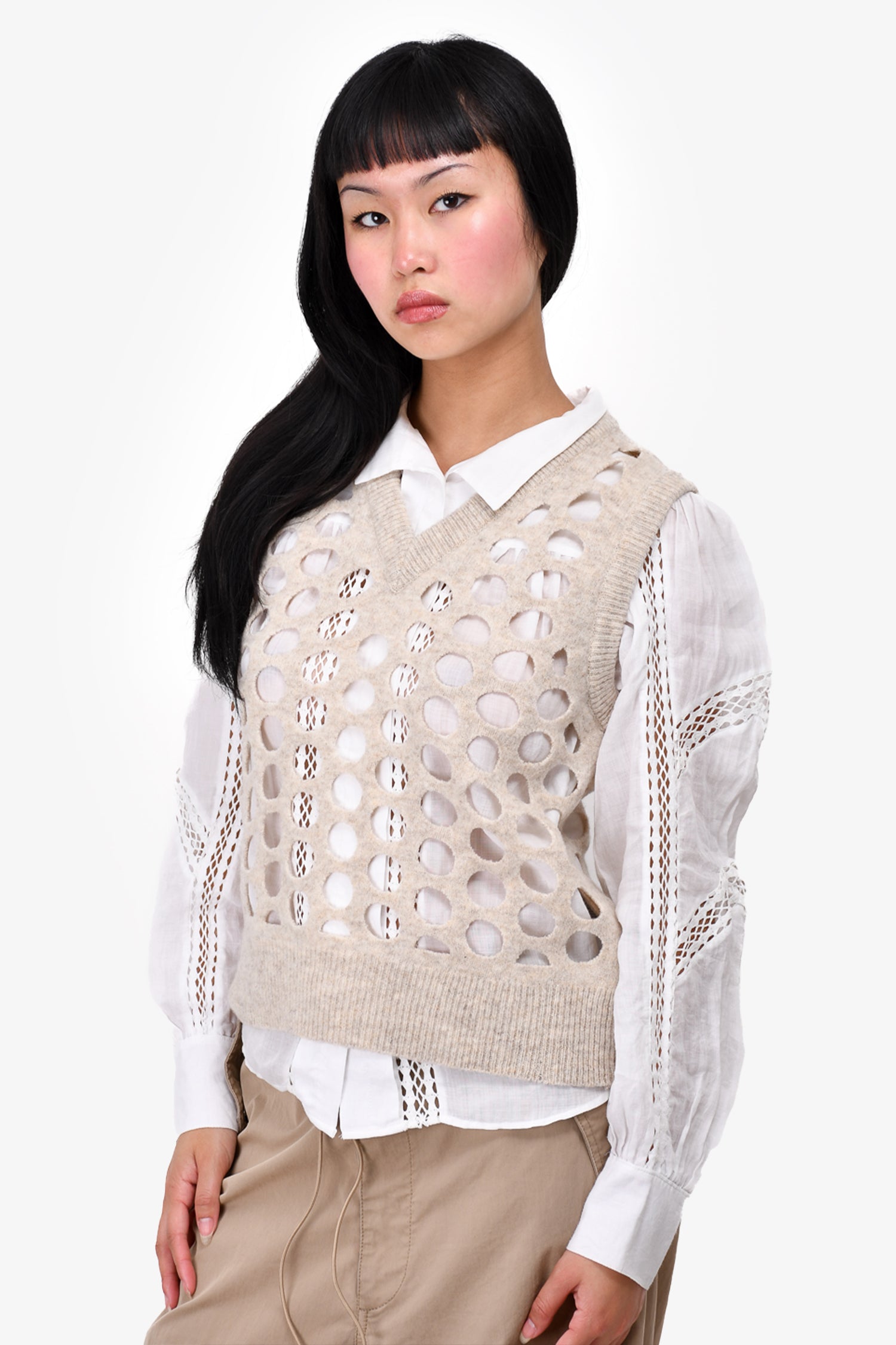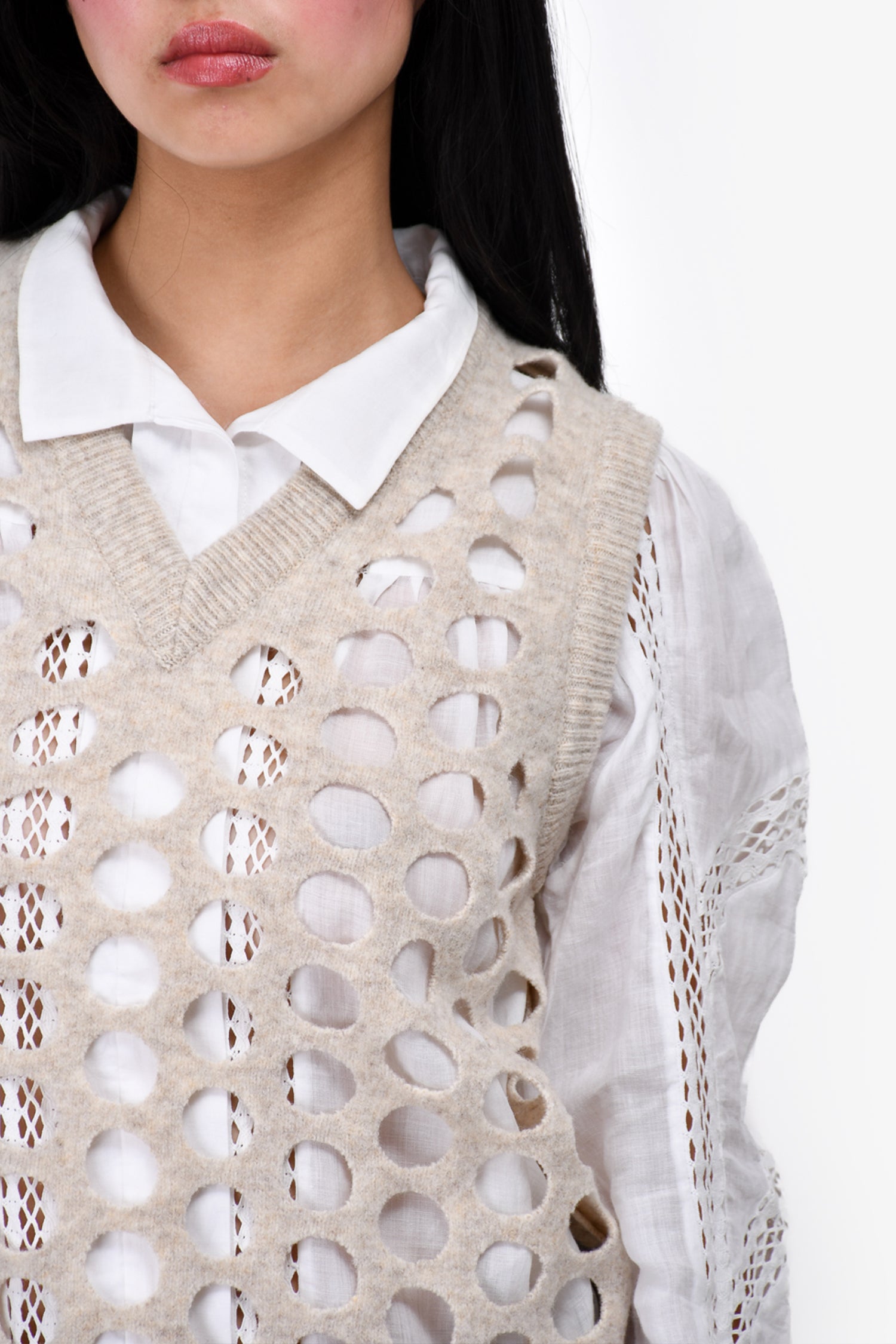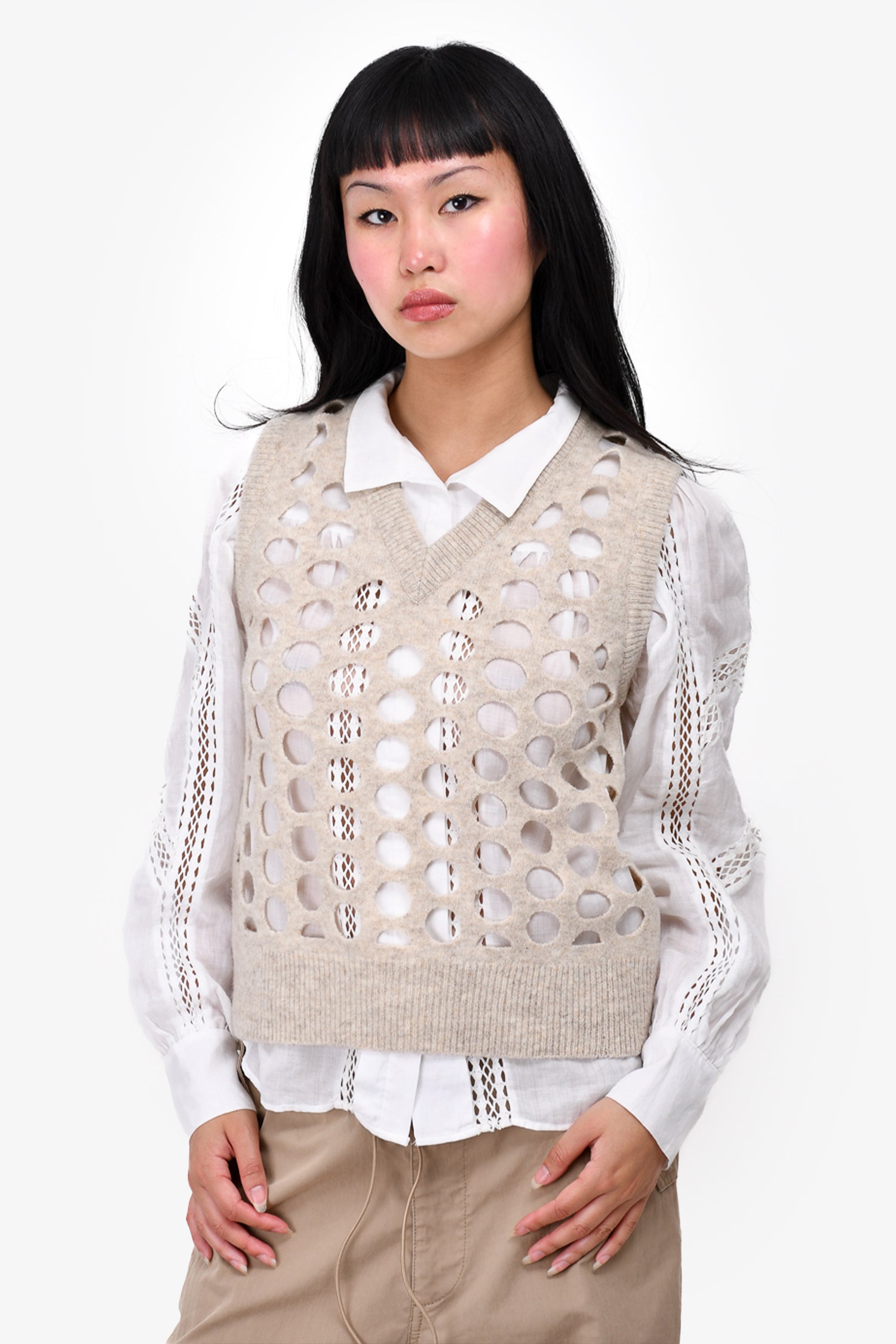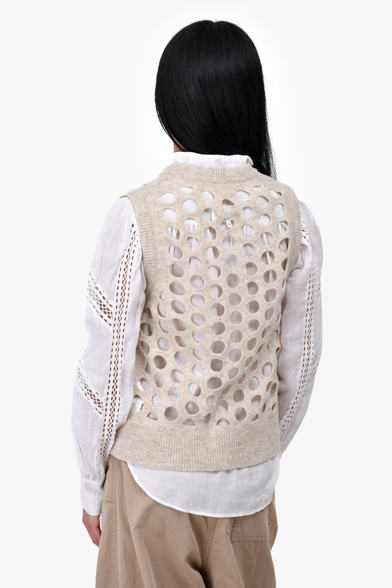 Refresh availabilityMaison Margiela Cream Wool Knit Cut-Out Detail Sleeveless Top. V-neck. Pull-on.
