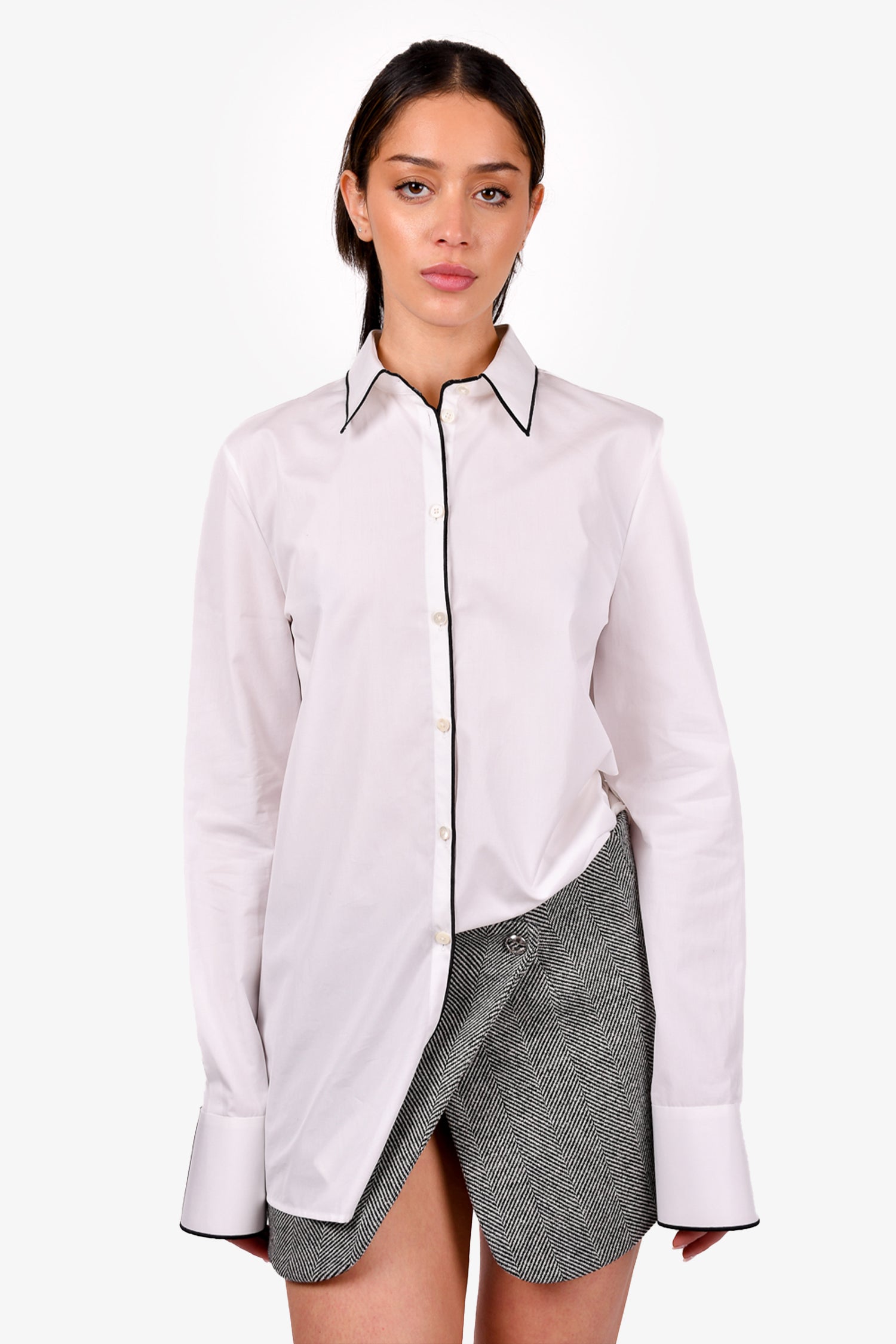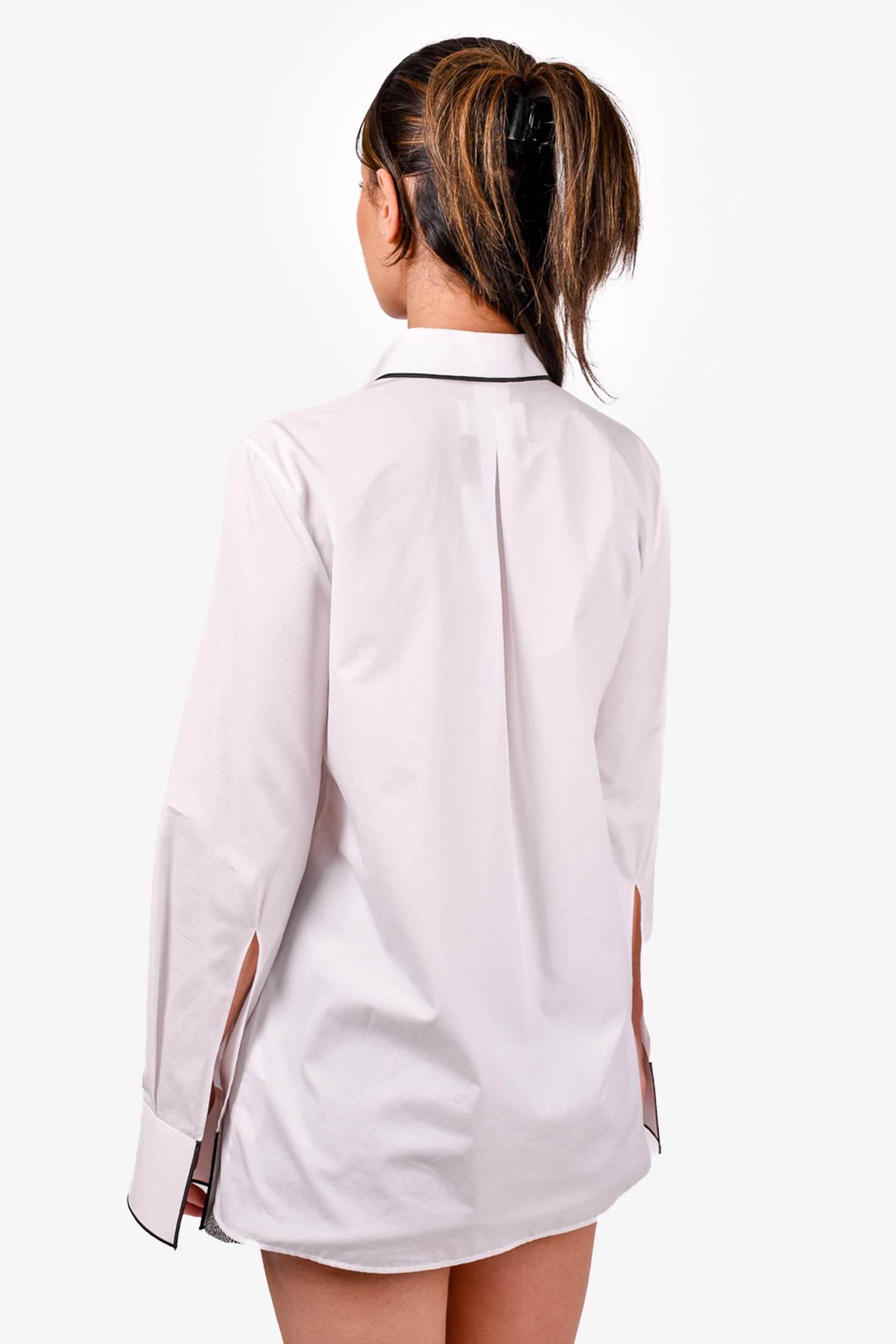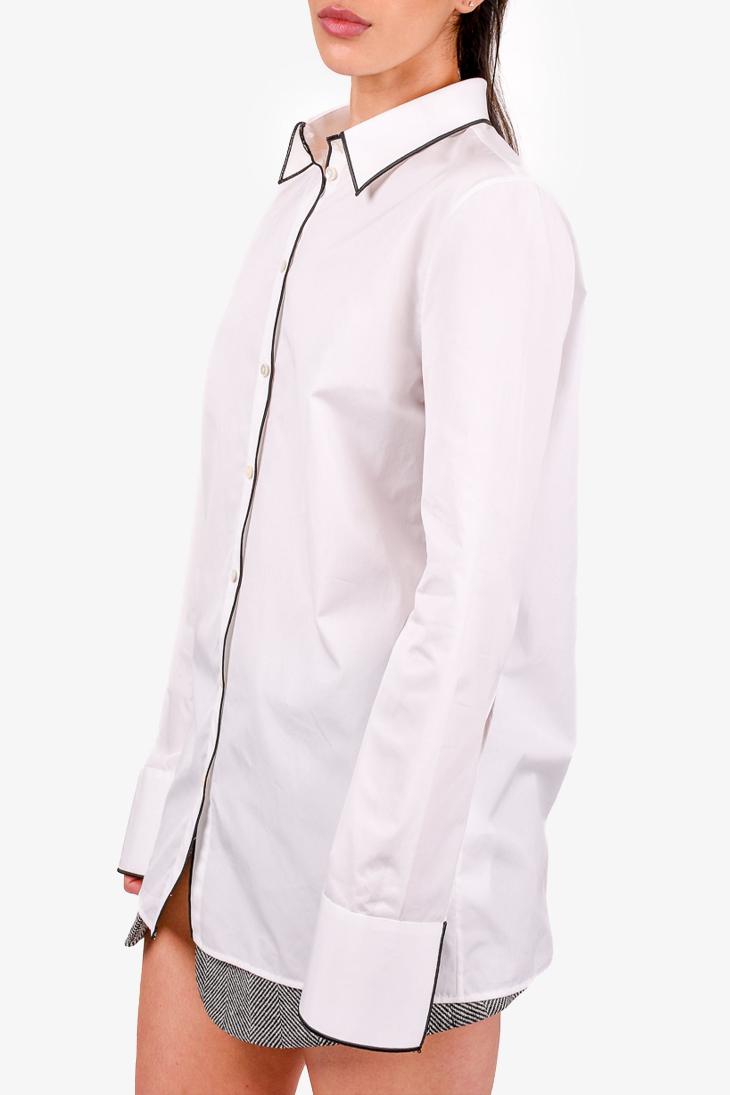 Refresh availabilityMaison Margiela White Cotton Poplin Shirt with Black Trim. Unlined. Button-up closure. Tonal stitching.