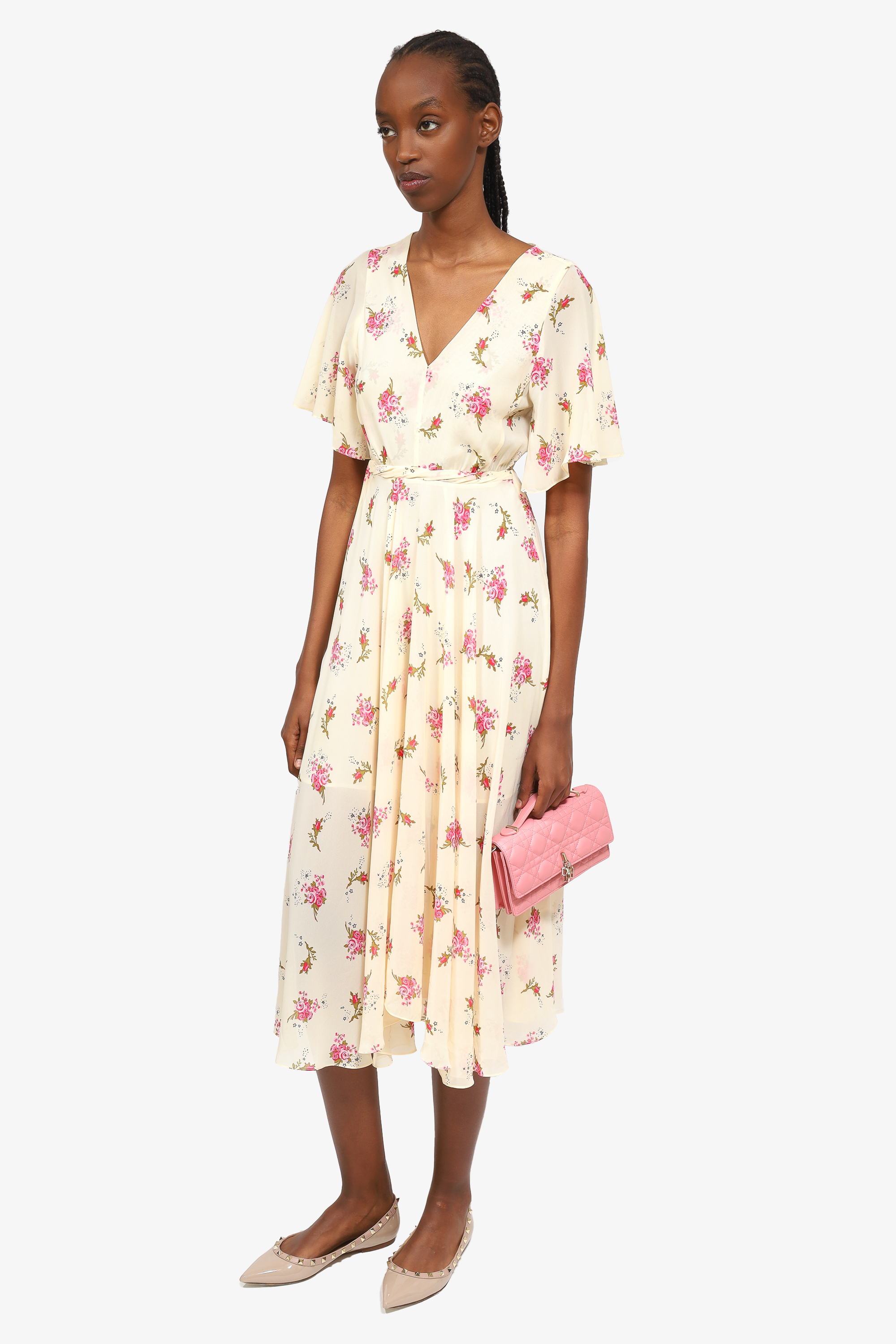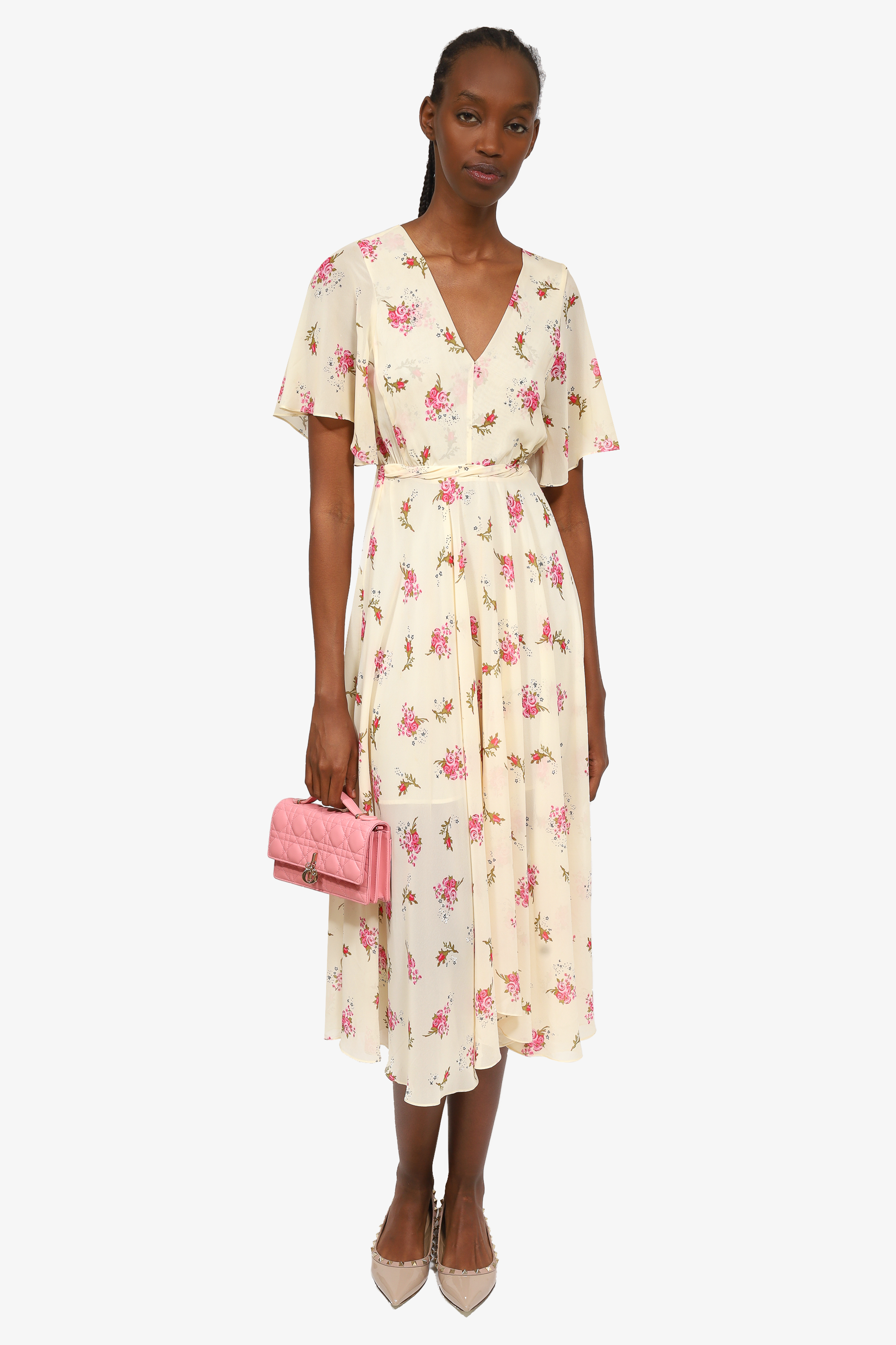 Maje Beige Floral Print Short Sleeve Midi Dress Size 34