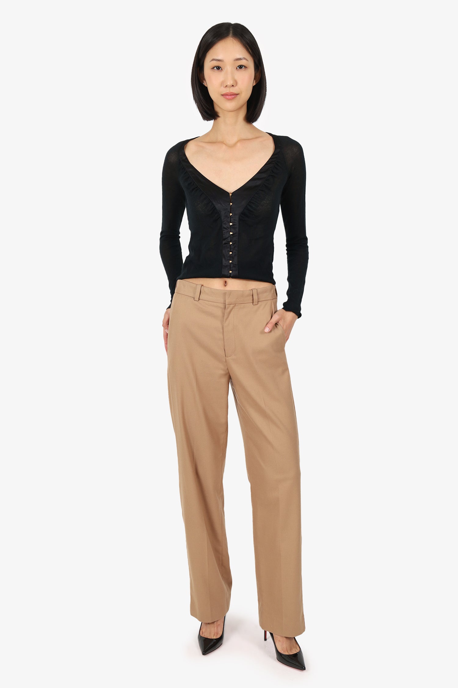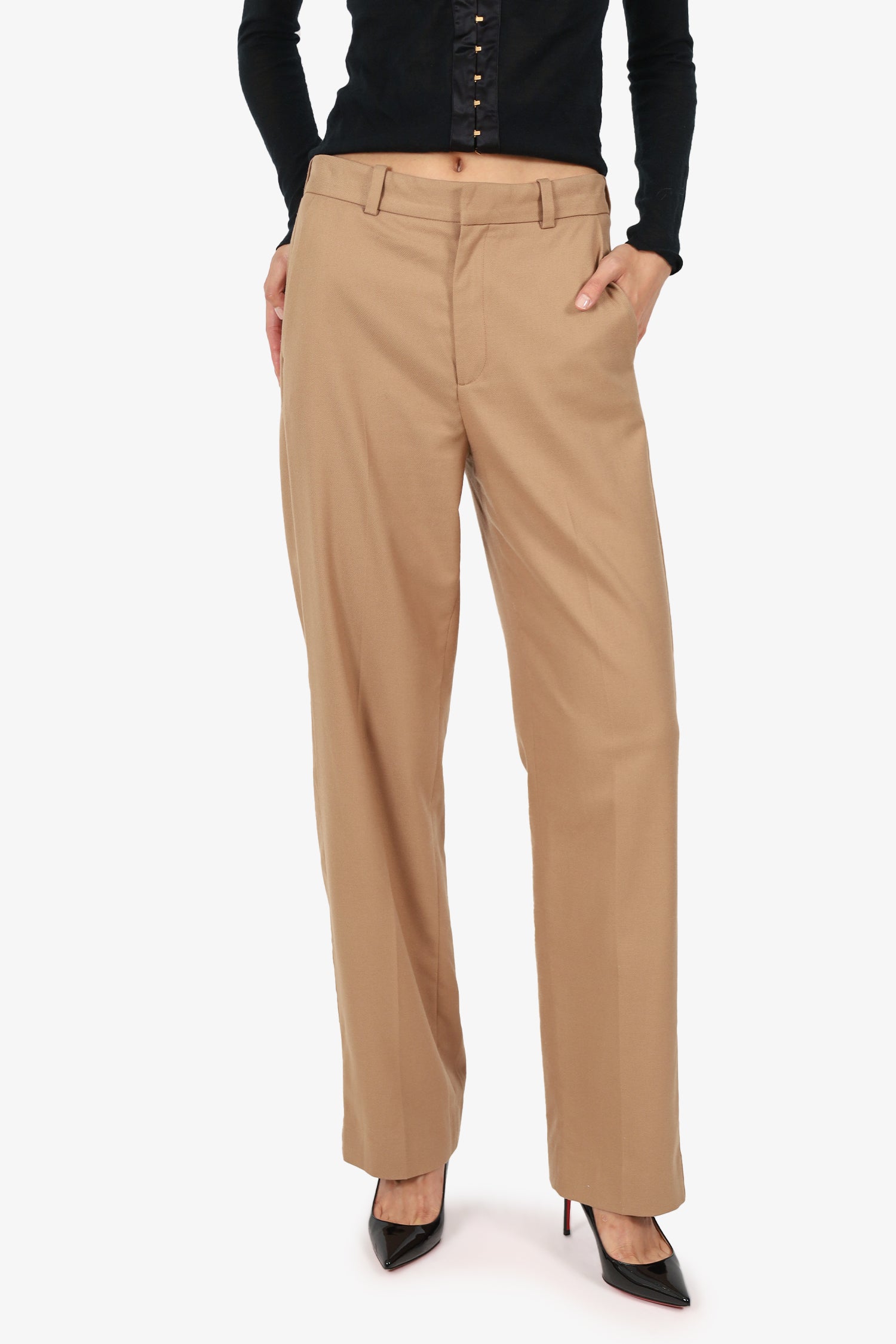 Refresh availabilityMaje Beige High Waist Straight Trouser. Slip-on. Front zip and hook closure. Waistband belt loops. 3 exterior pockets; 2 side slip and 1 rear slip. Tonal stitching.