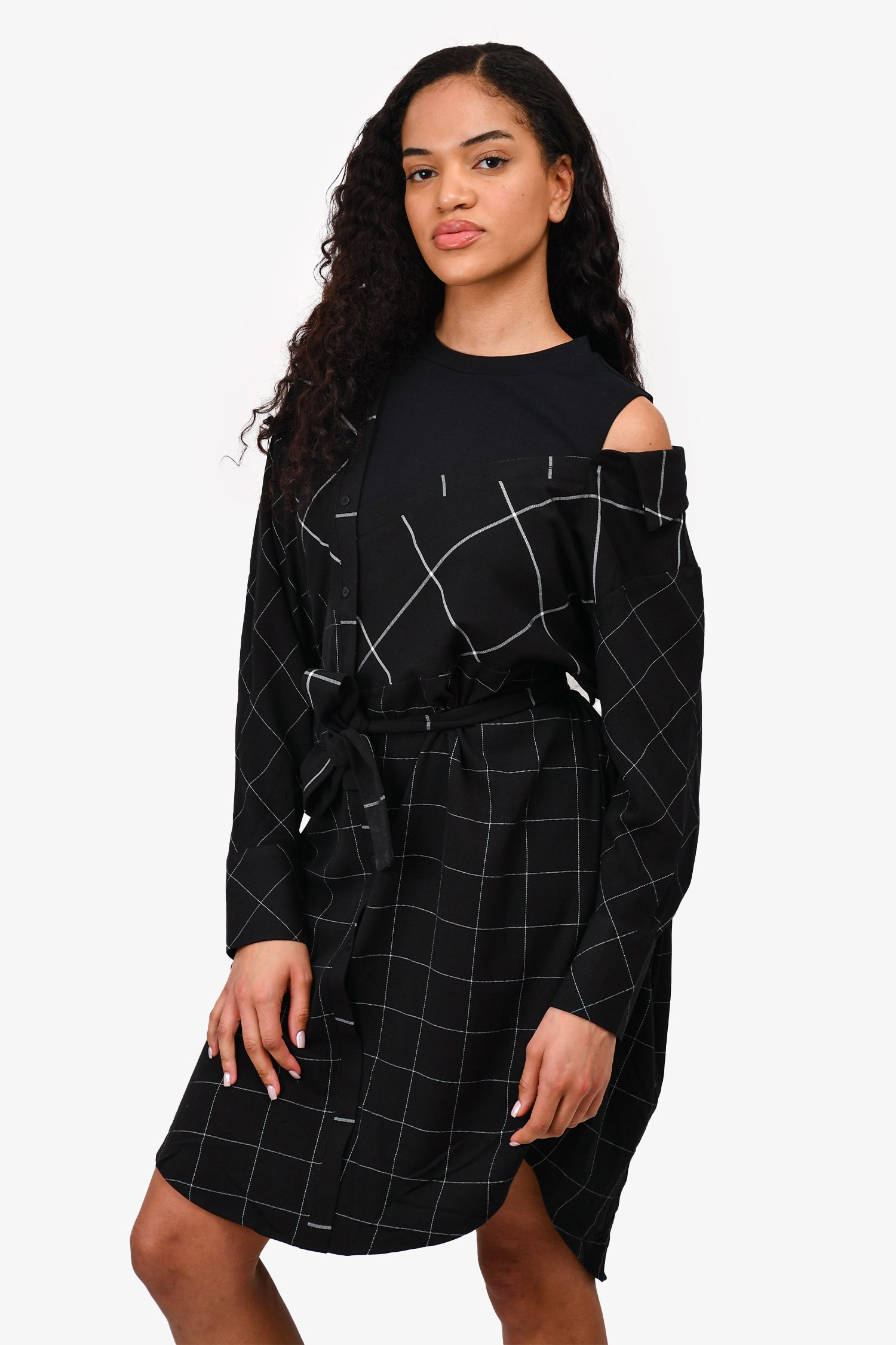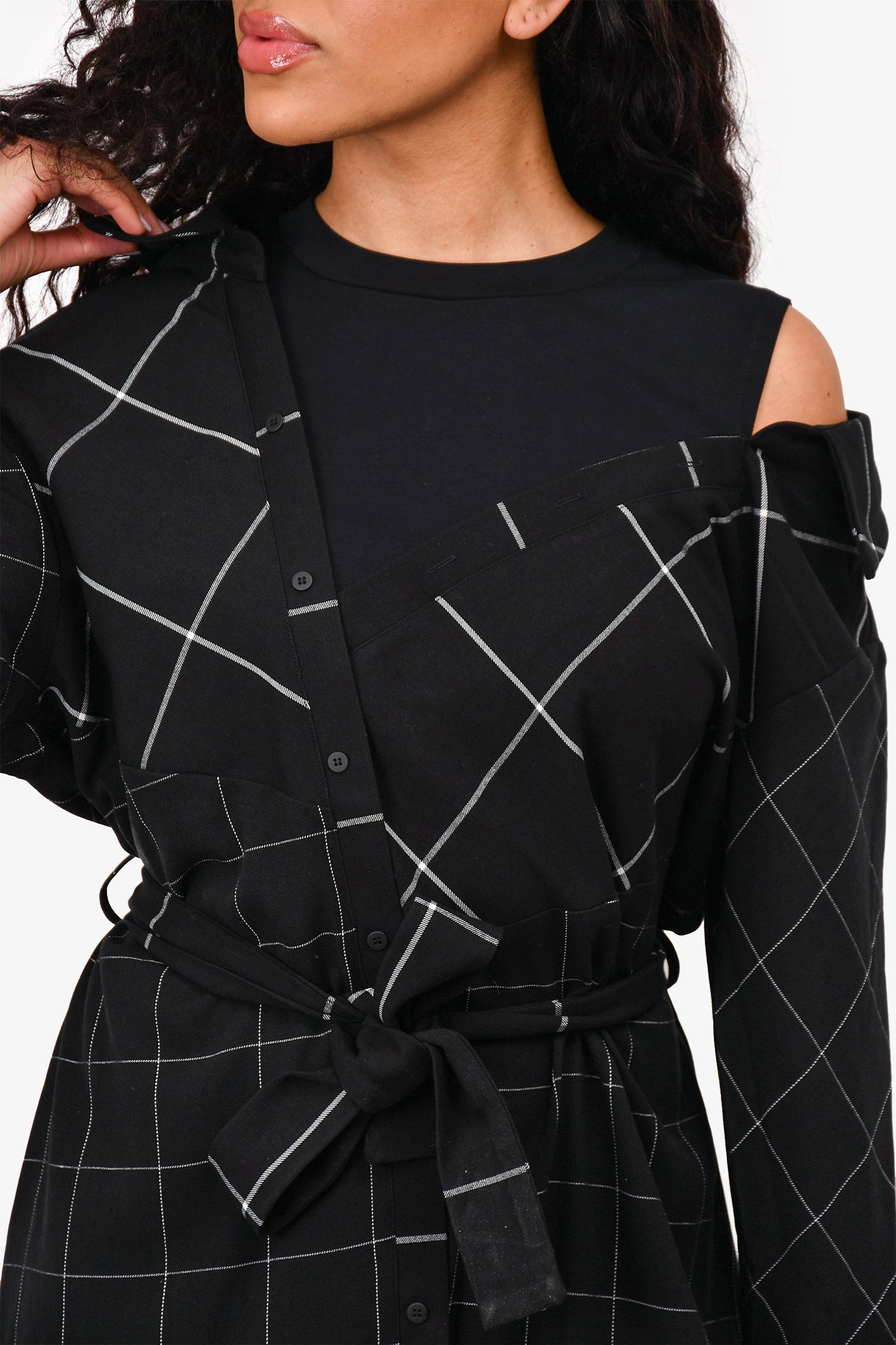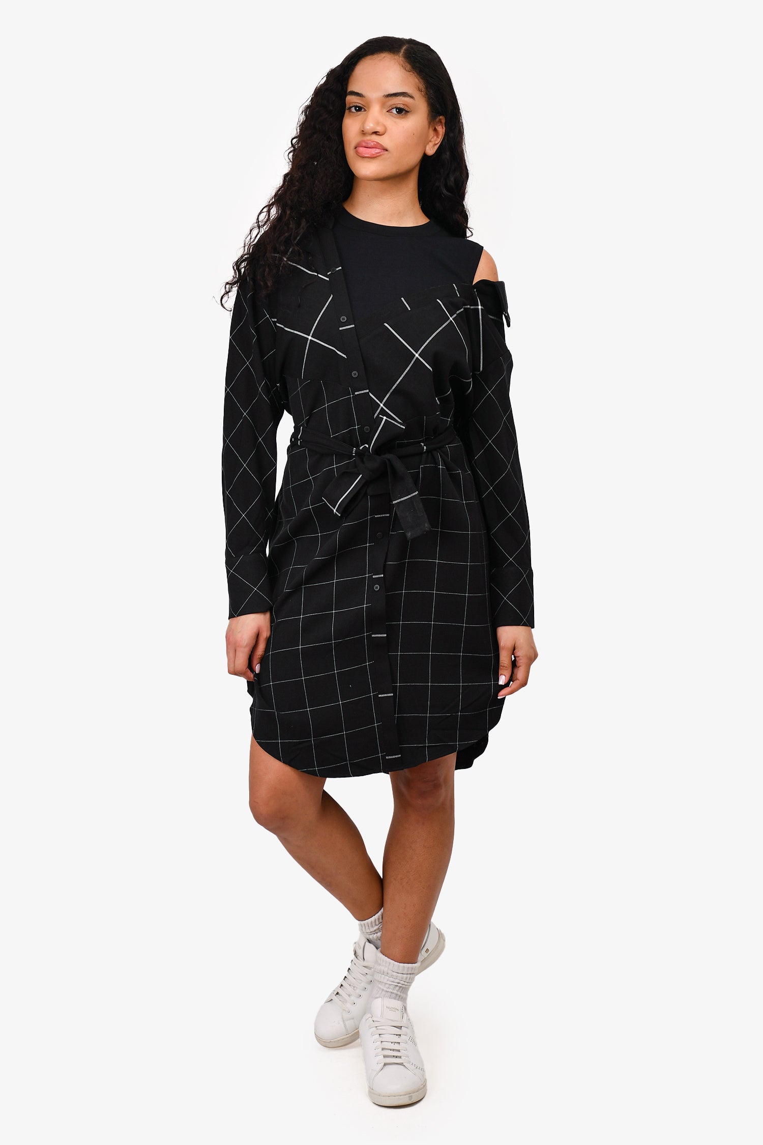 Refresh availabilityMaje Black Checked Asymmetrical Dress. Long sleeved. Tonal stitching.