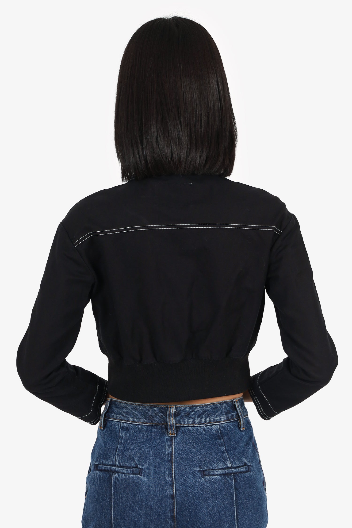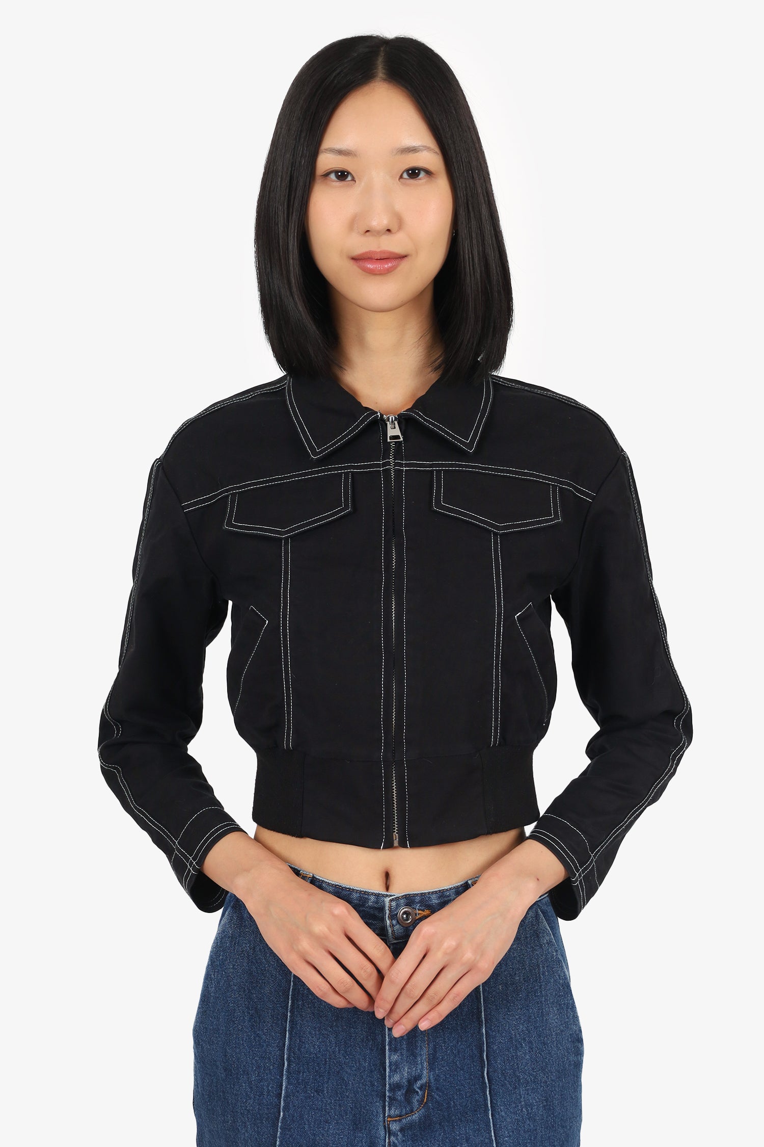 Maje Black Contrast Stitch Zip-up Jacket Size 36