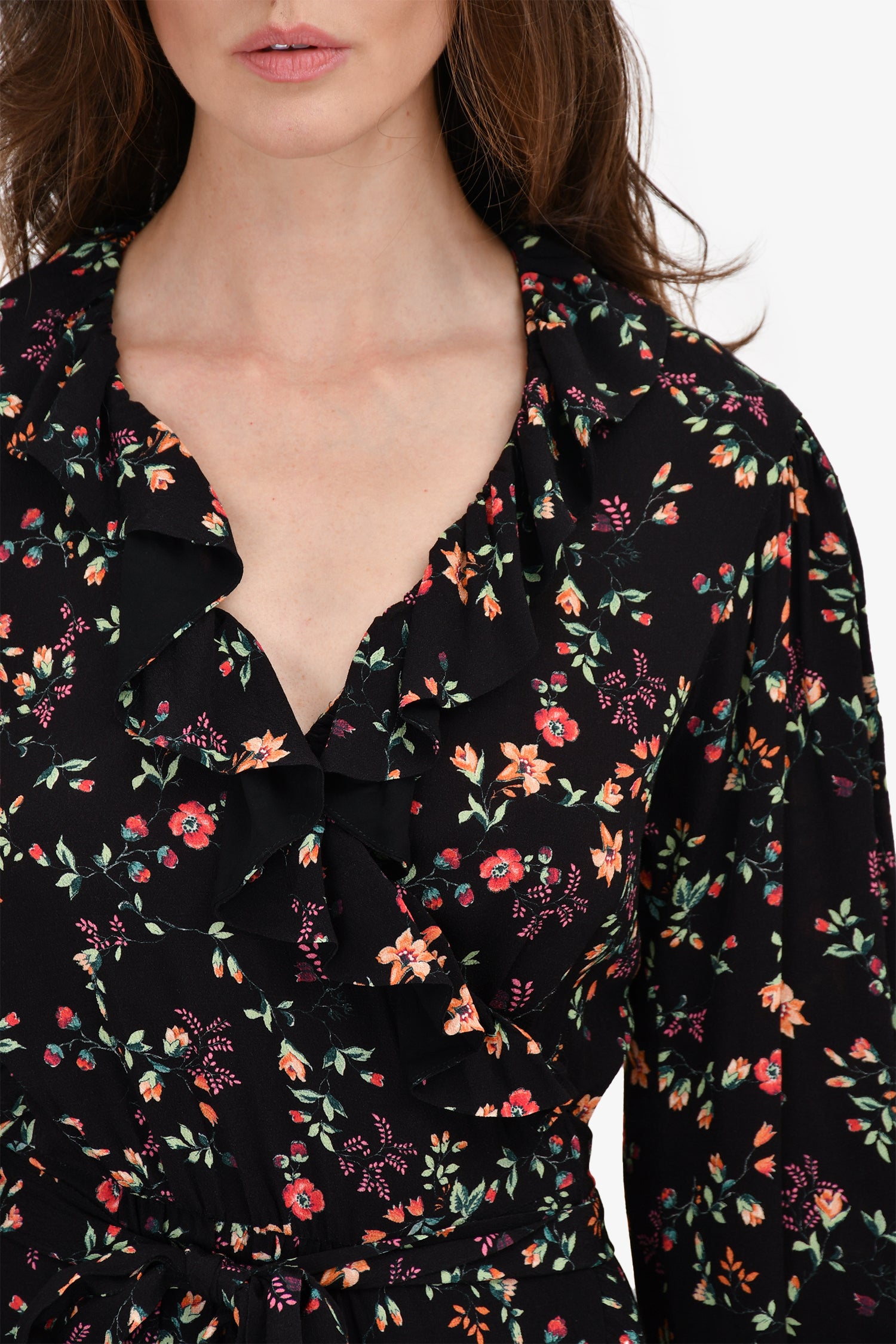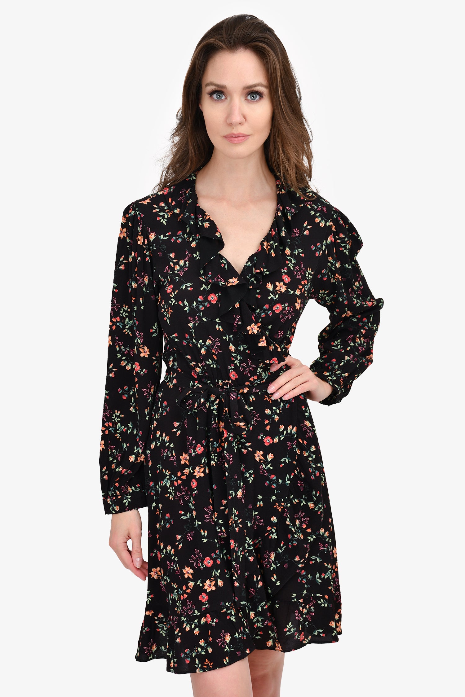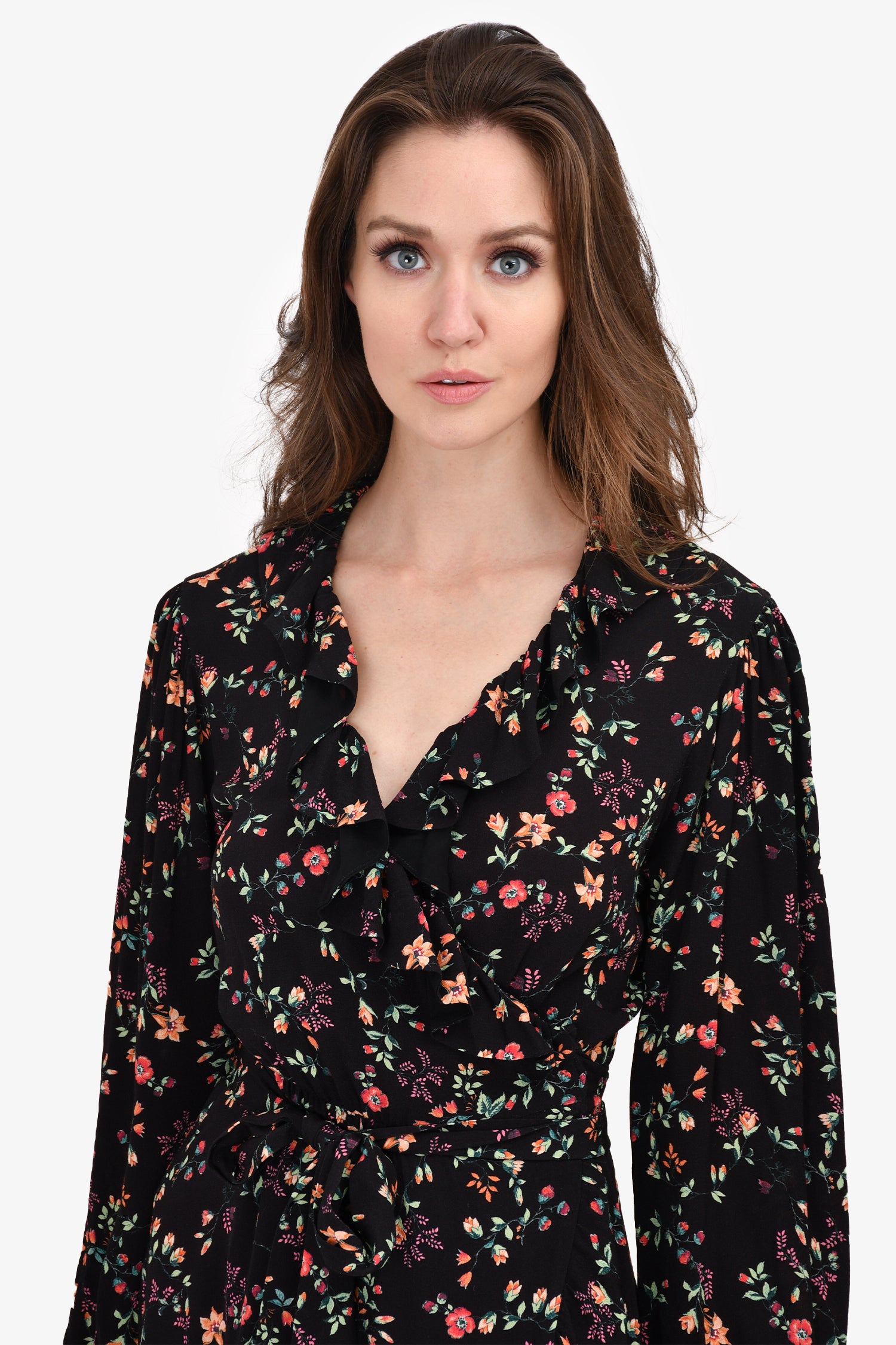 Refresh availabilityMaje Black Floral Printed Wrap Dress. Wrap closure. Unlined.