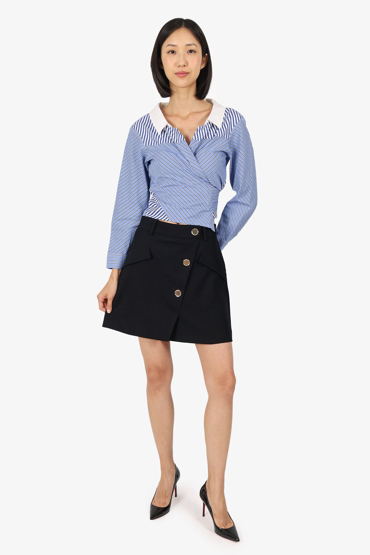 Refresh availabilityMaje Black GHW Detail Mini Skirt. Slip-on. Rear zip closure. Waistband belt loops. Gold-tone hardware. Tonal stitching.