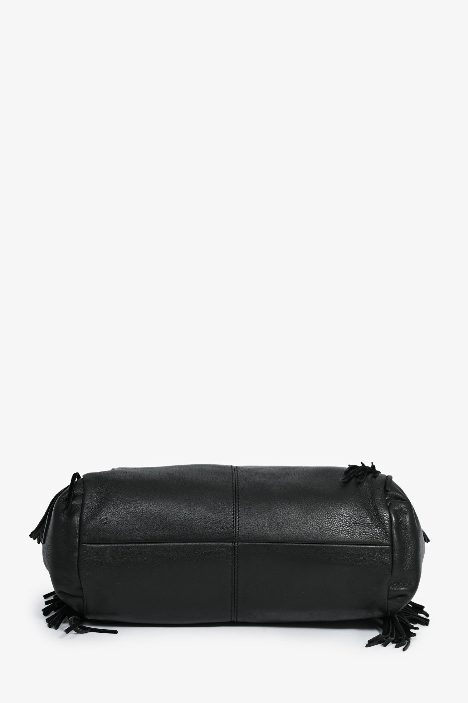 Maje Black Leather Suede Fringe Large Top Handle Bag with Strap