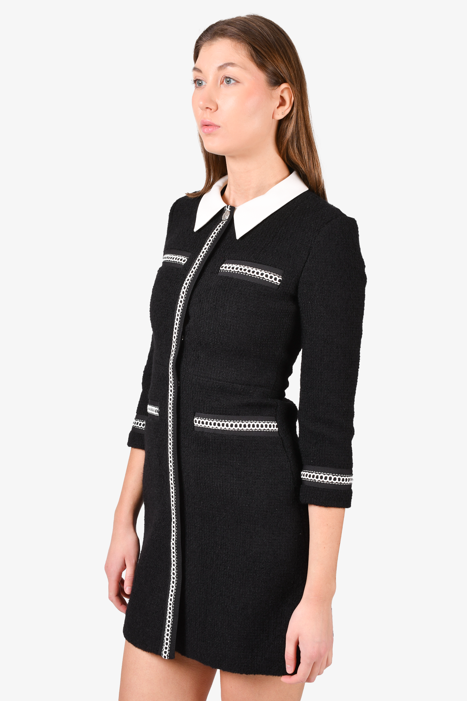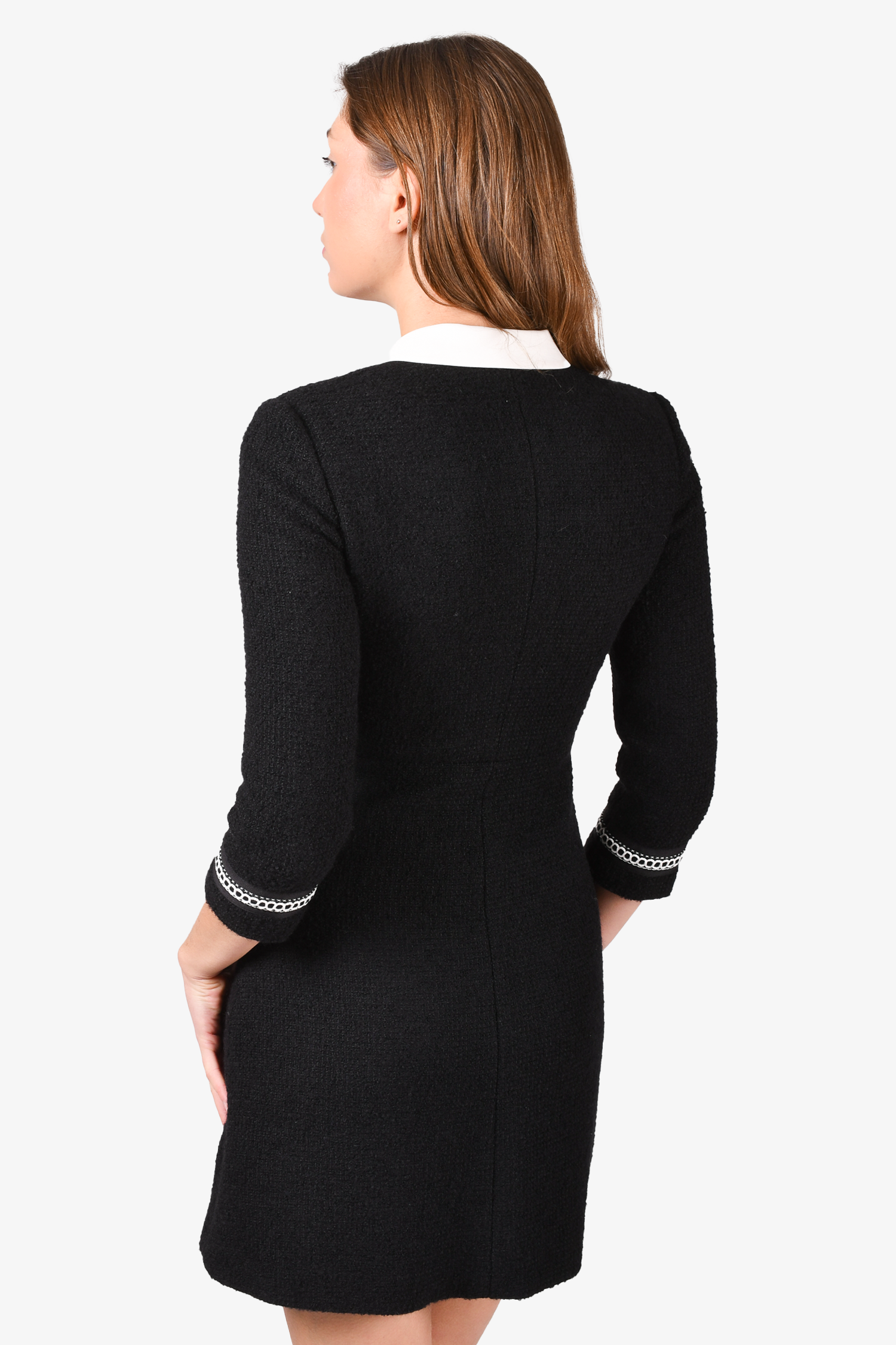 Refresh availabilityMaje Black Tweed Mid Sleeve Dress. Front snap button-up closure. Contrasting white collar. Lined. Tonal stitching.
