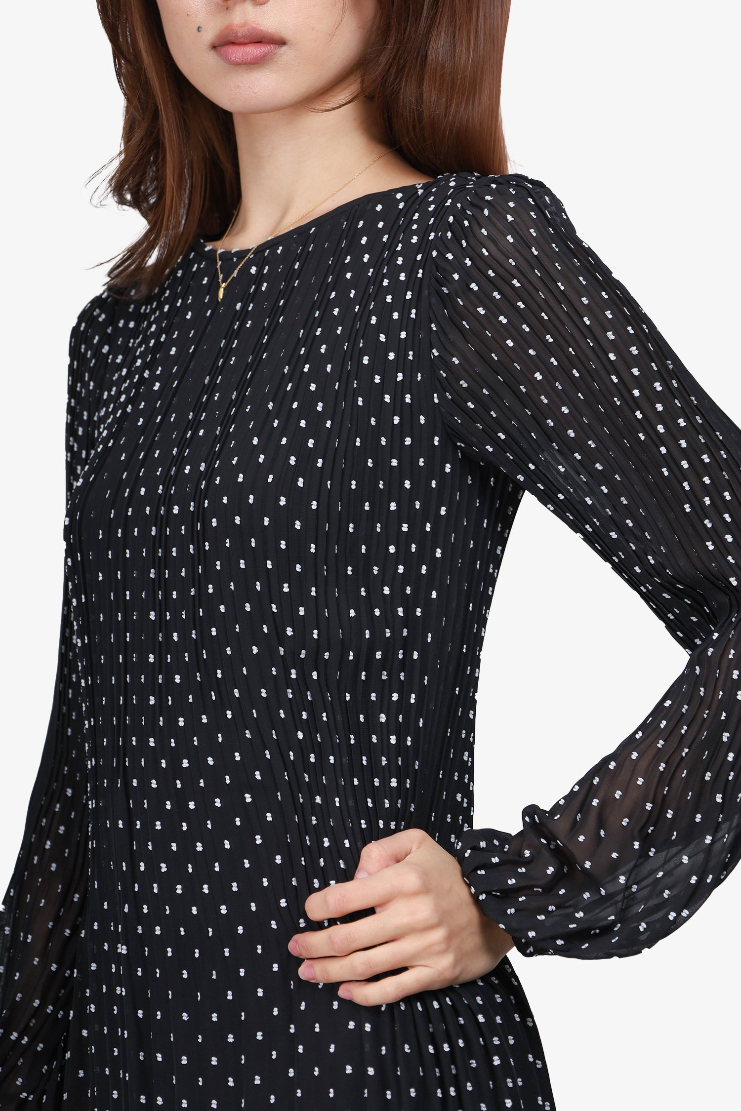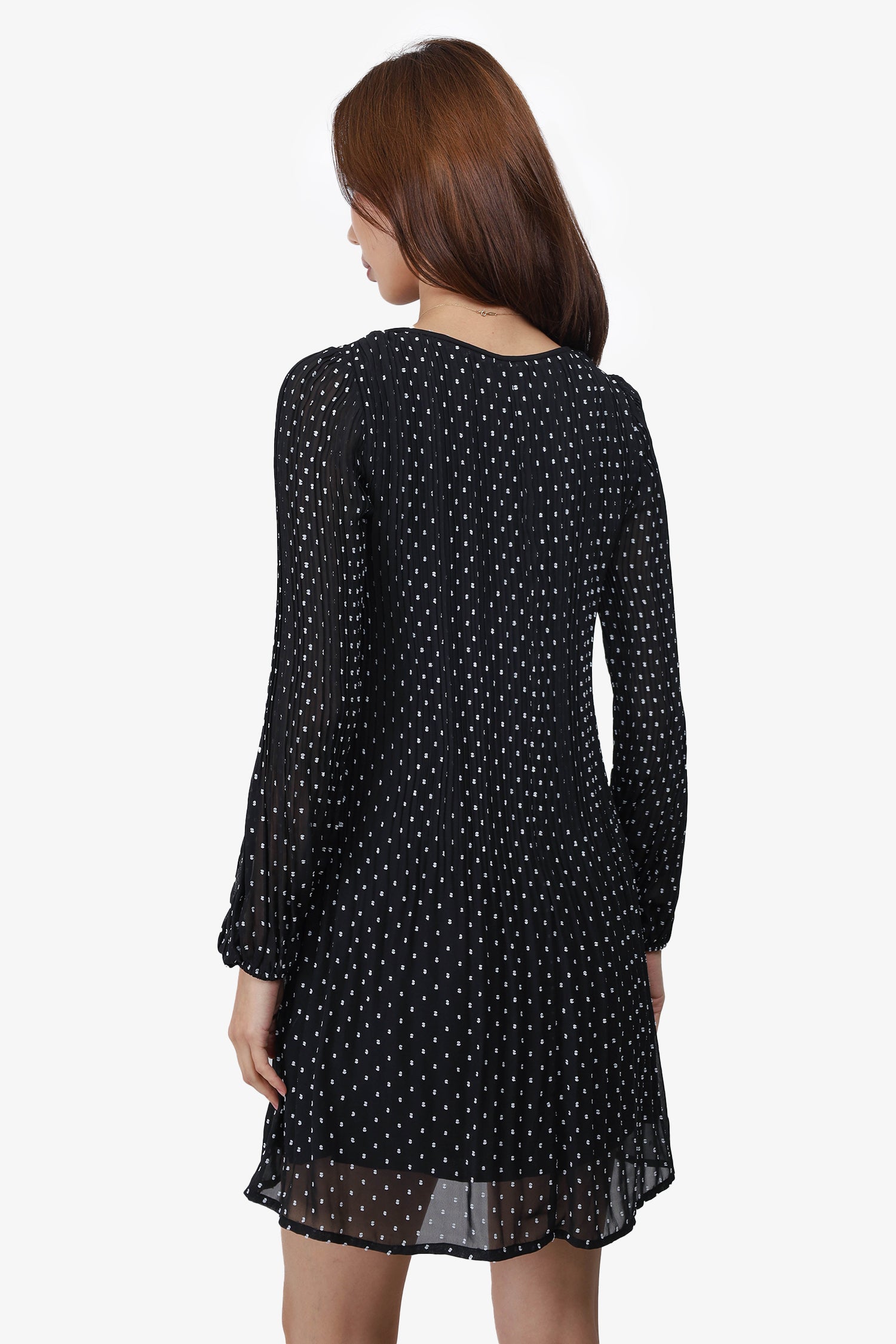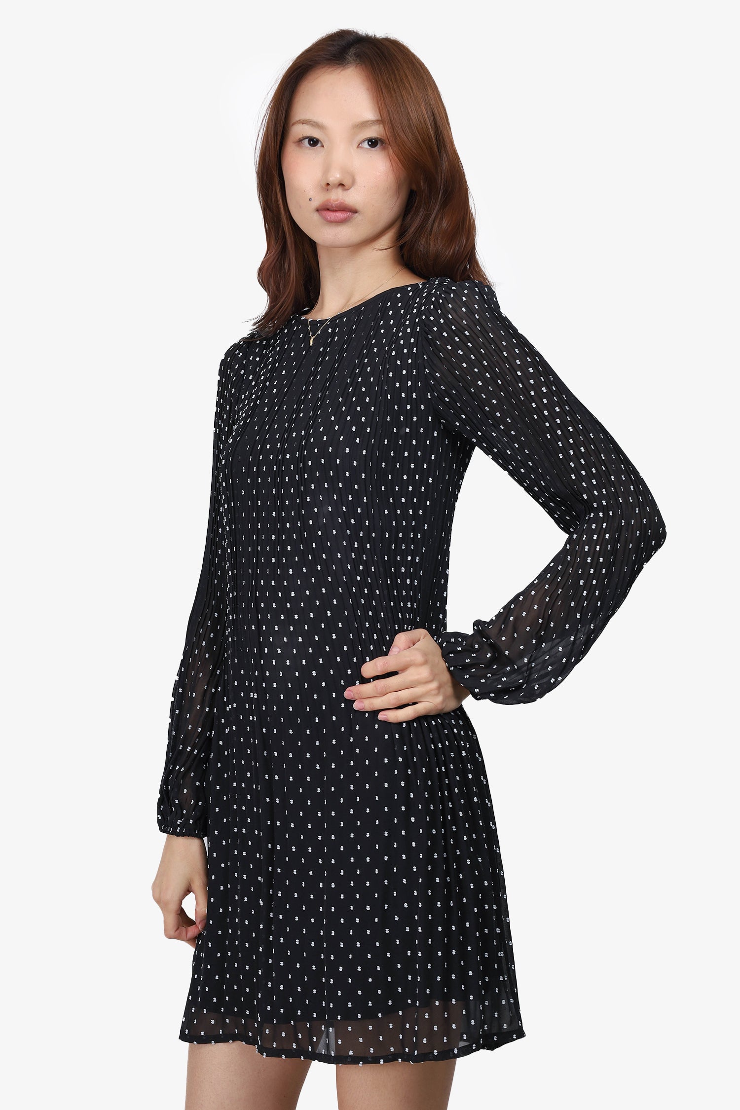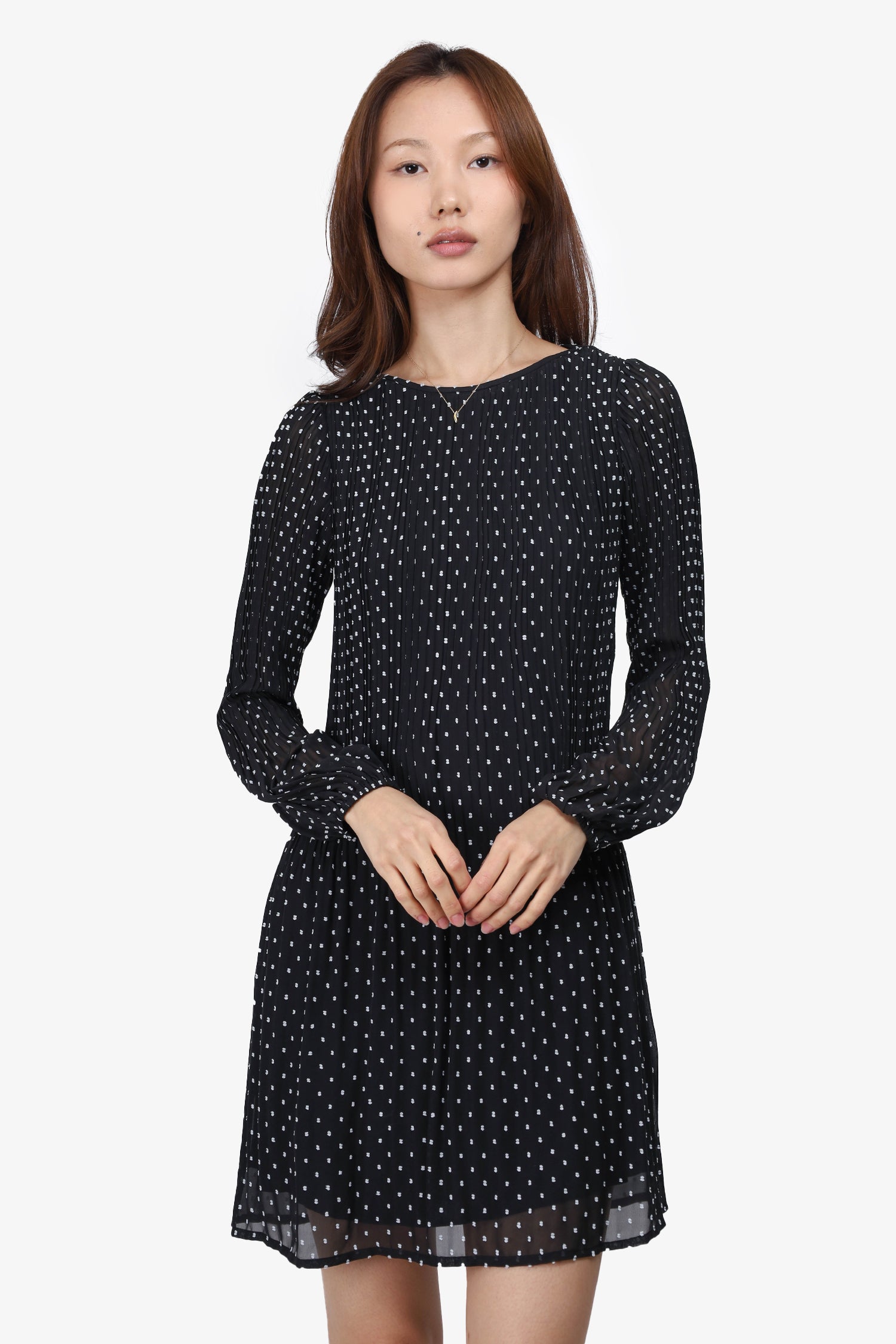 Refresh availabilityMaje Black/White Polka Dot Embroidered Long-Sleeve Dress. Pull-on. Round neckline. Lined. Tonal stitching.