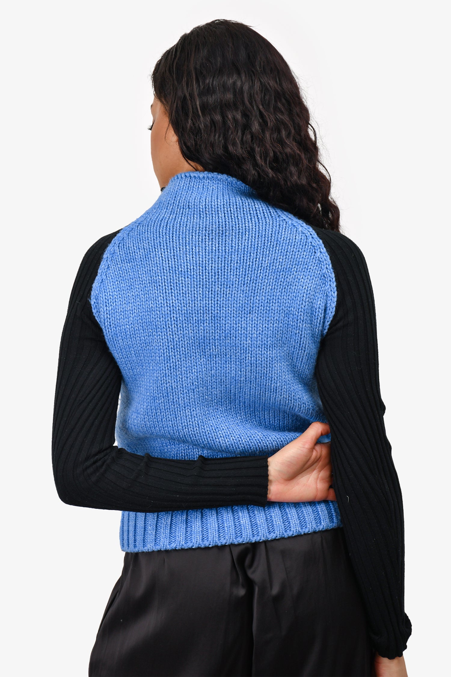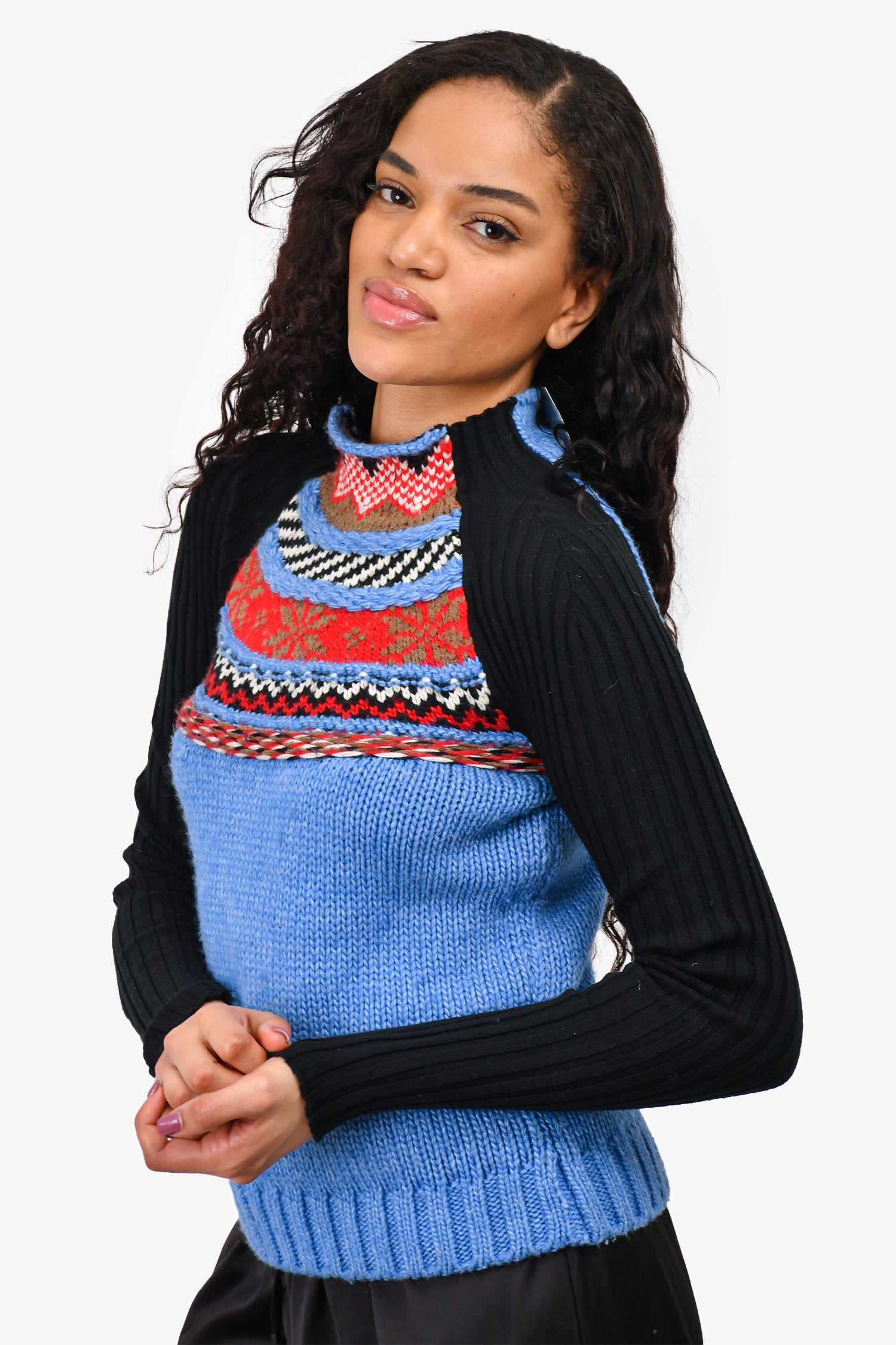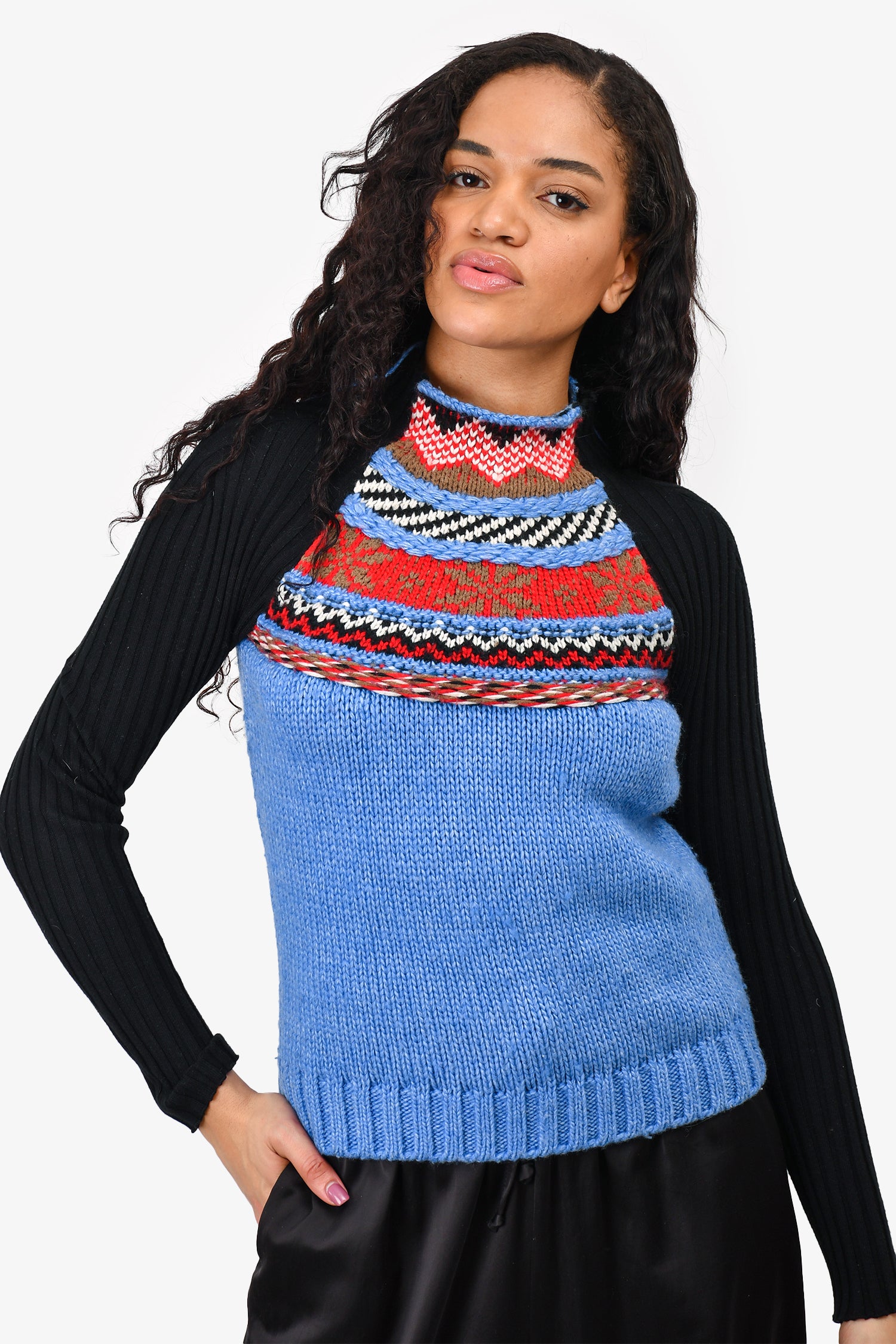 Refresh availabilityMaje Blue/Black Patterned Knit Sweater. Pull-on. Mock neck.