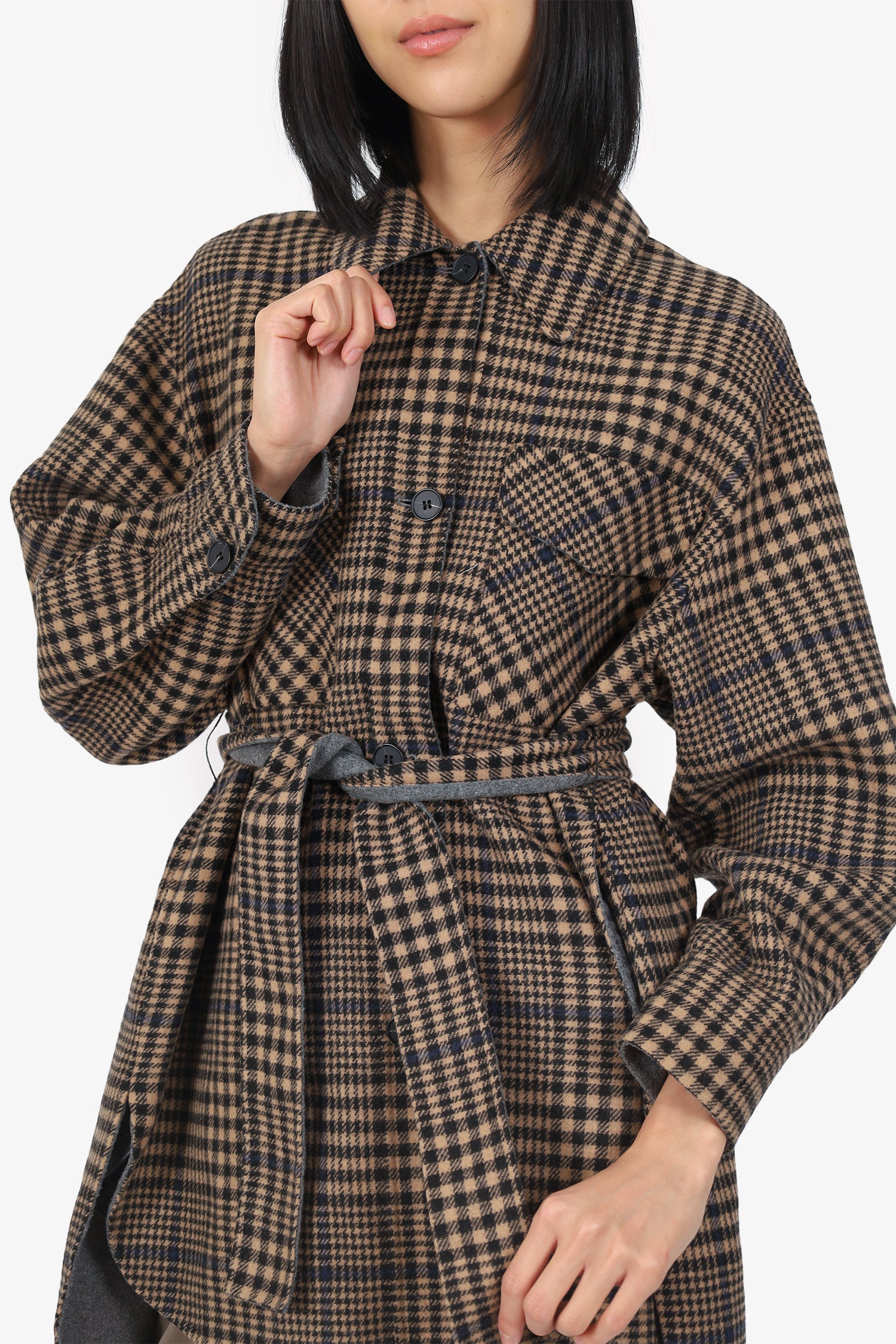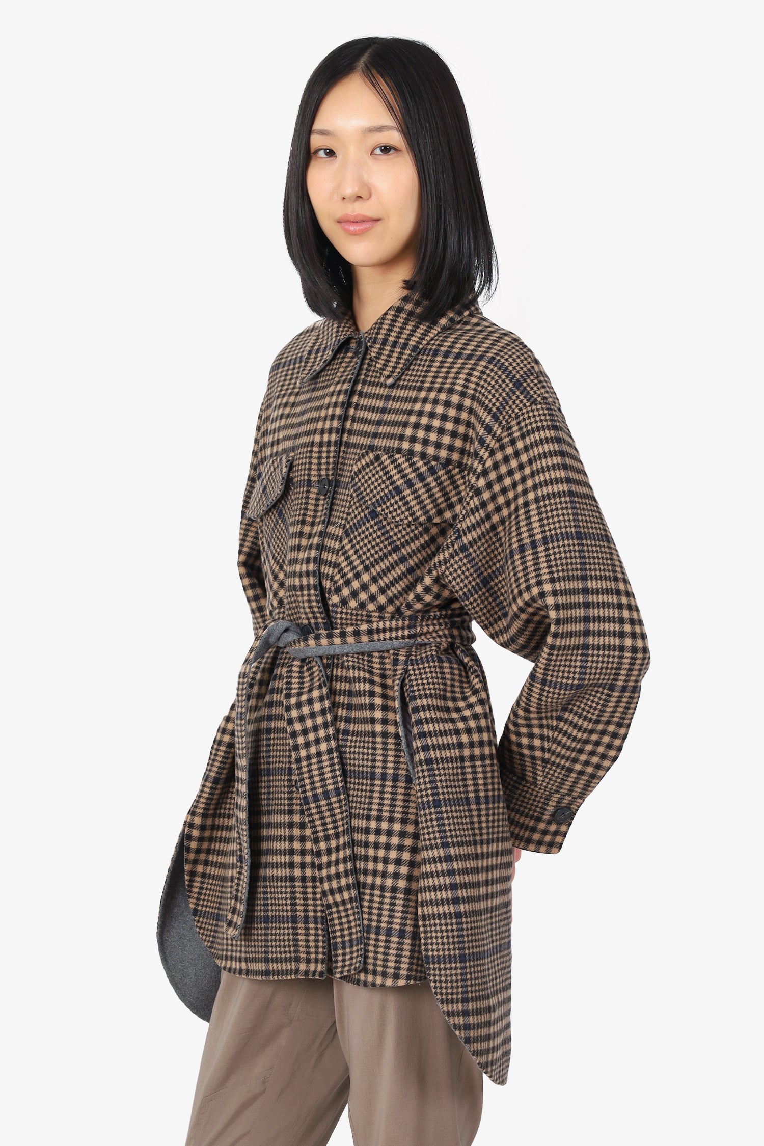Maje Brown/Black Gavino Plaid Belted Coat Size 2