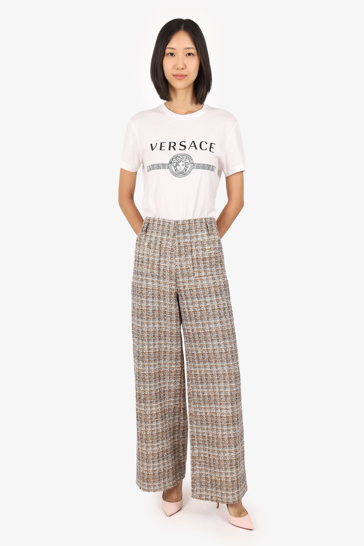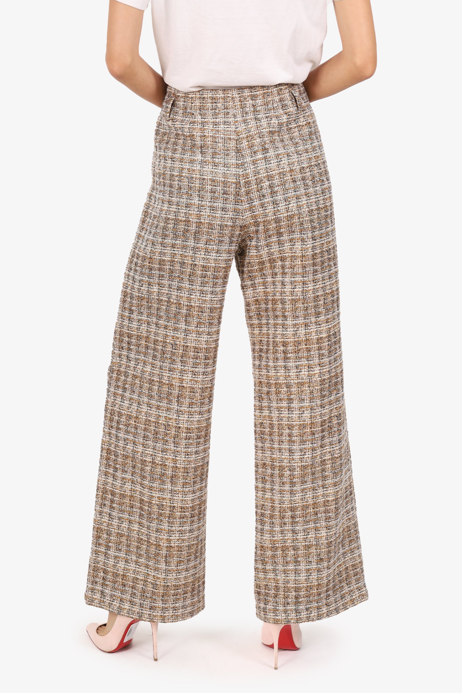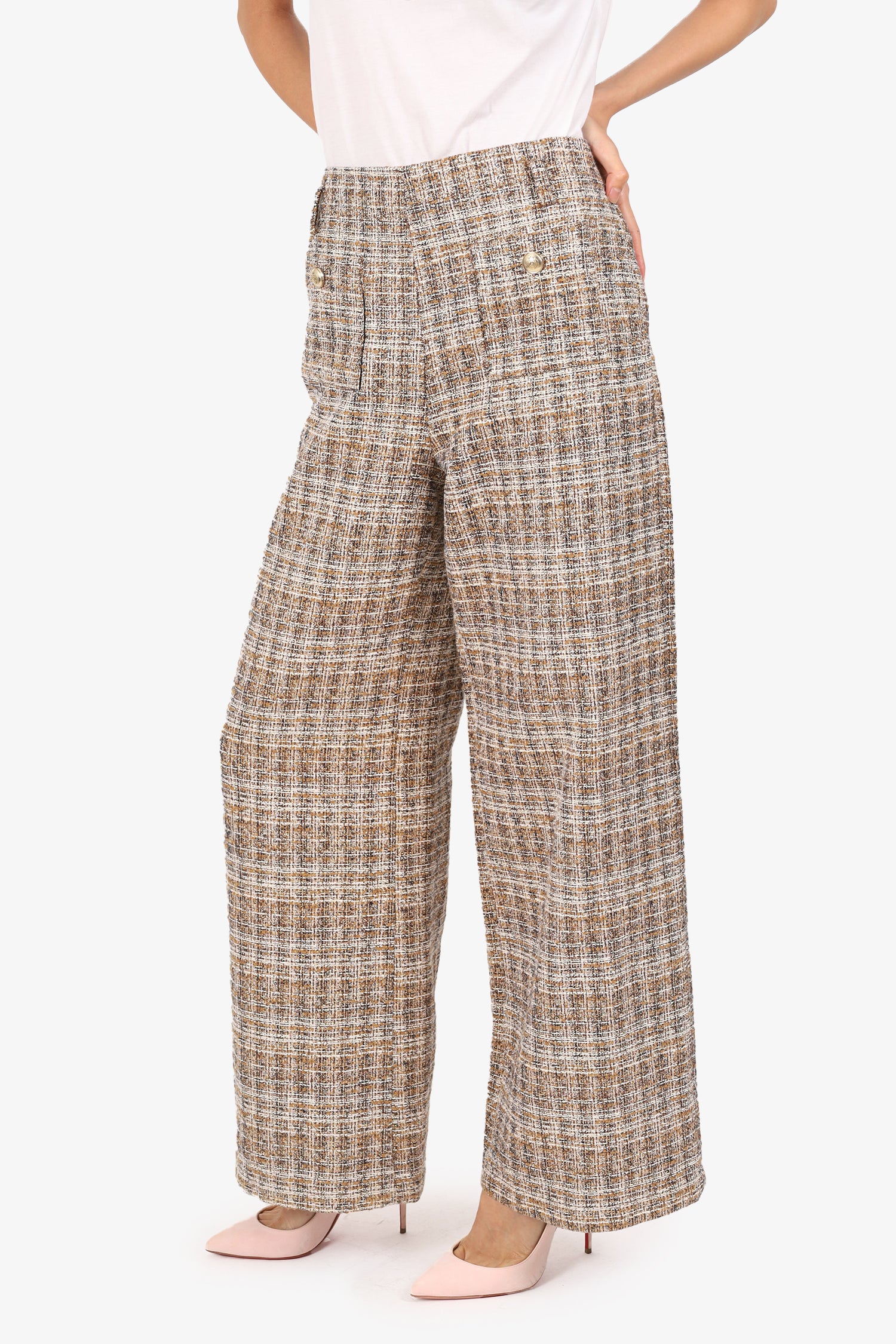 Maje Brown/Gold Metallic Tweed Wide Leg Pants Size 10