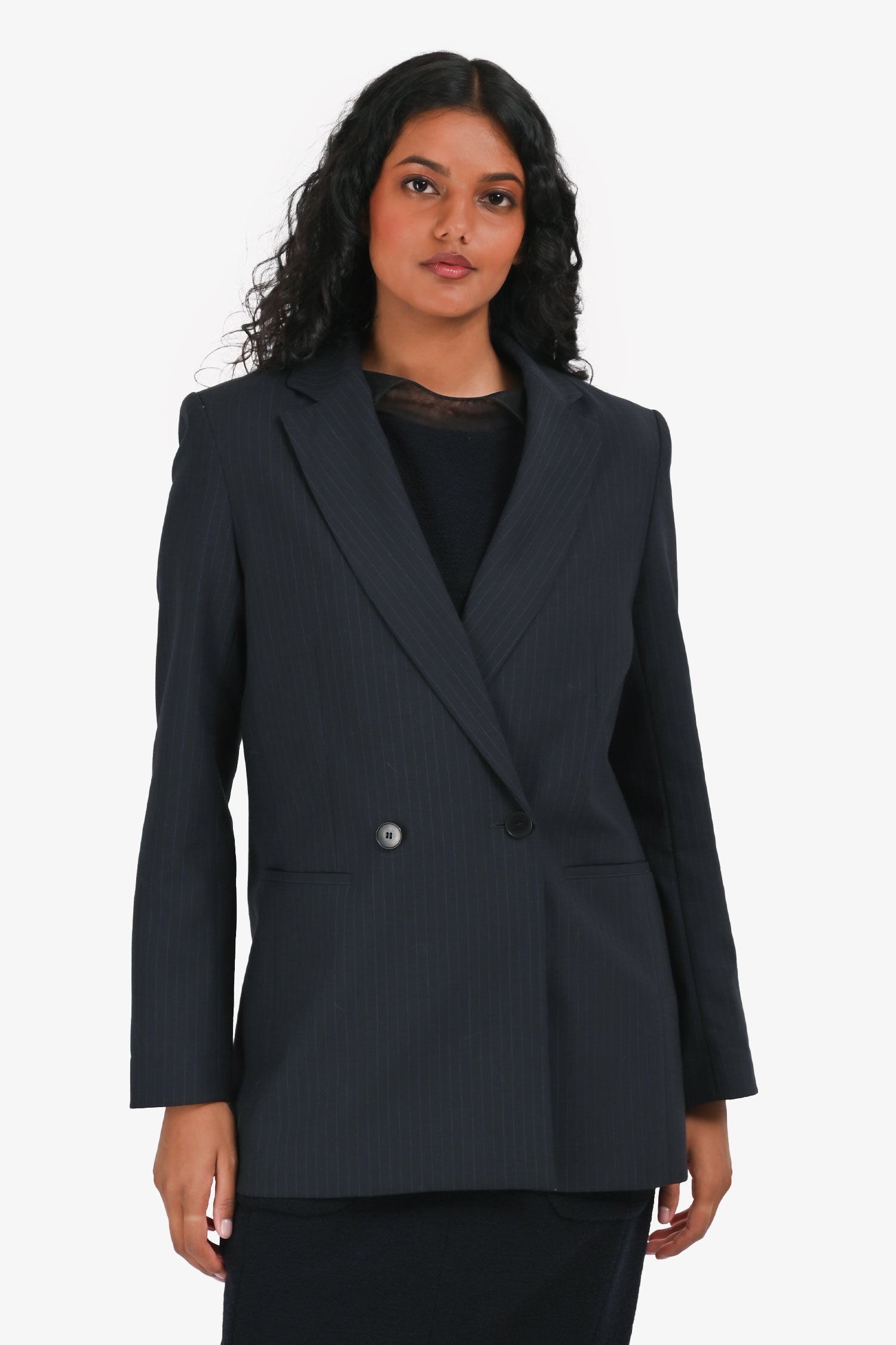 Maje Navy Pin Stripe Double Breasted Blazer Size 38