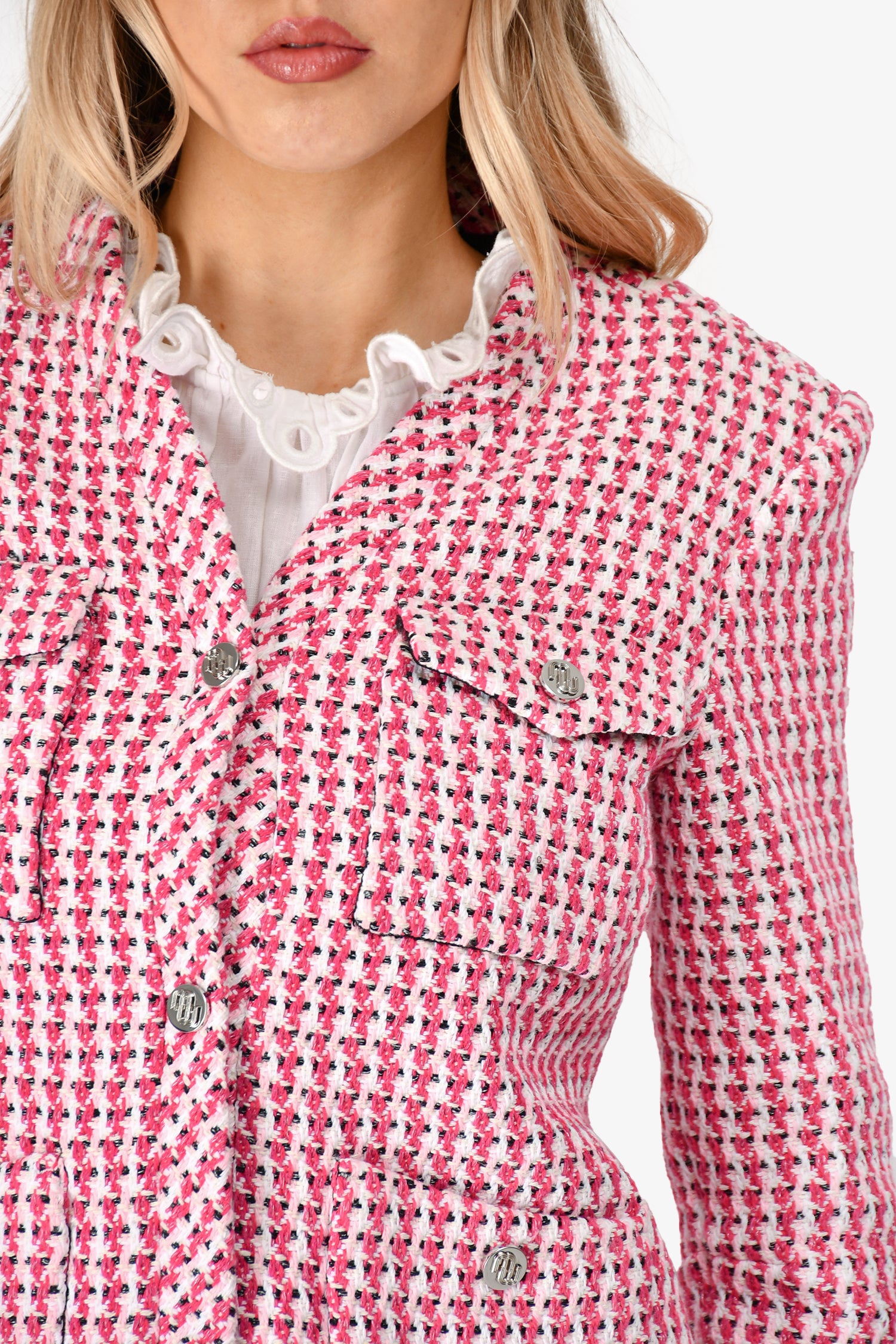 Refresh availabilityMaje Pink Tweed Pocket Detailed Jacket. Front button-down closure. 4 front slip pockets. Lined. Silver-toned hardware. Tonal stitching.