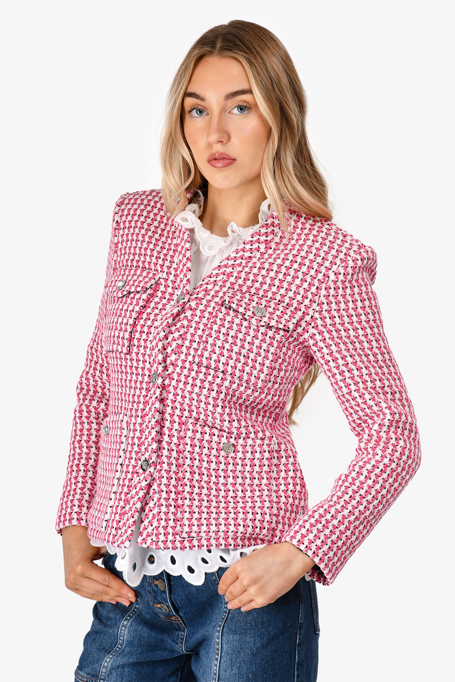 Maje Pink Tweed Pocket Detailed Jacket Size 36