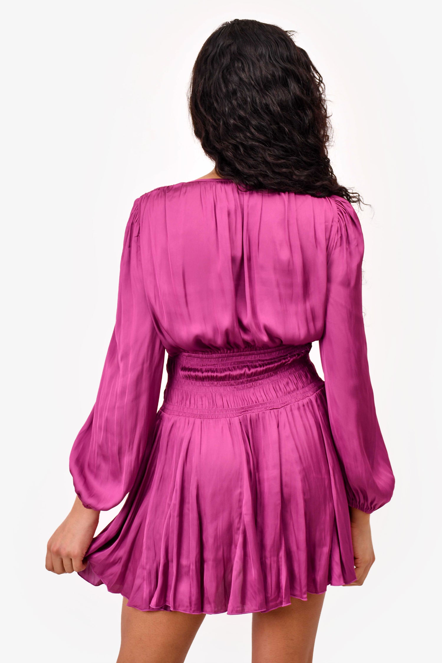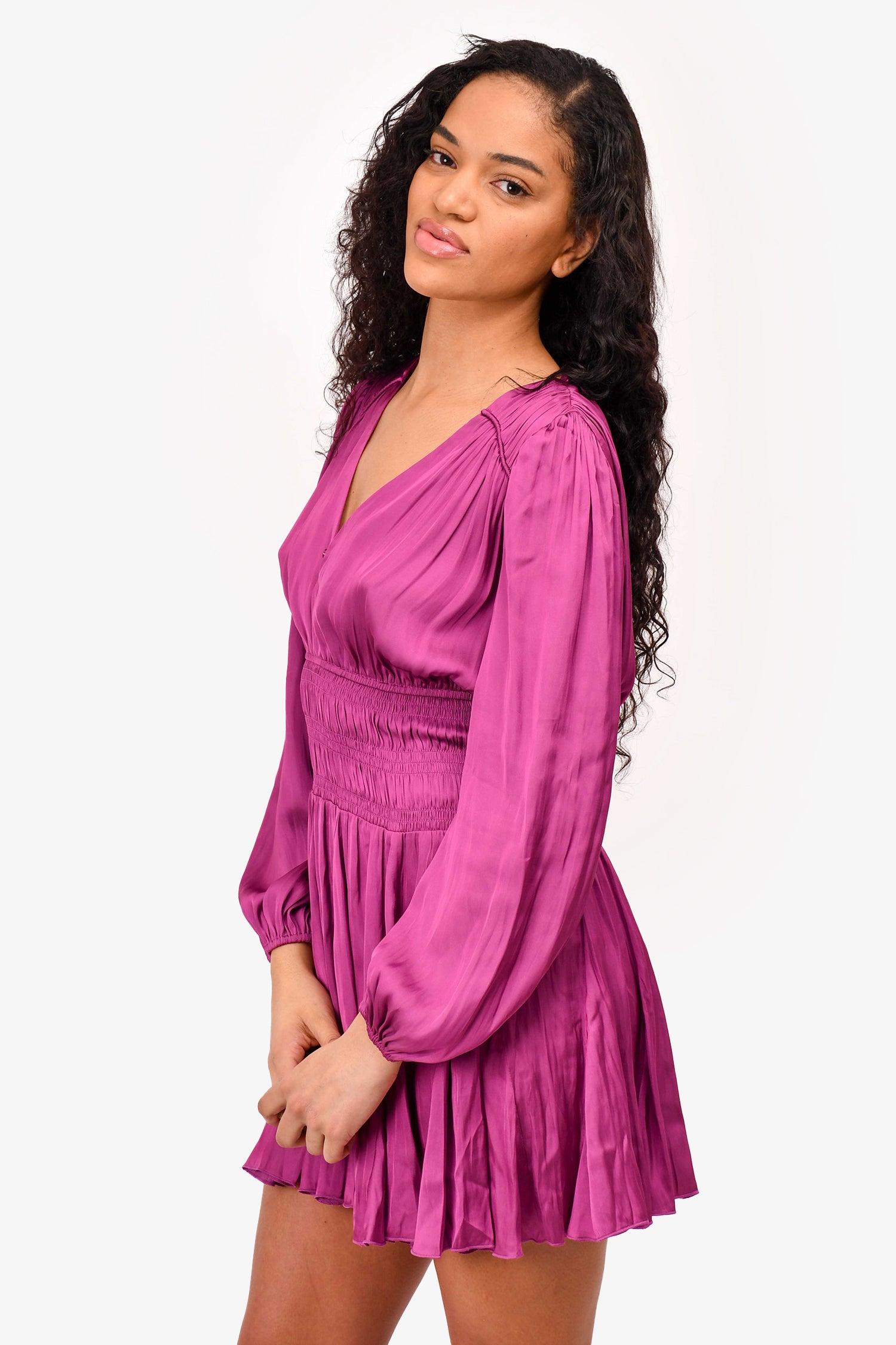 Refresh availabilityMaje Purple Pleated Dress. Pull-over design with single button closure at neckline. Elasticized cuffs. Tonal stitching.