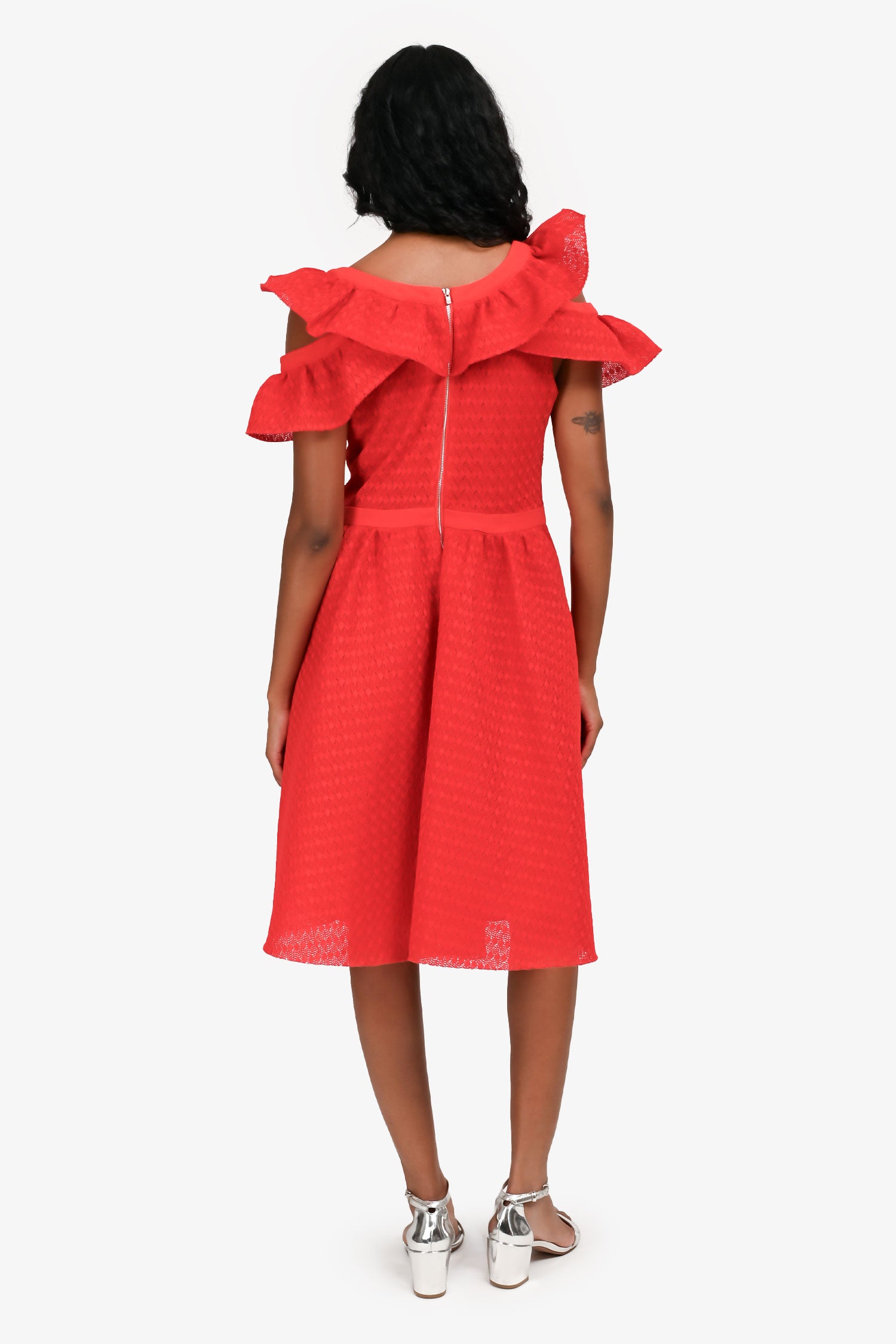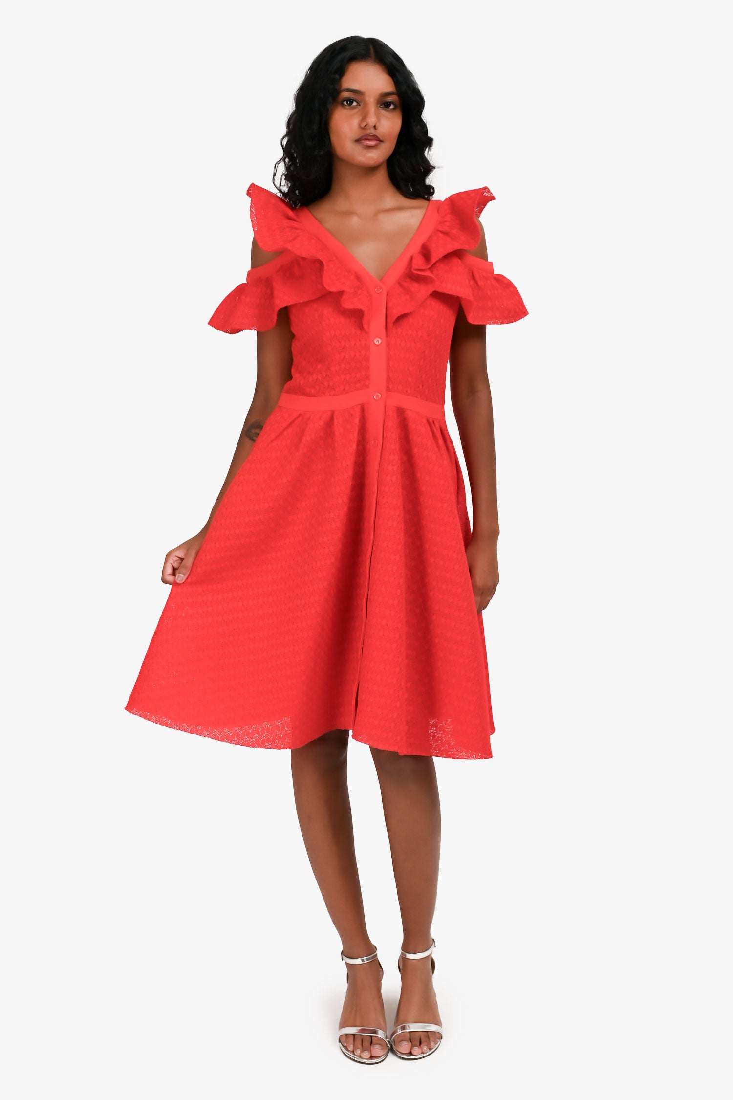 Maje Red Lace Ruffle Detail V Neck Sleeveless Dress Size 3
