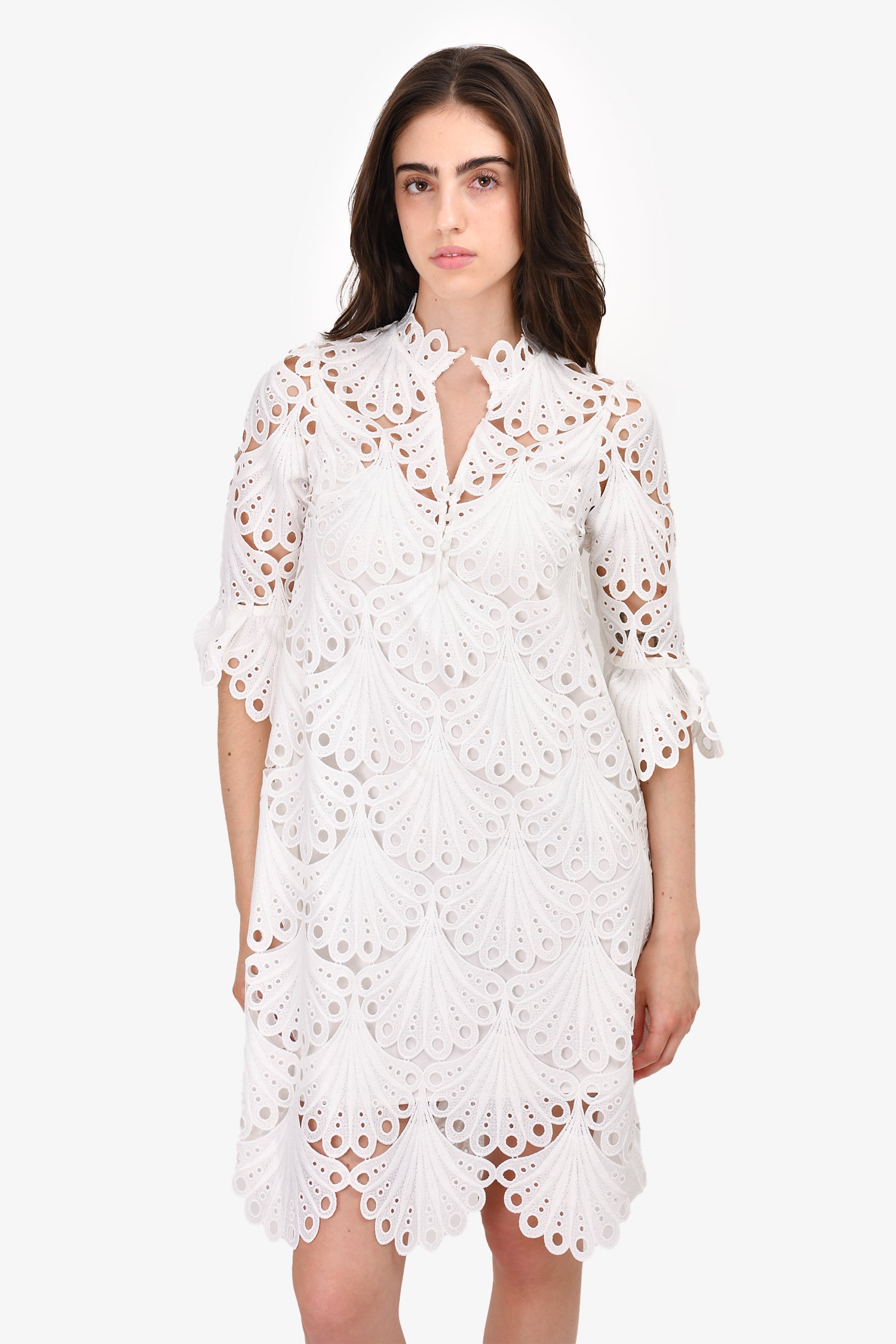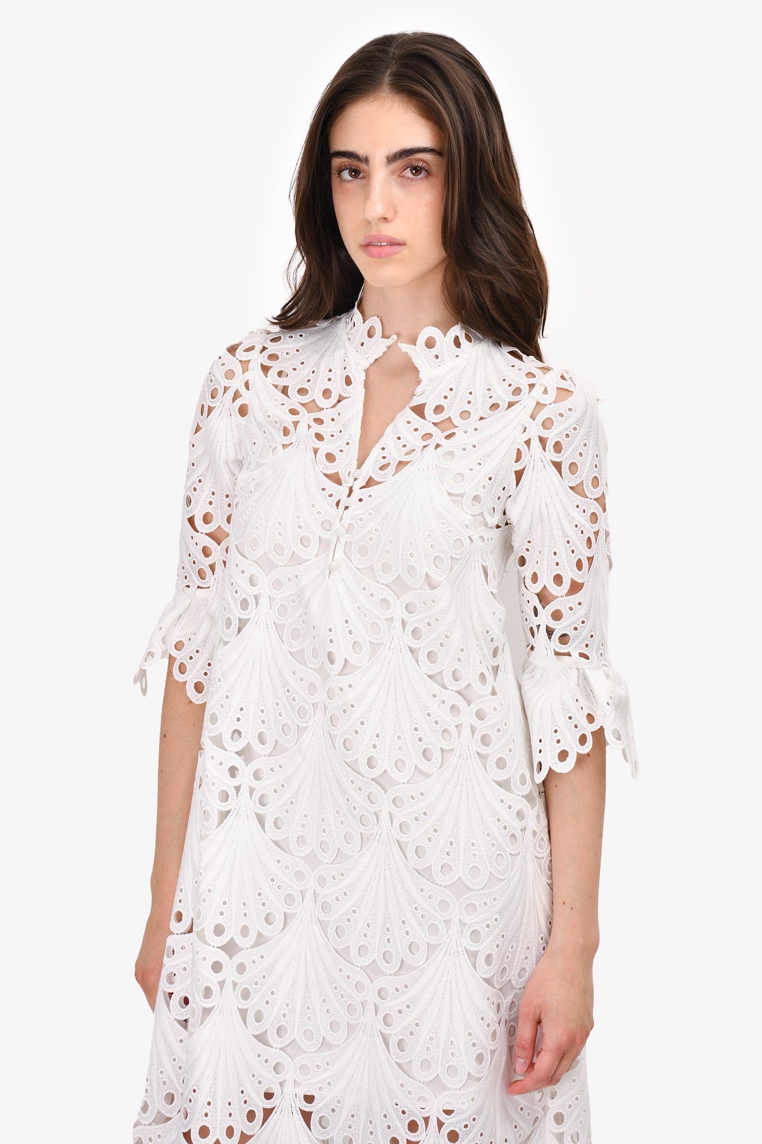 Maje White Crochet 3/4 Sleeve Dress with Slip Size M