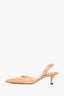Manolo Blahnik Beige Leather Slingback Heels. Slip-on. Pointed toe. Curved kitten heel. Tonal stitching.