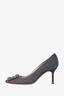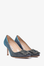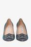 Manolo Blahnik Blue Iridescent Shimmer Hangisi 70 Heels Size 36