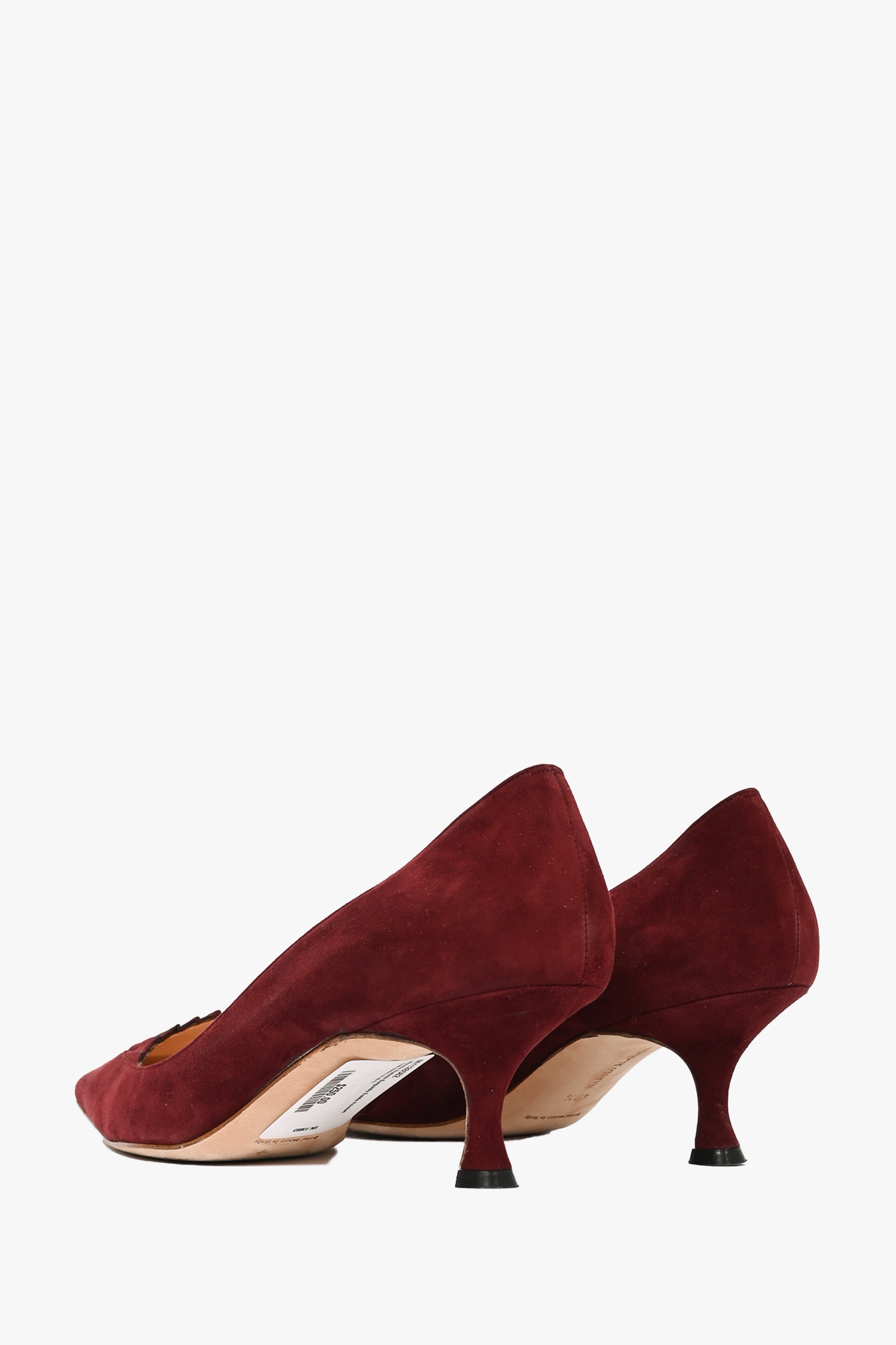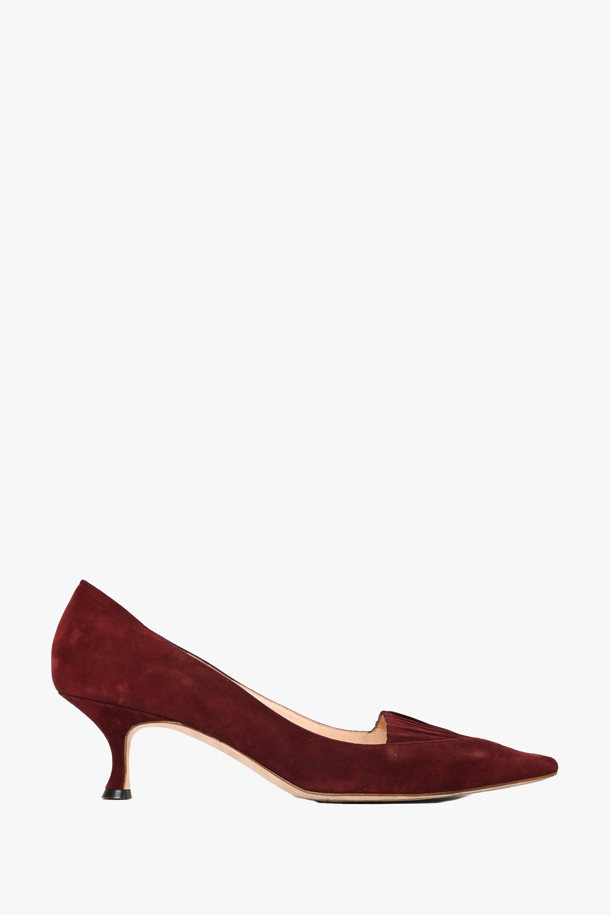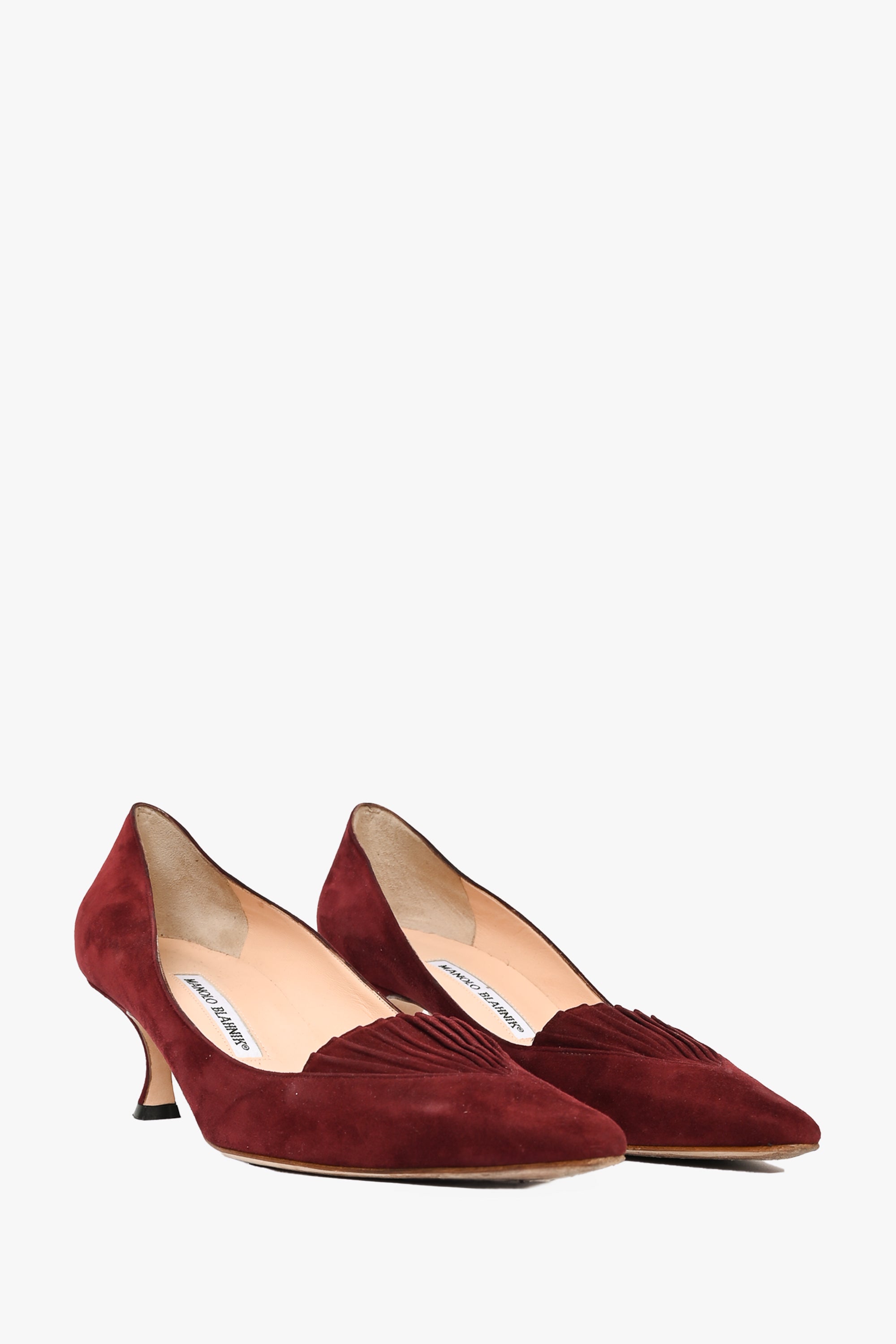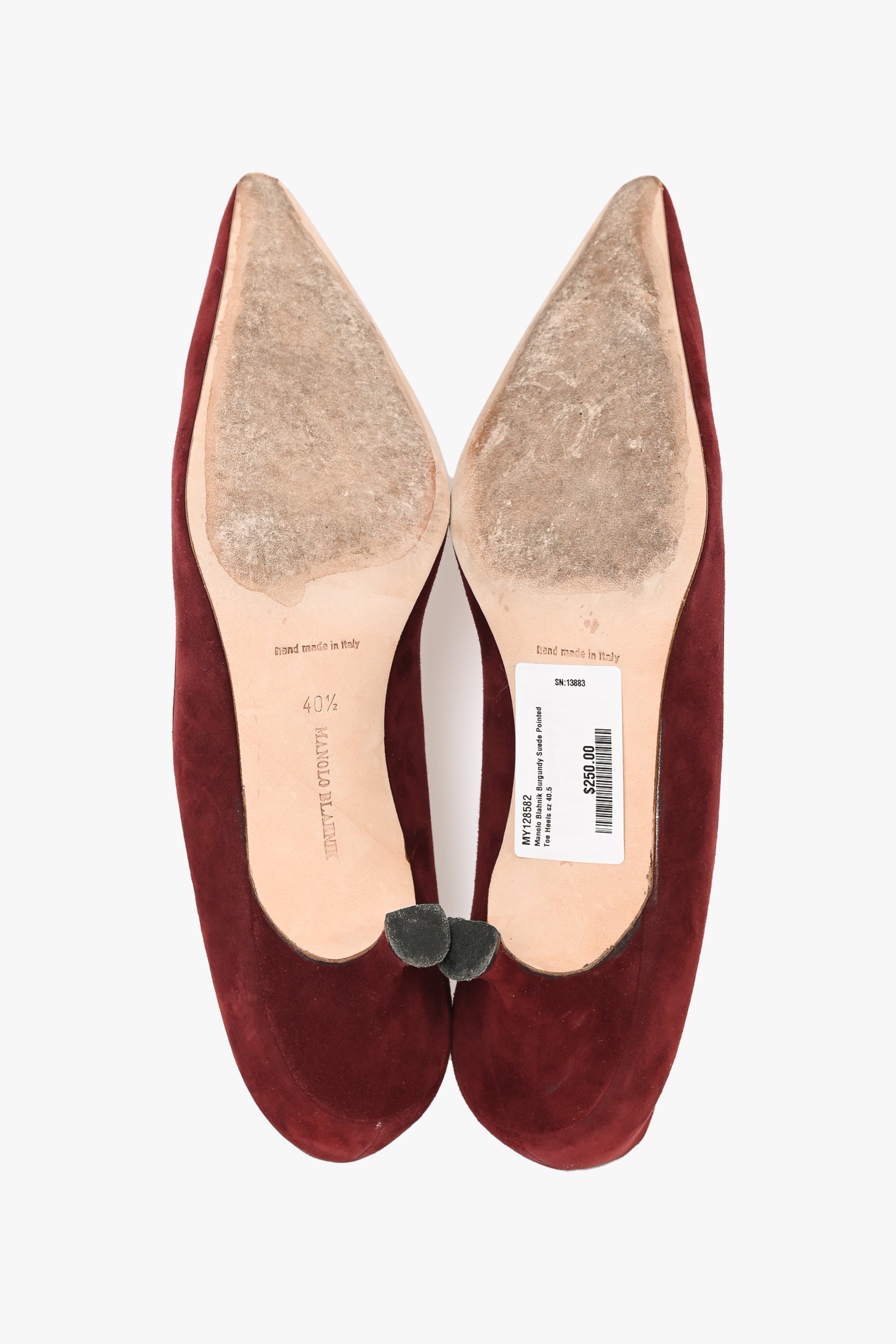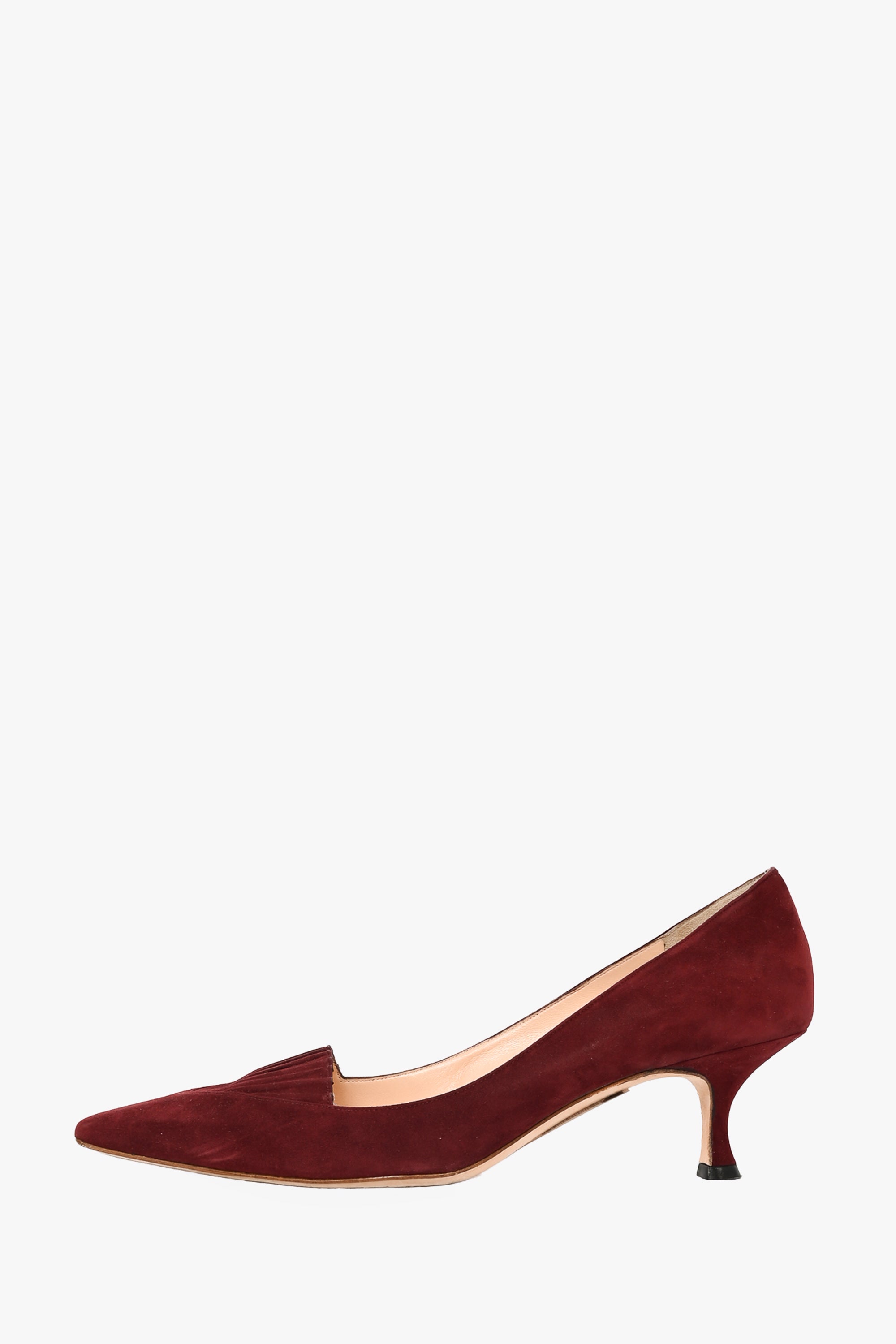 Refresh availabilityManolo Blahnik Burgundy Suede Pointed Toe Heels. Pointed toe.