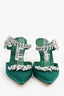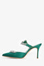 Manolo Blahnik Green Satin Crystal 'Lurum' Mules Size 38.5