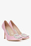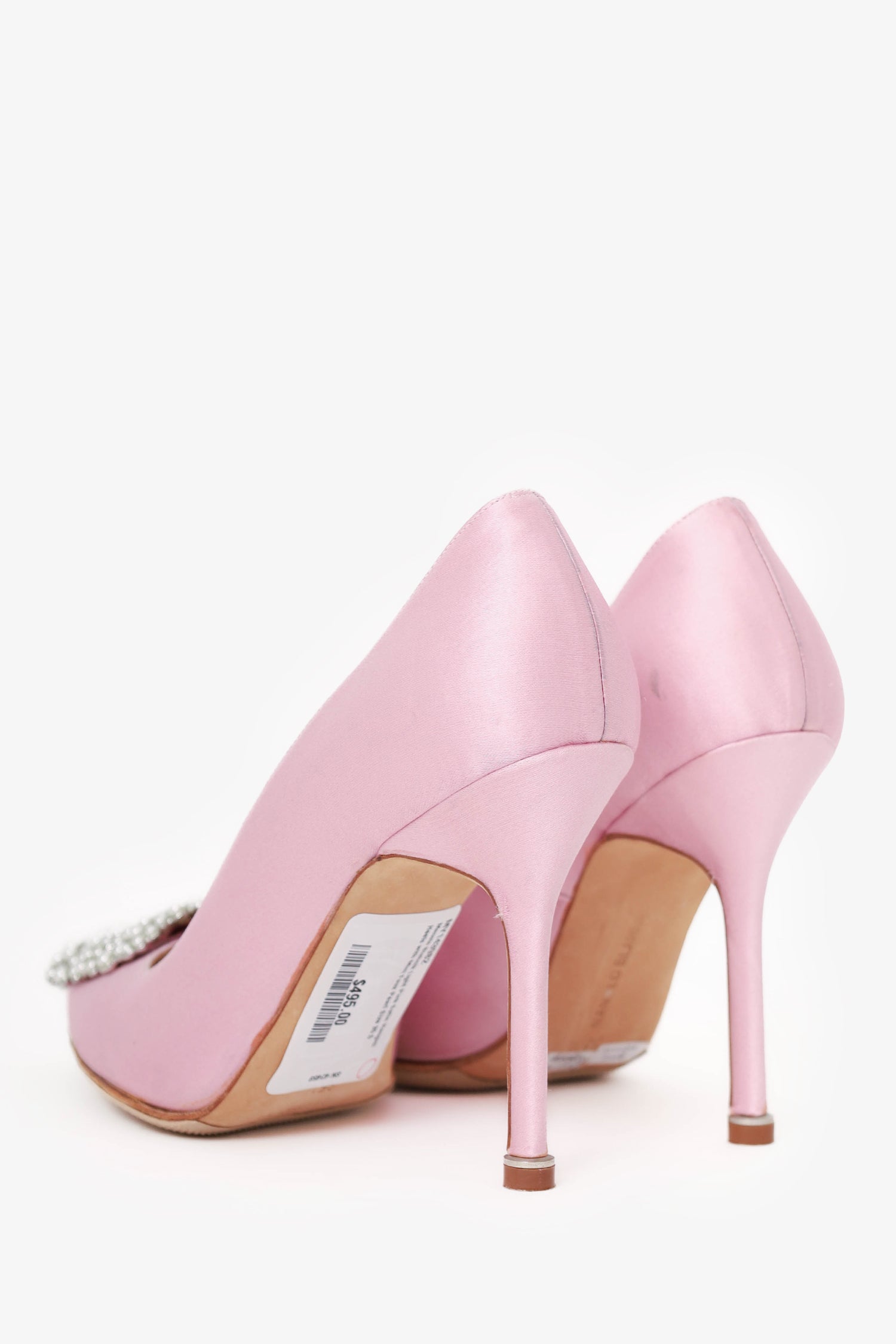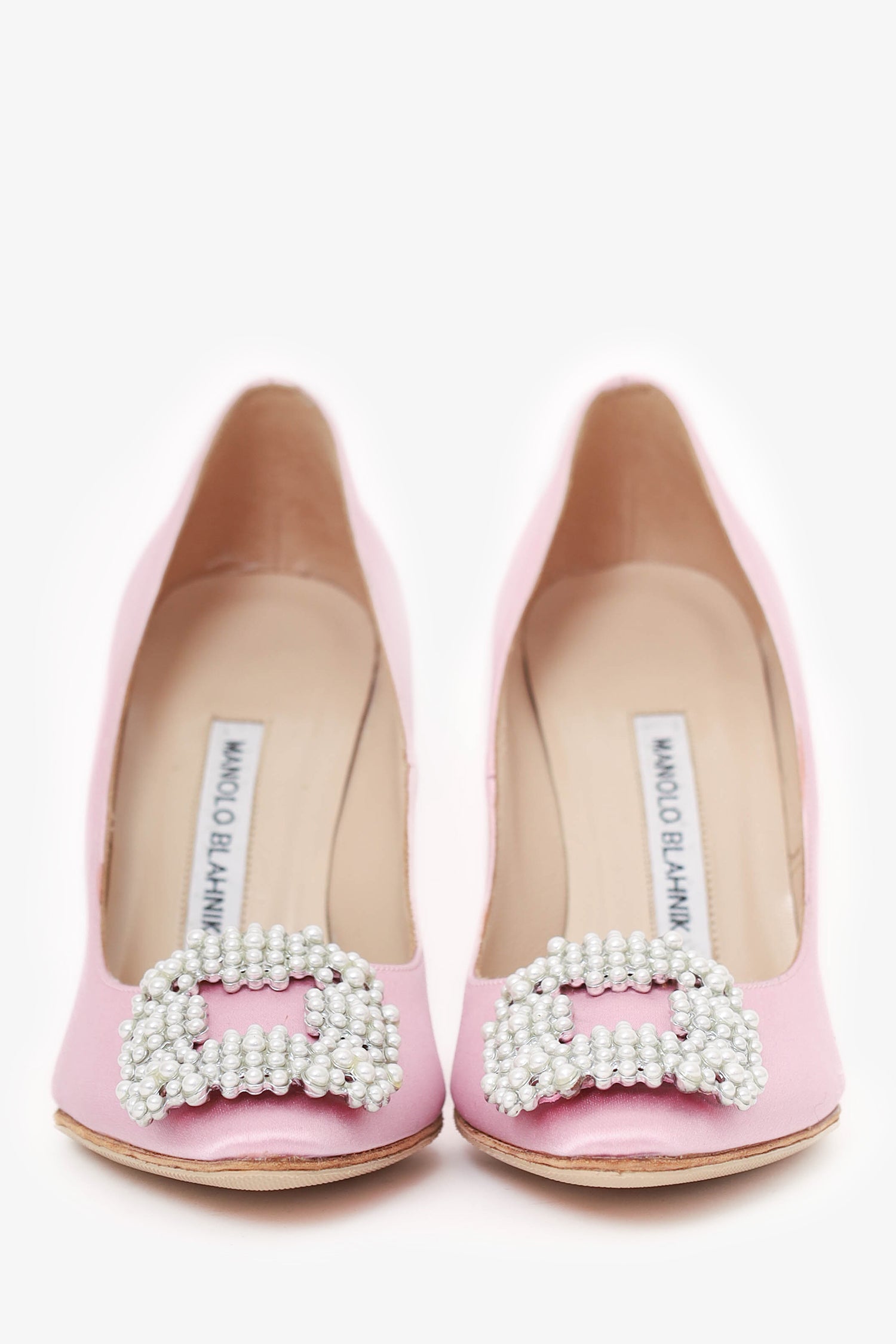 Manolo Blahnik Light Pink Satin Hangisi Heels with Mini Faux Pearl Size 35.5