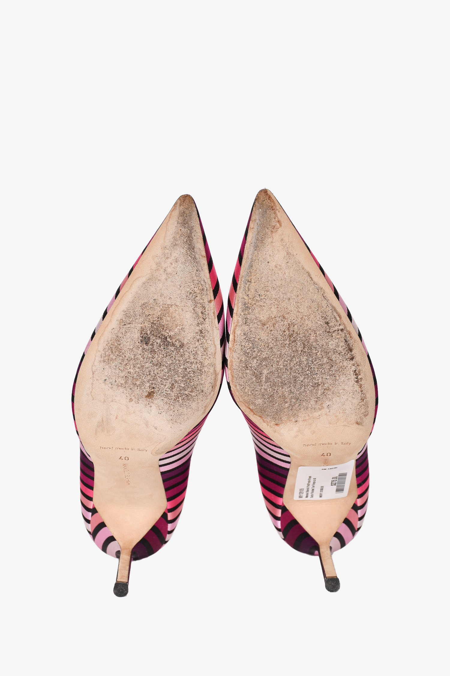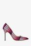 Manolo Blahnik Pink/Purple Striped Satin Pointed Toe Pumps Size 40