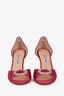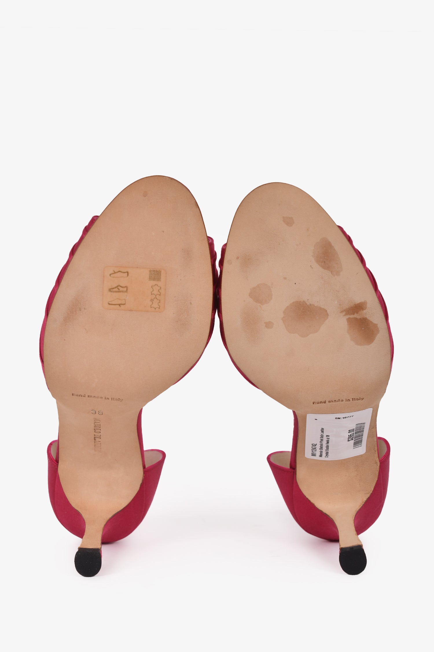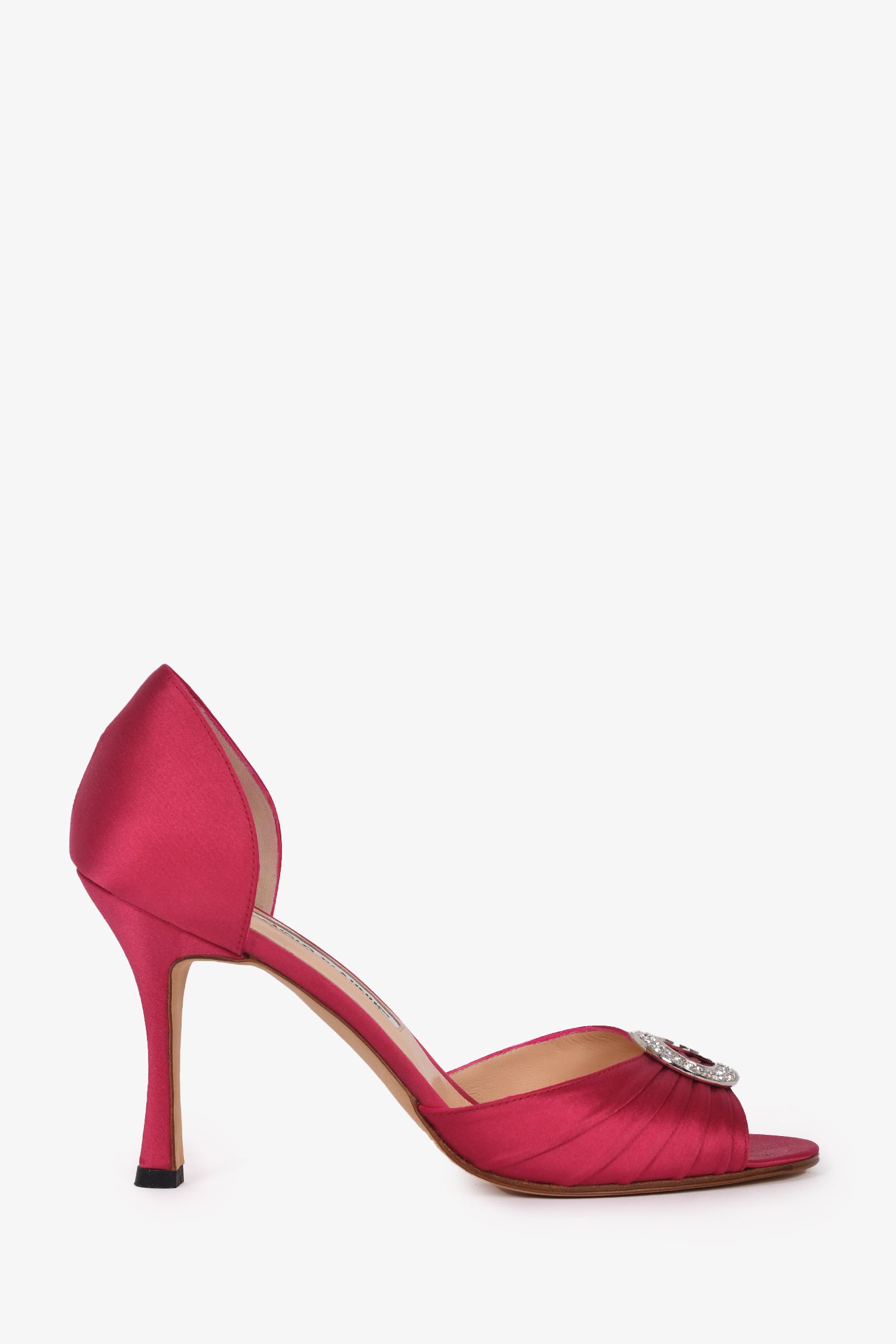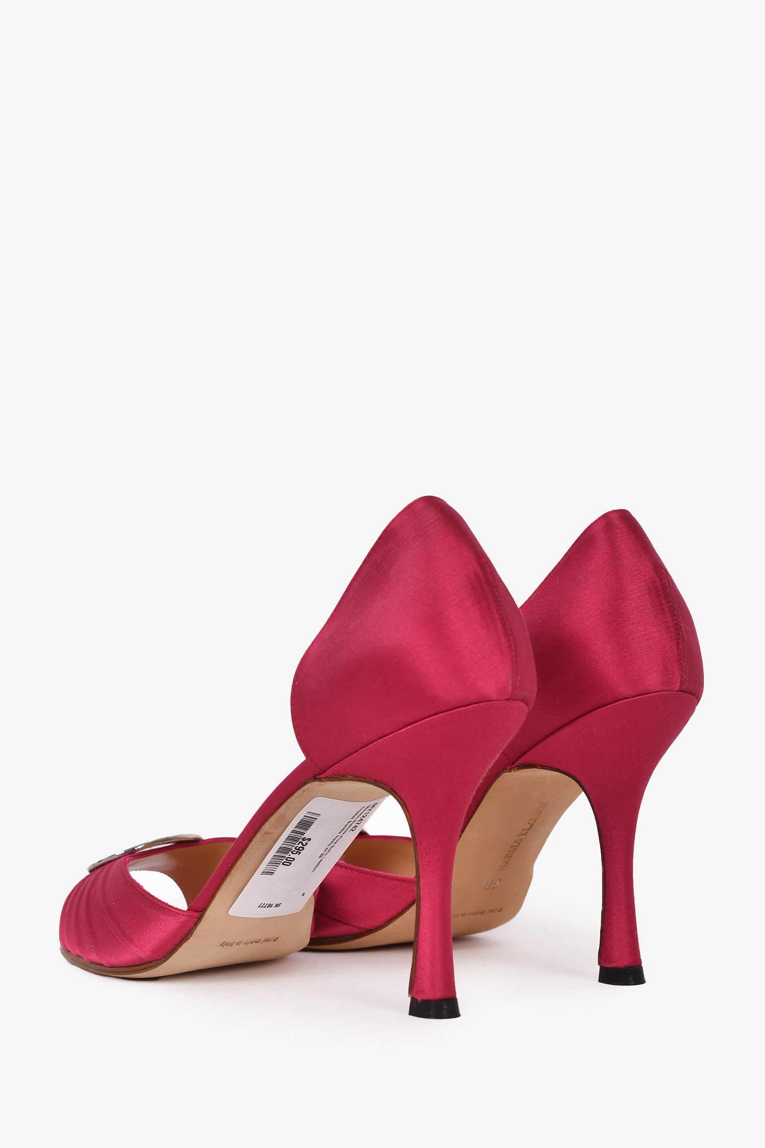 Manolo Blahnik Dark Pink Satin Leather Crystal Buckle Heels Size 38