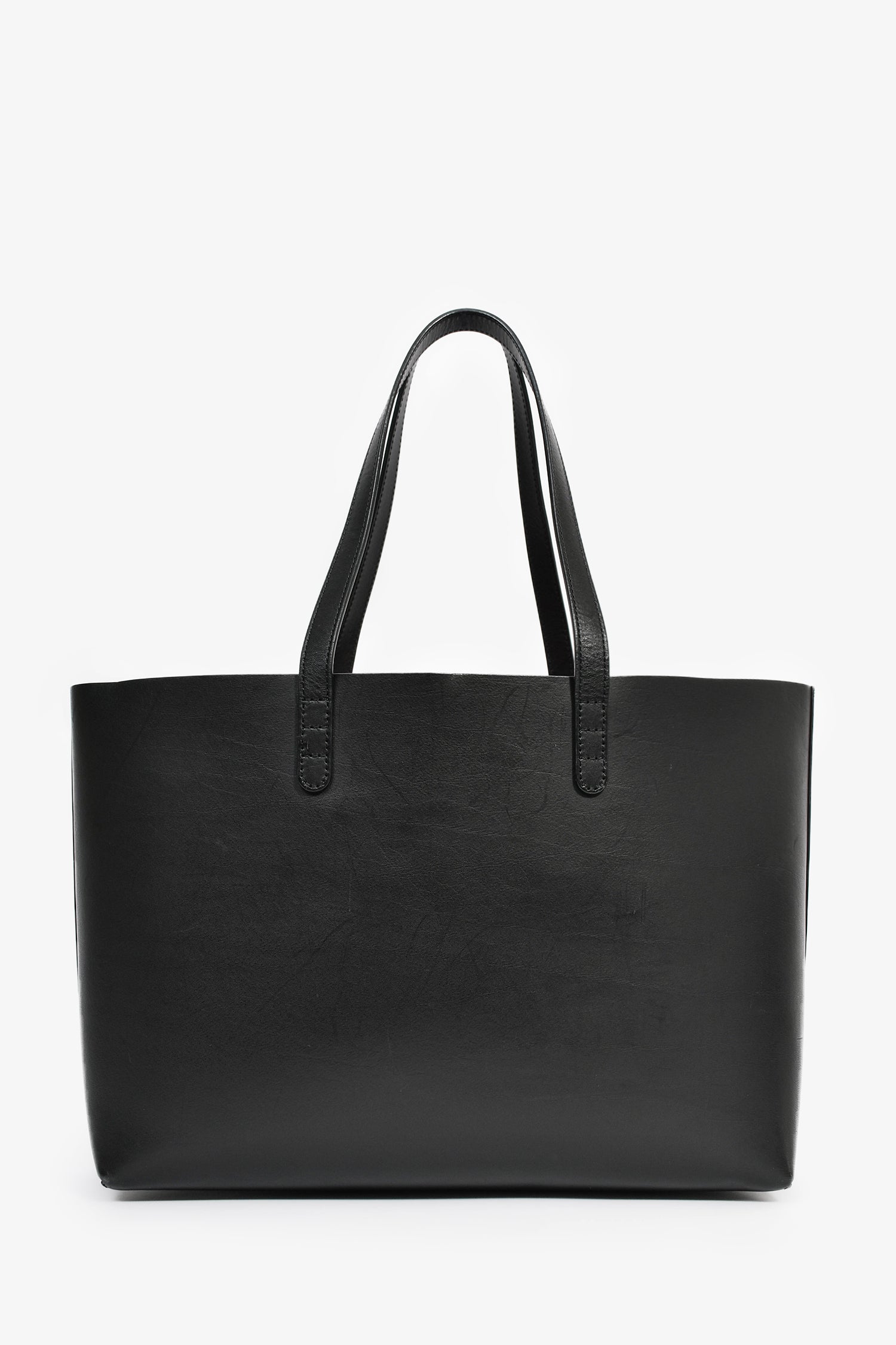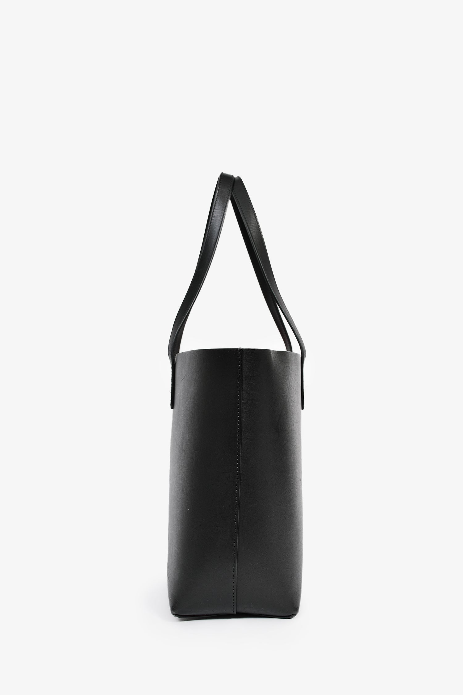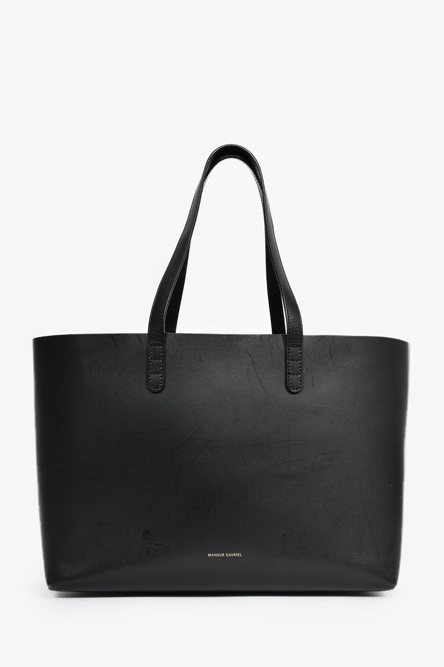 Refresh availabilityMansur Gavriel Black/Red Leather Tote Bag. Dual handles. Red leather interior. Open interior.