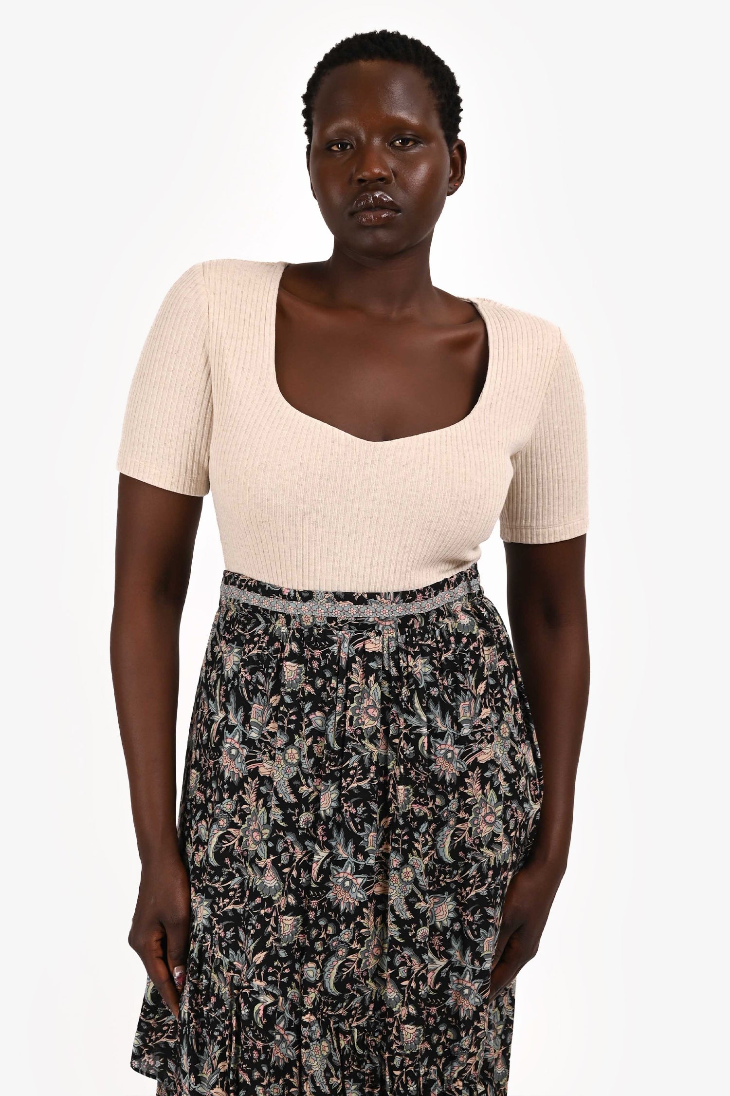 Mara Hoffman Cream Ribbed Bodysuit Size M