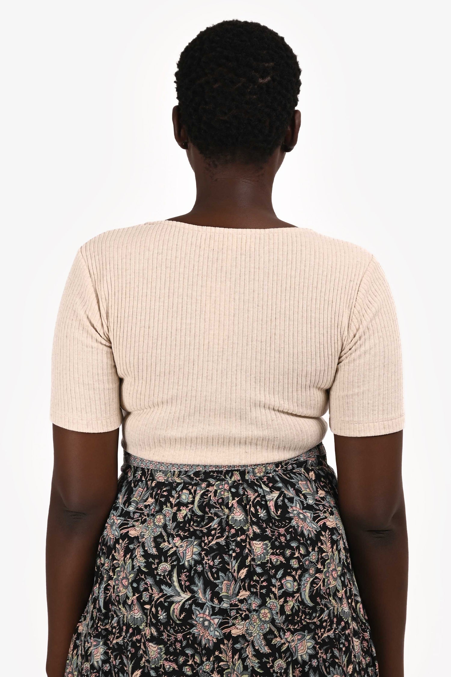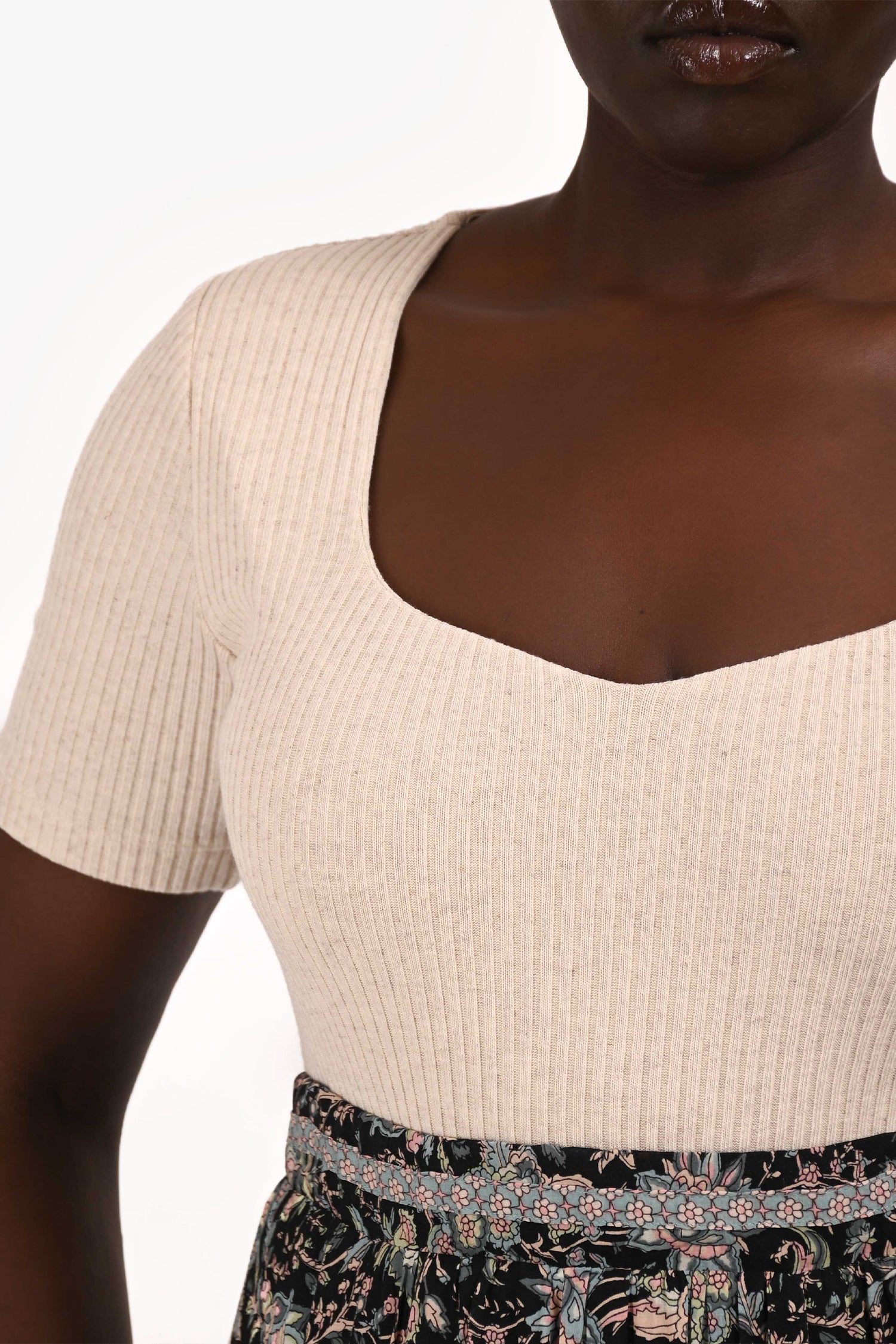 Refresh availabilityMara Hoffman Cream Ribbed Bodysuit. Short sleeves. Ribbed stretch fabric. Snap button closure at base. Tonal stitching.