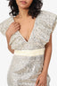 Marchesa Notte Navy Strapless Lined Mesh Gown with Sequin Belt Size 6