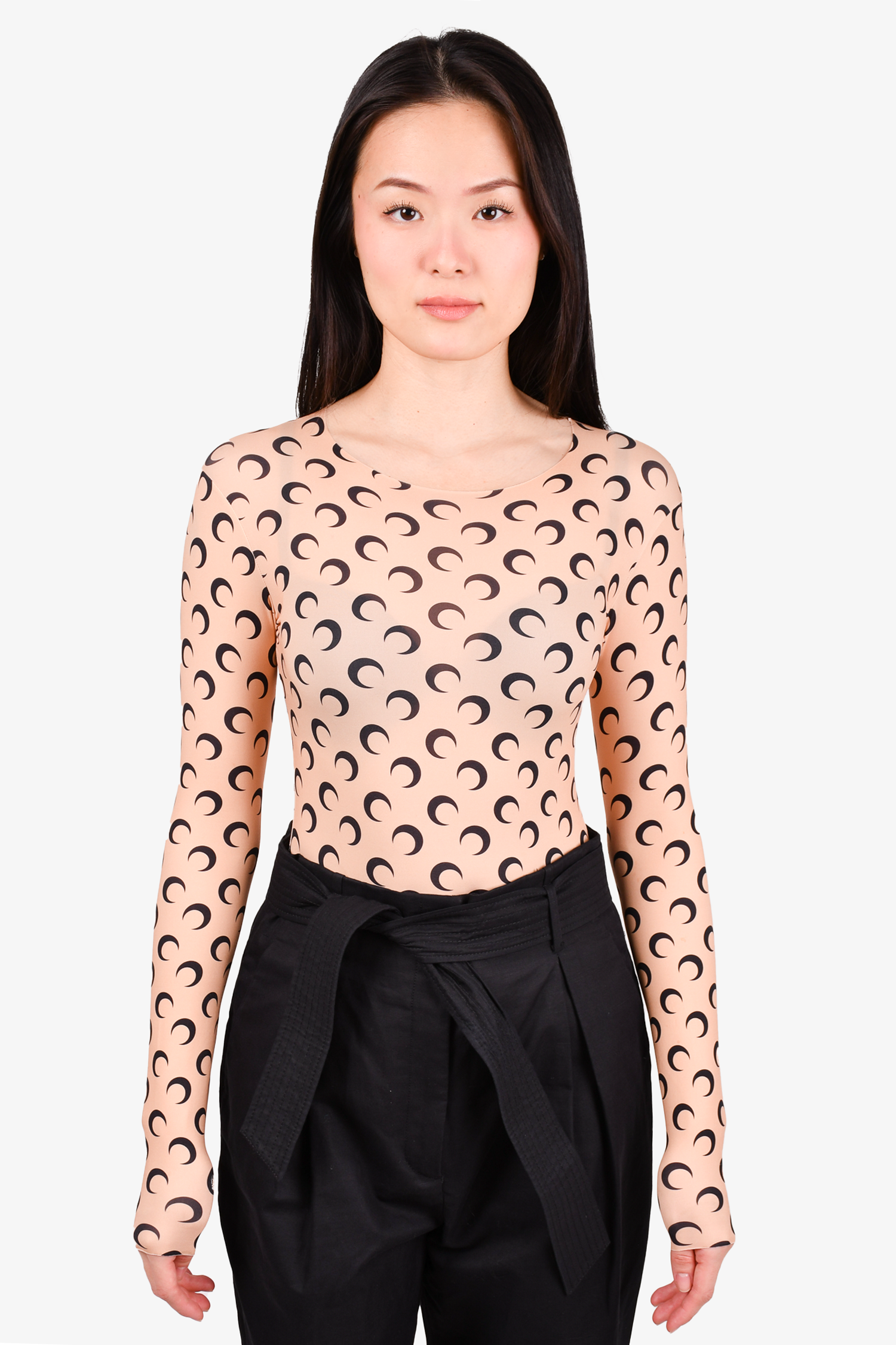 Refresh availabilityMarine Serre Tan/Black Crescent Top. Round neckline. Tonal stitching.