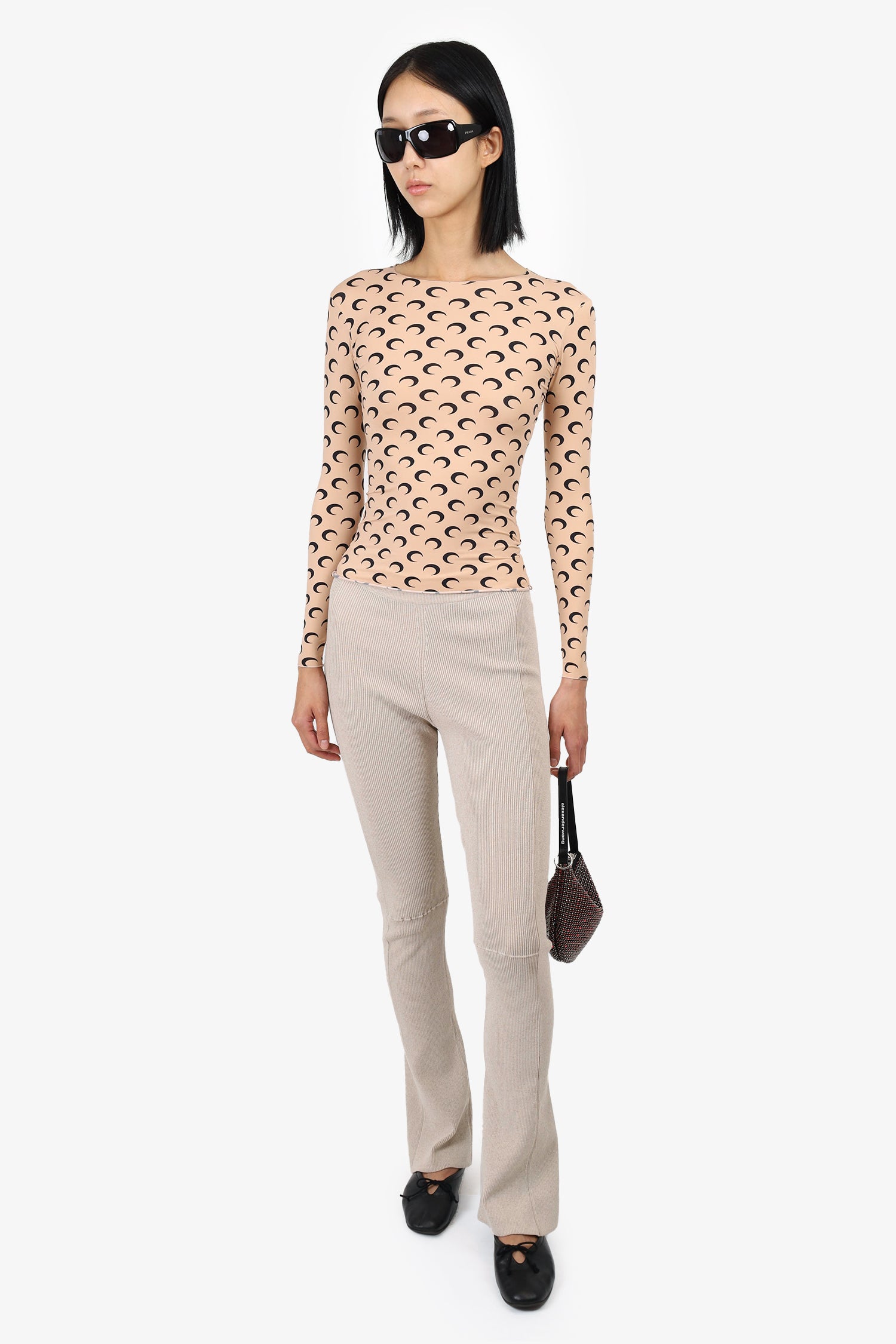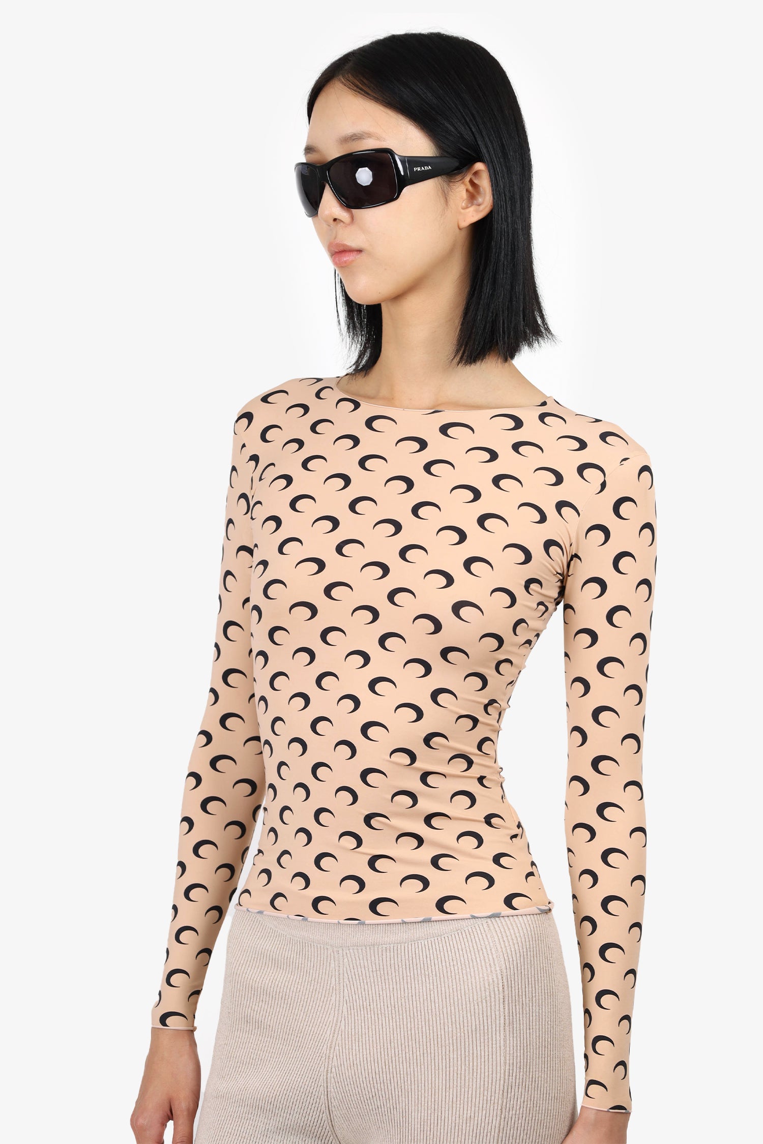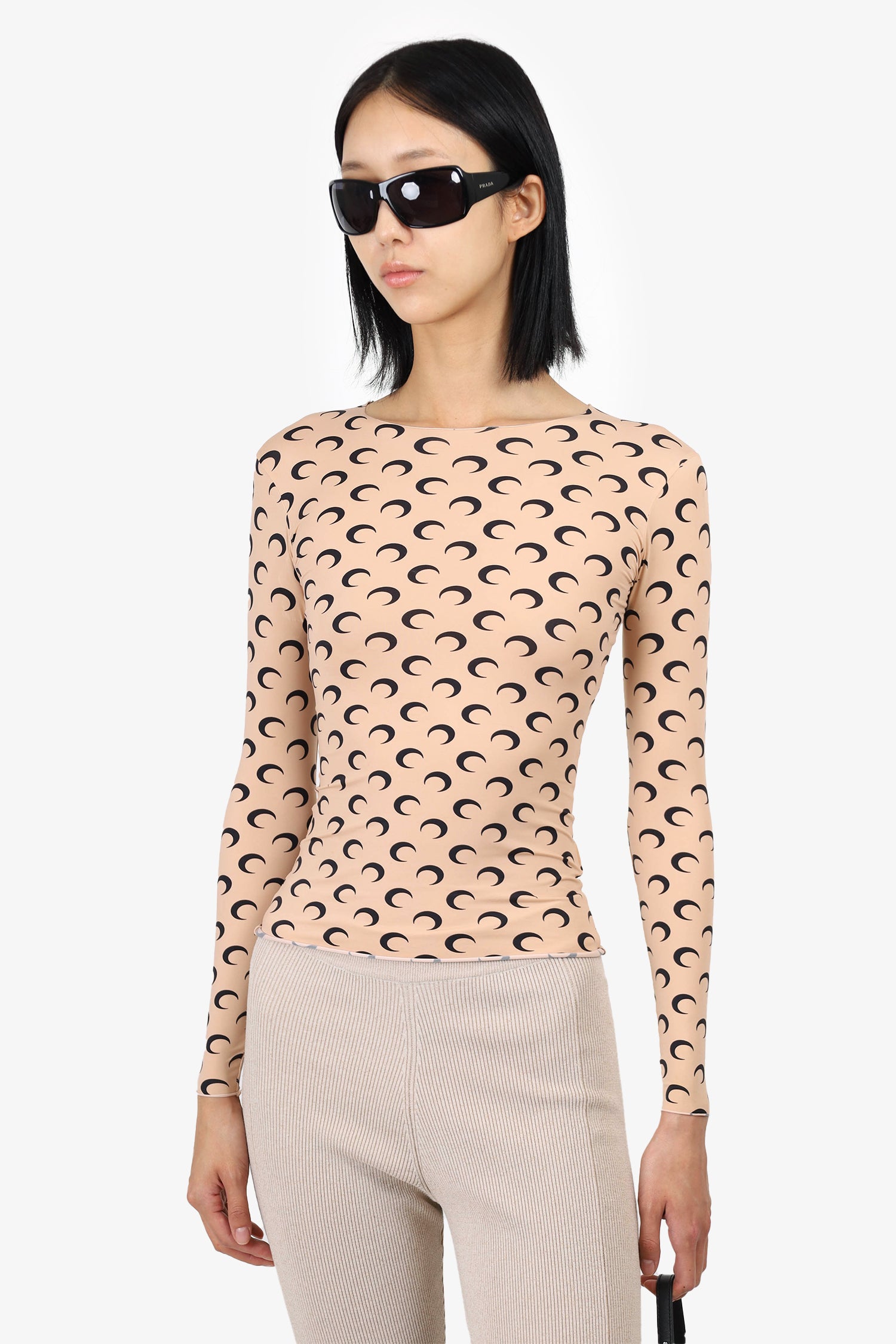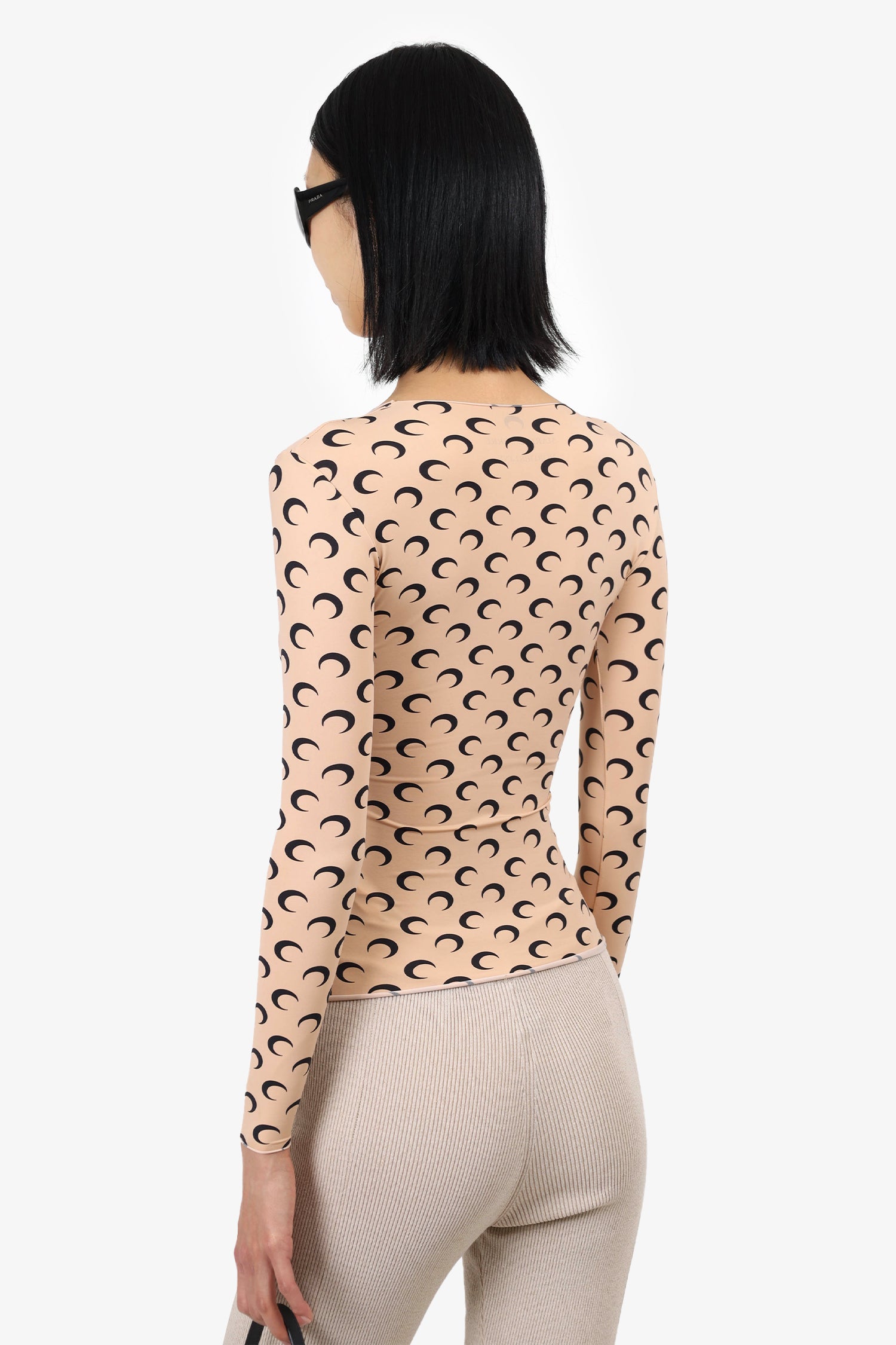 Refresh availabilityMarine Serre Tan/Black Crescent Top. Pull-on. Round neckline. Raw cut neckline, sleeve cuffs and bottom hem. Unlined. Tonal stitching.